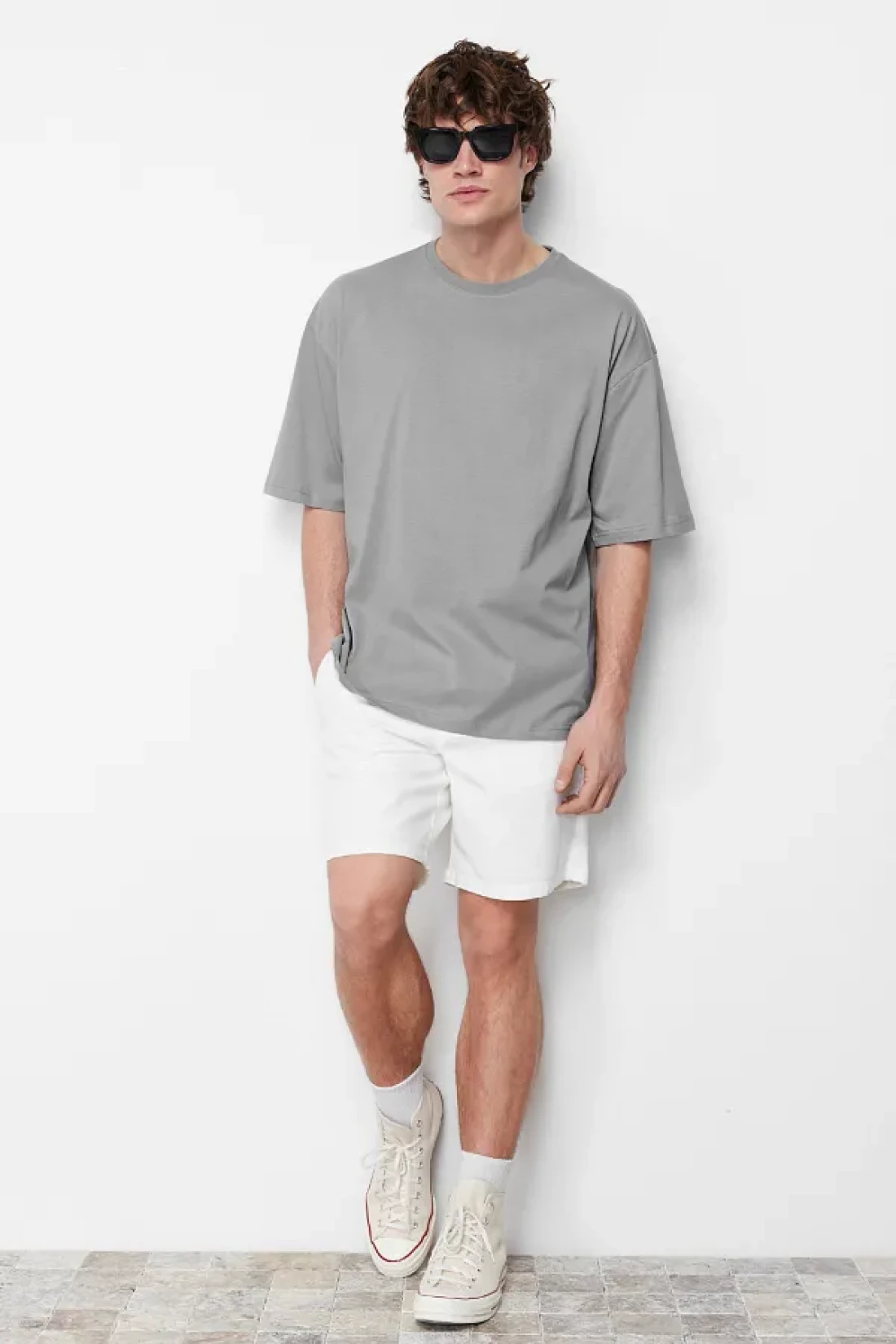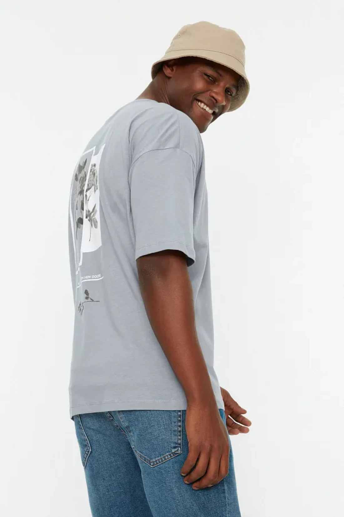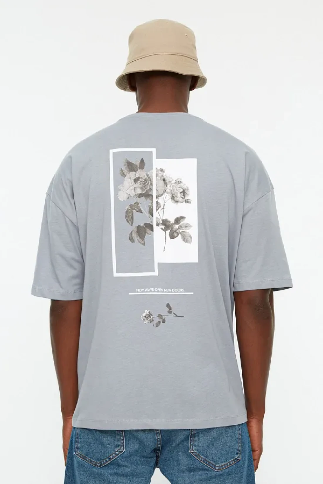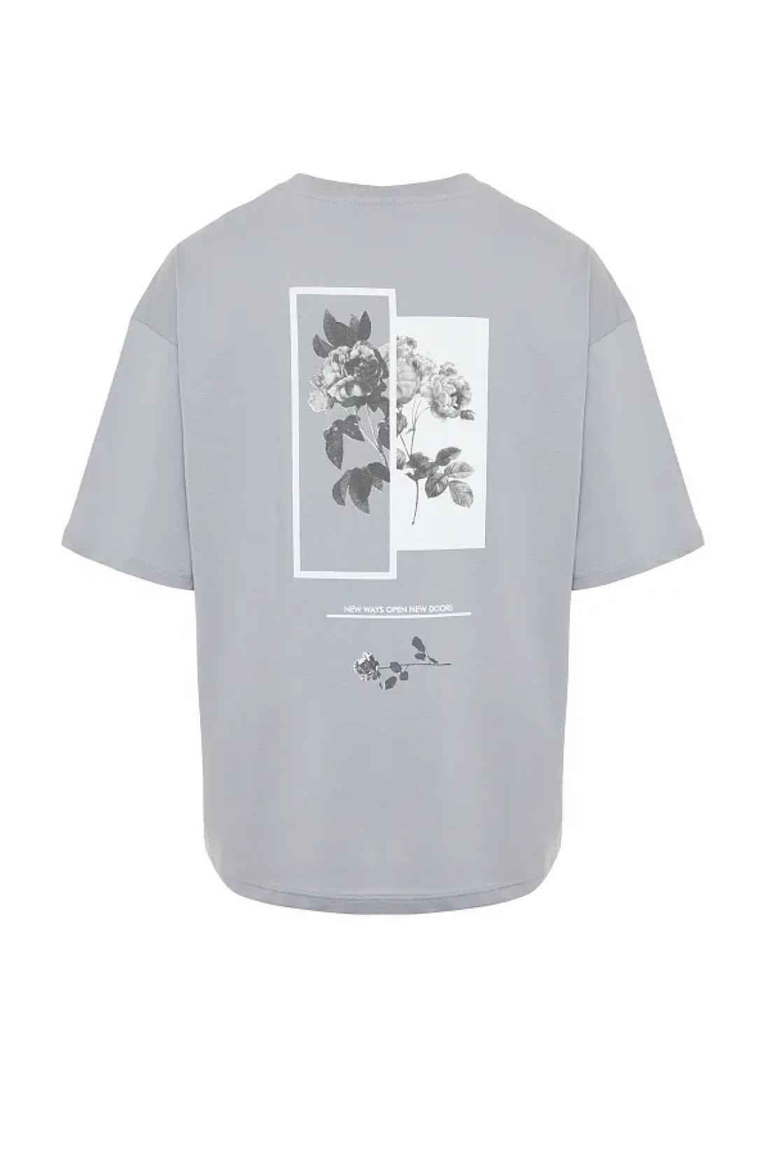 Collection Gray Floral PrinTed Wide CuT CoTTon T-Shirt - TMNSS21TS1223
