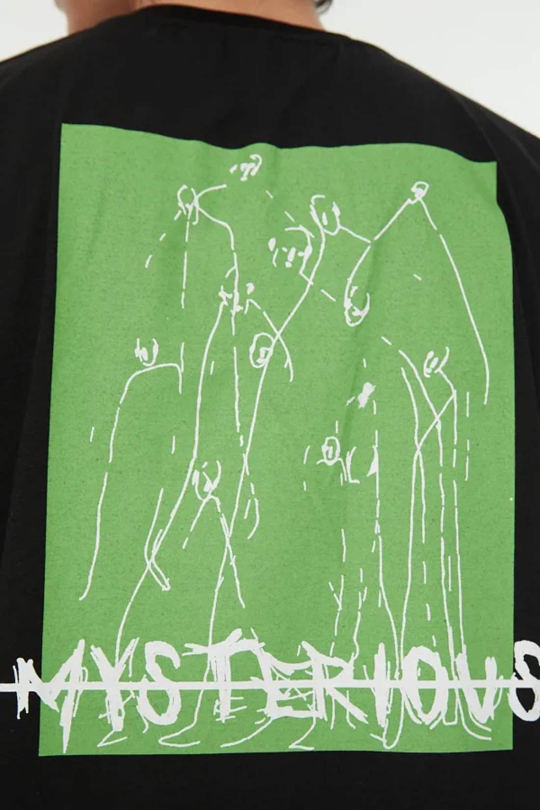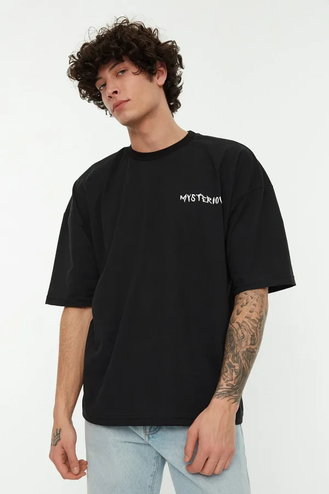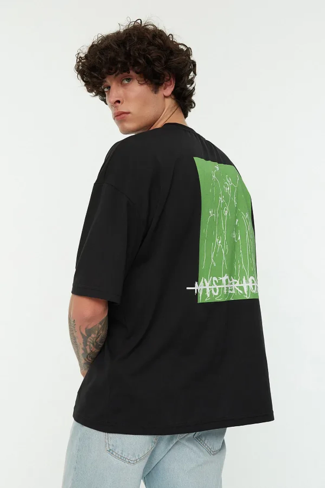 Collection Oversize Black Cotton T-Shirt - Back Printed TMNSS22TS0913