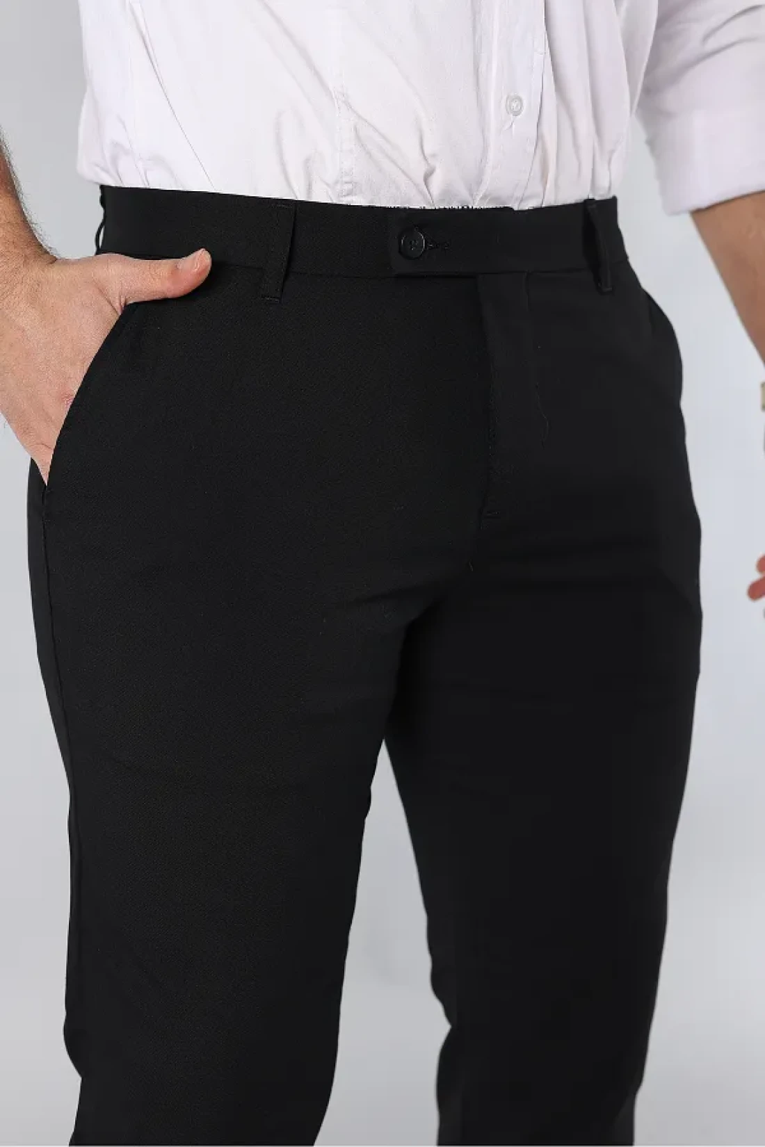 The black men's Slim Fit trousers, offering comfortable use with a normal waist cut, completes your daily elegance.