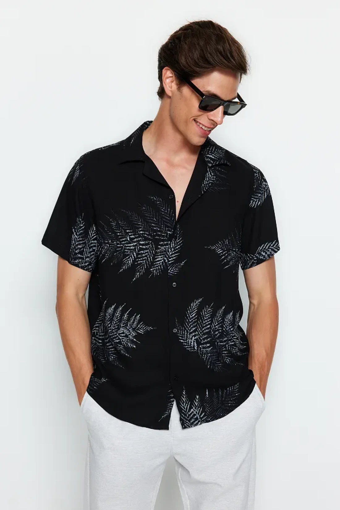 Collection Apache Collar Black Loose Shirt -RegularFit, Short Sleeve Tmnss20go0574