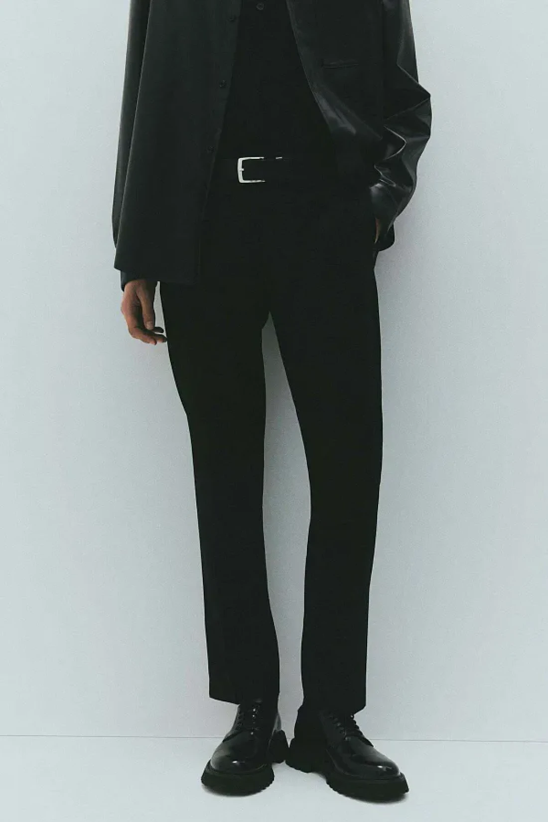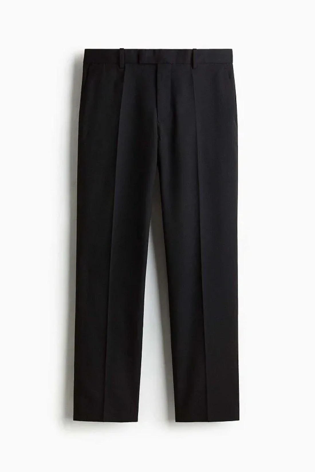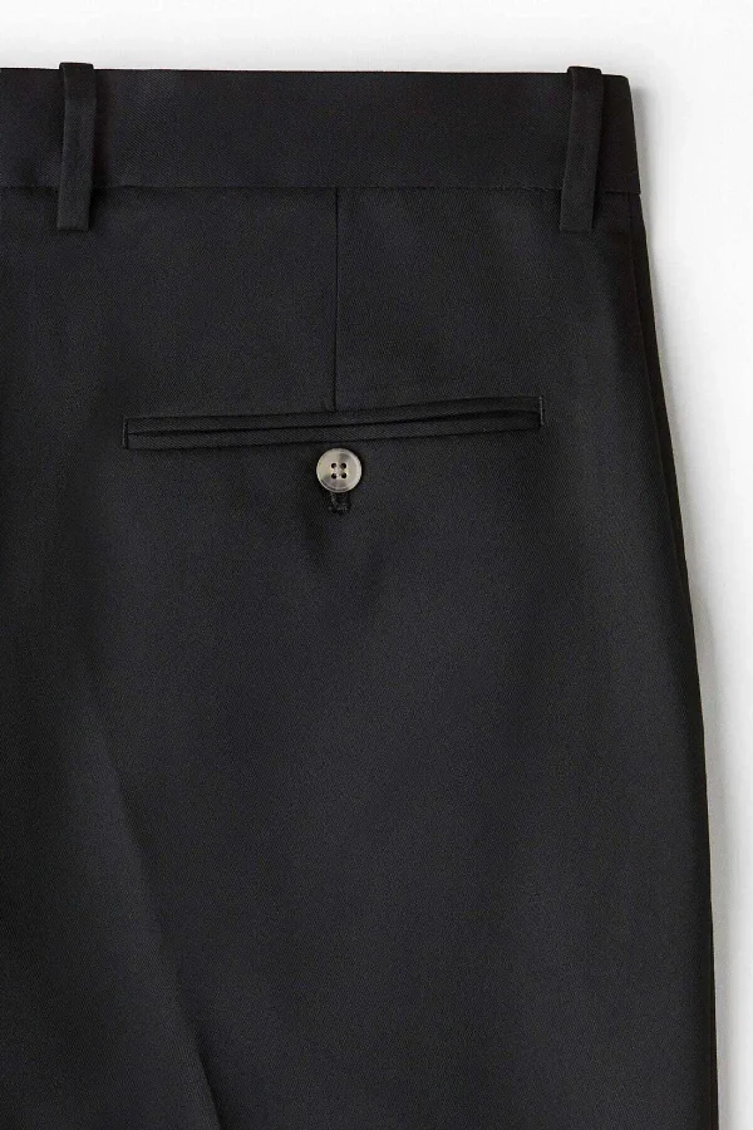 Suit trousers in a soft weave with a zip fly, an extended waistband with a concealed button and hook-and-bar fastening, side pockets, jetted back pockets with a button and legs with creases.