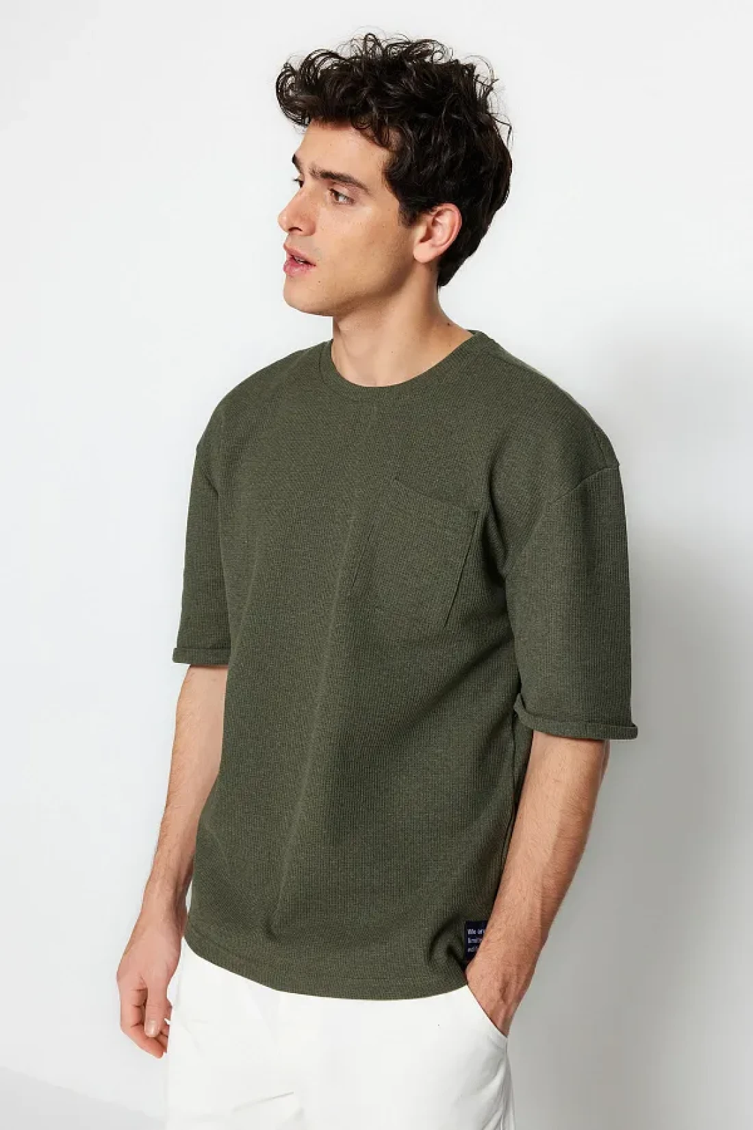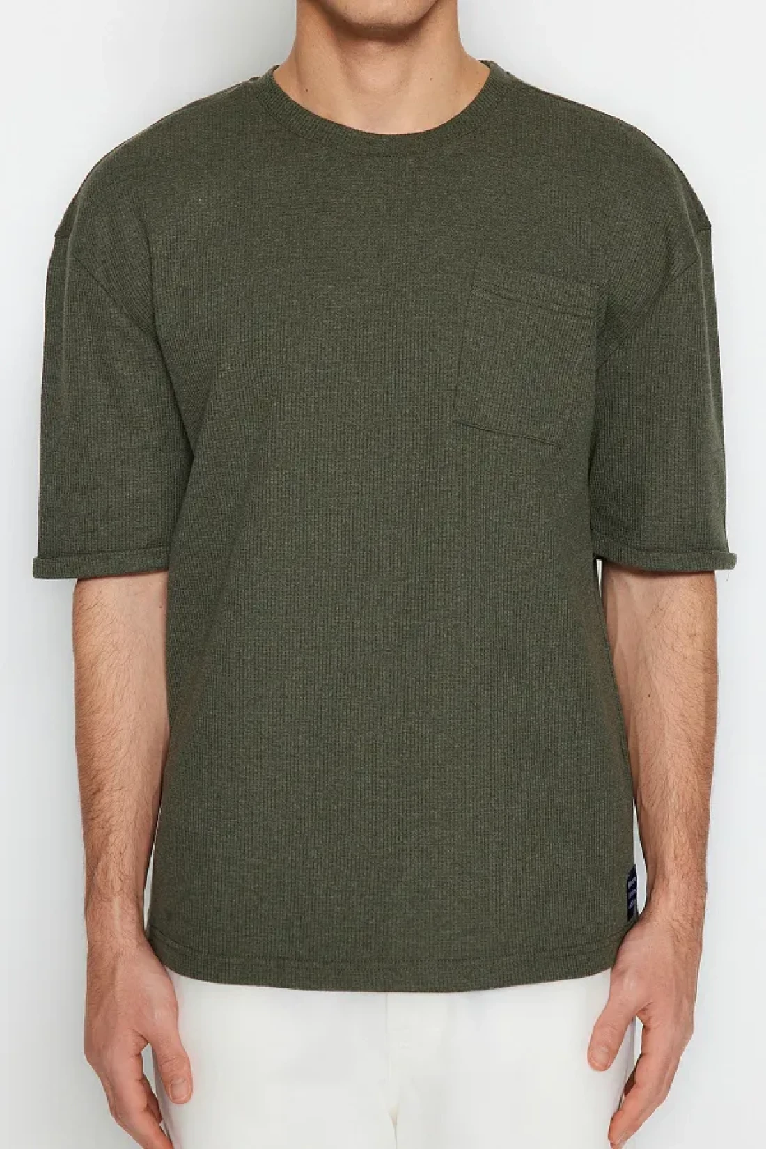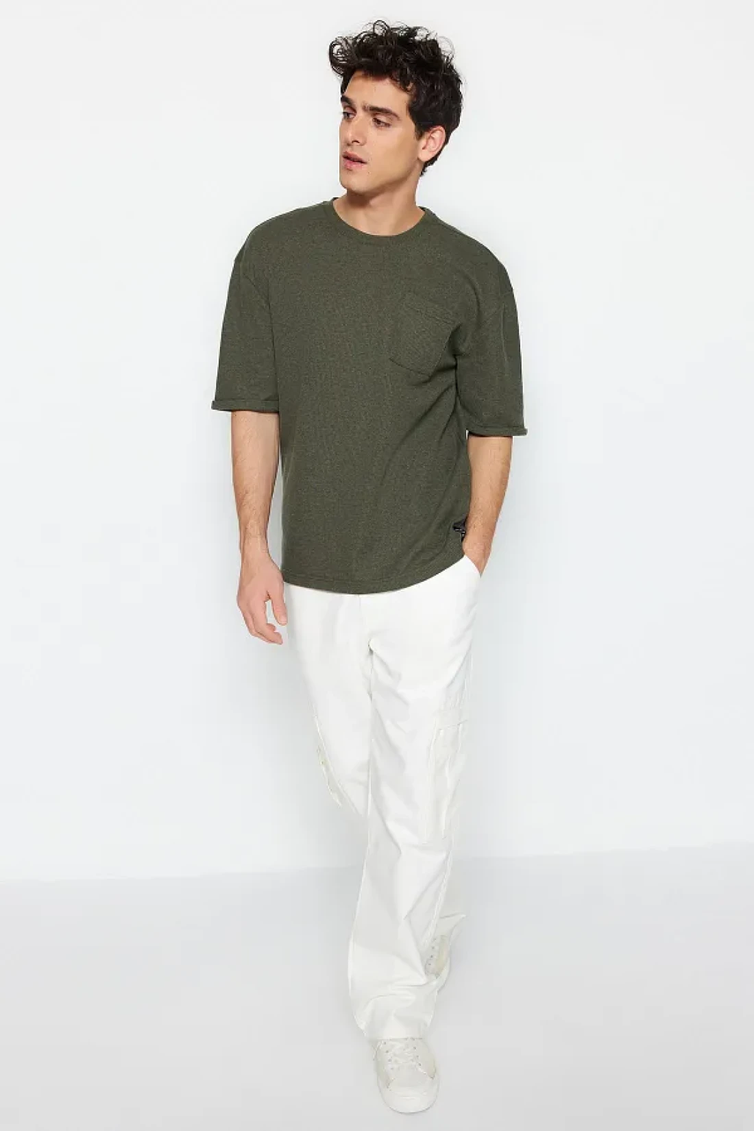 Collection Khaki Color Oversize Crew Neck Pocket T-Shirt - Tmnss23Ts00077 with Tag Detail
