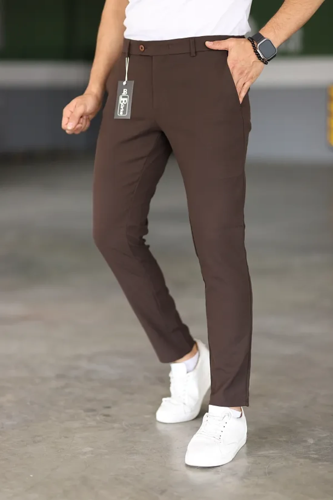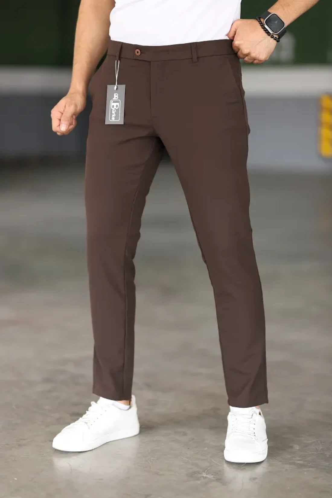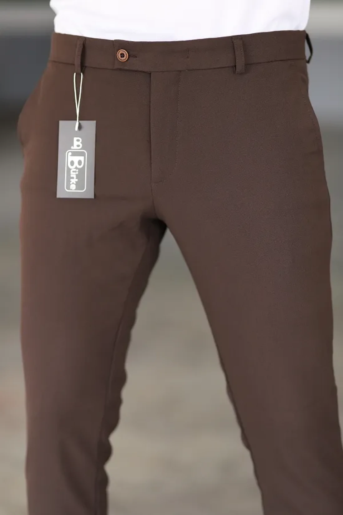 Bürke Men's Brown Color Italian Cut Quality Flexible Lycra Fabric Ankle Length Pants