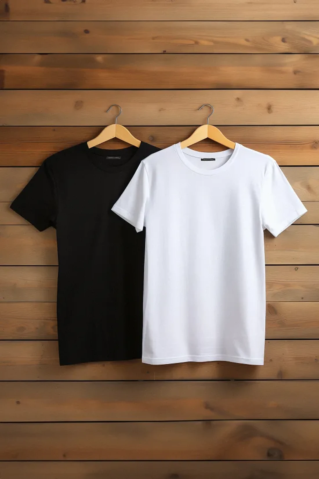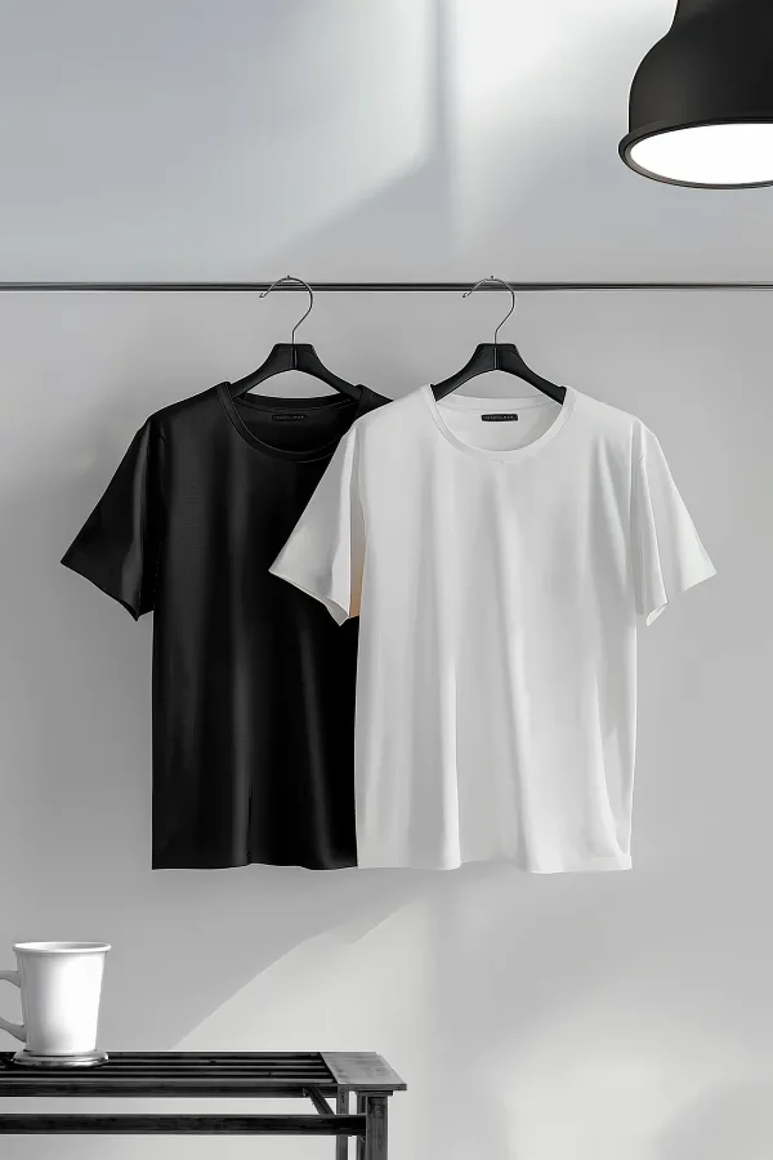 Collection Black-White Slim Fit Short Sleeve T-Shirts 100% Cotton 2-Pack - Tmnss19Bo0075