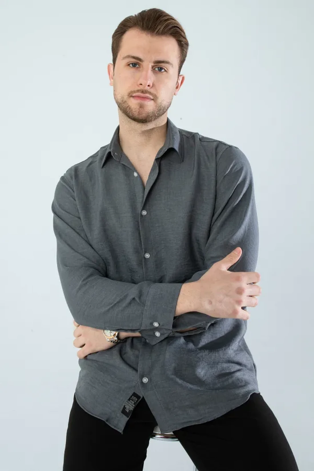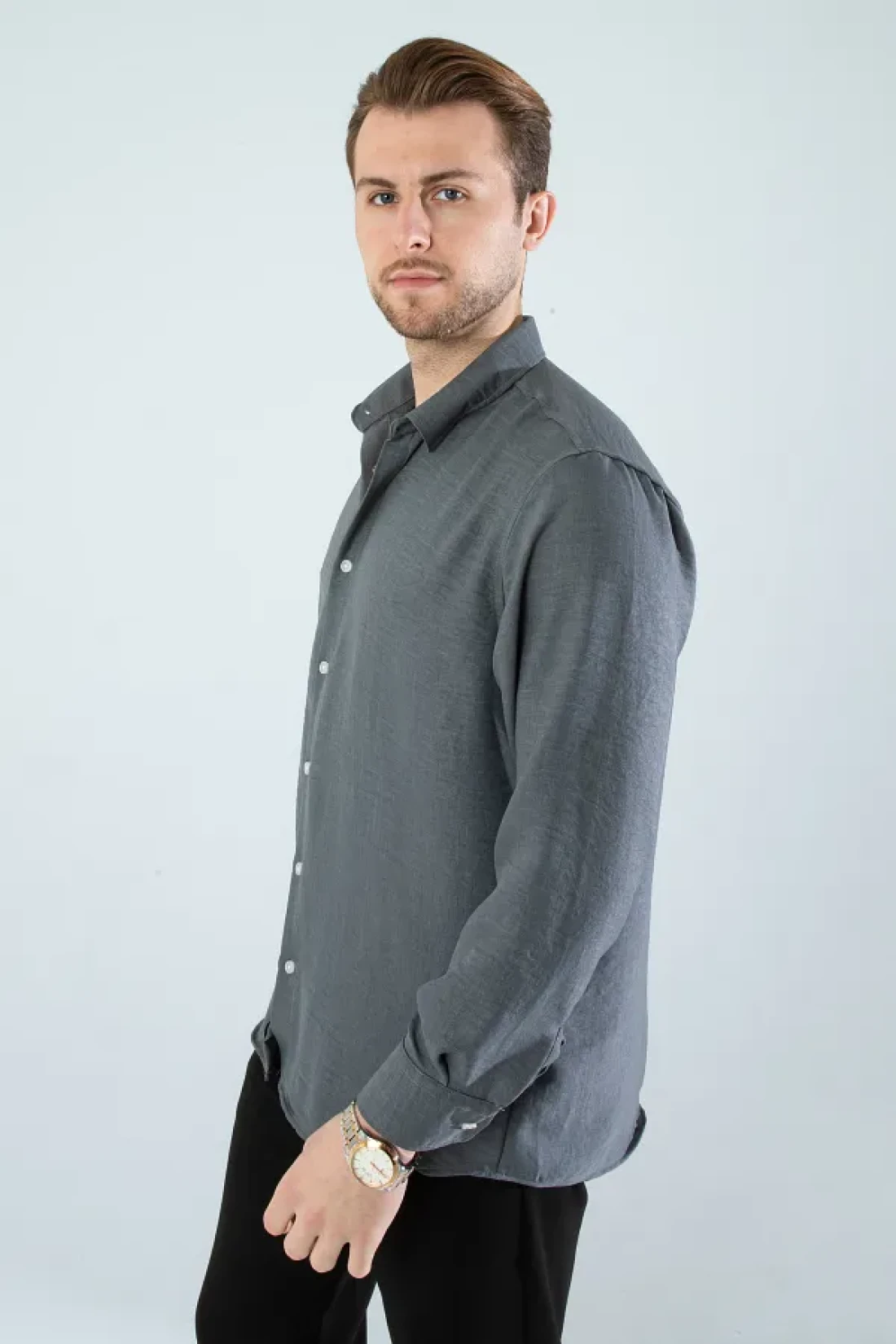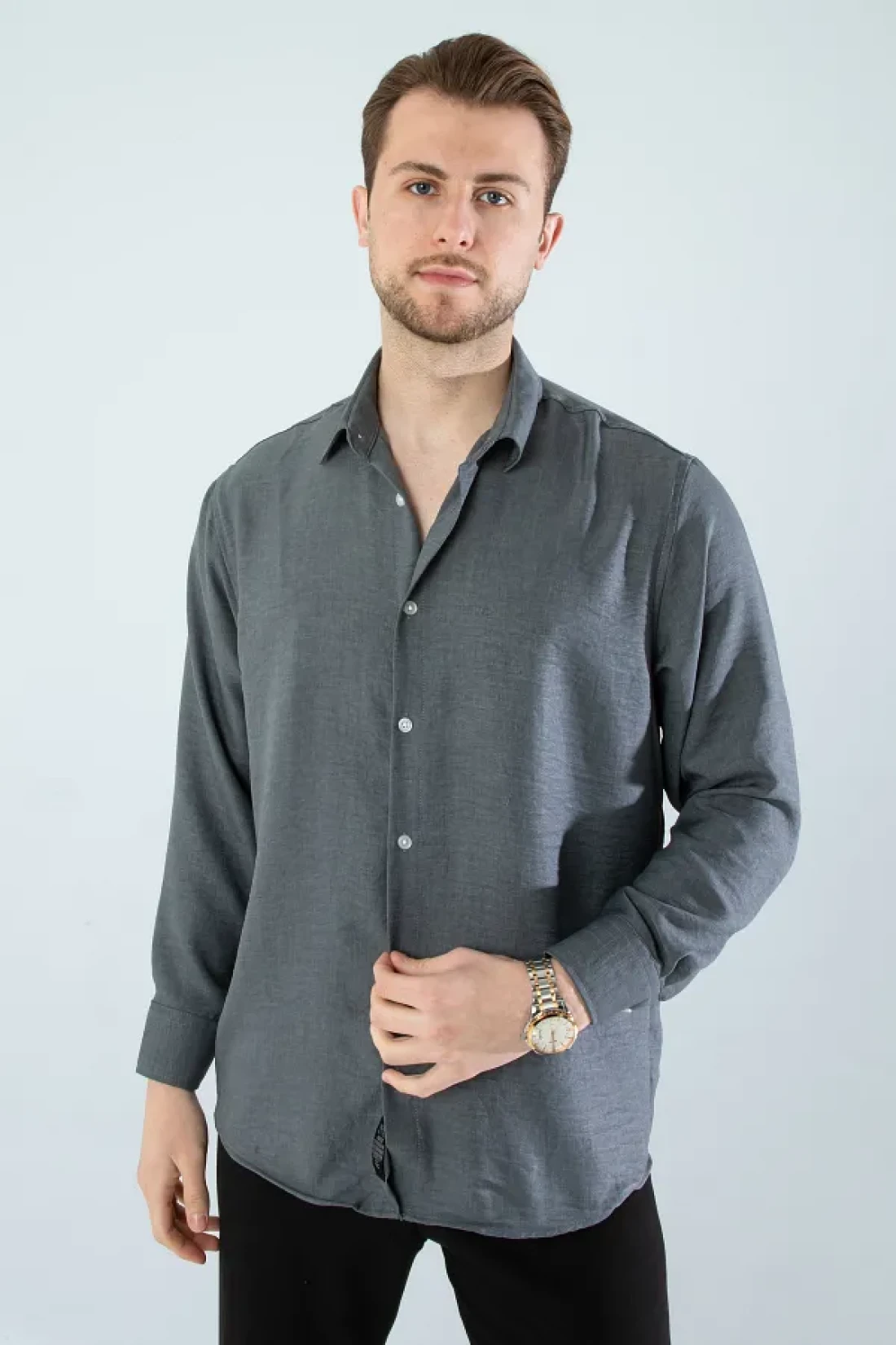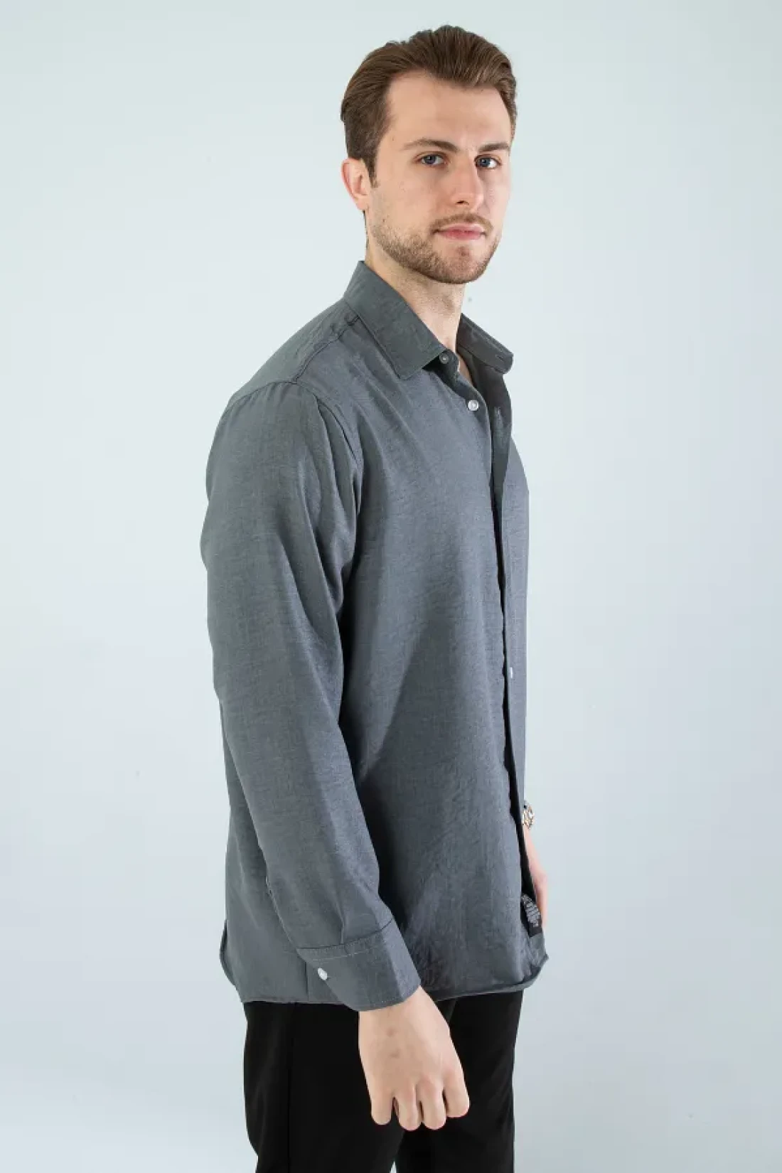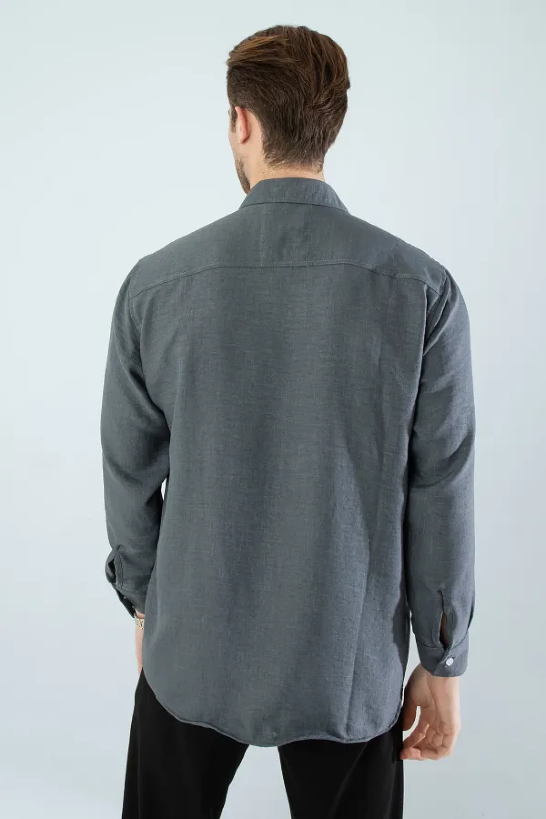 Seasonal linen textured long sleeve oversize men's wide fit shirt