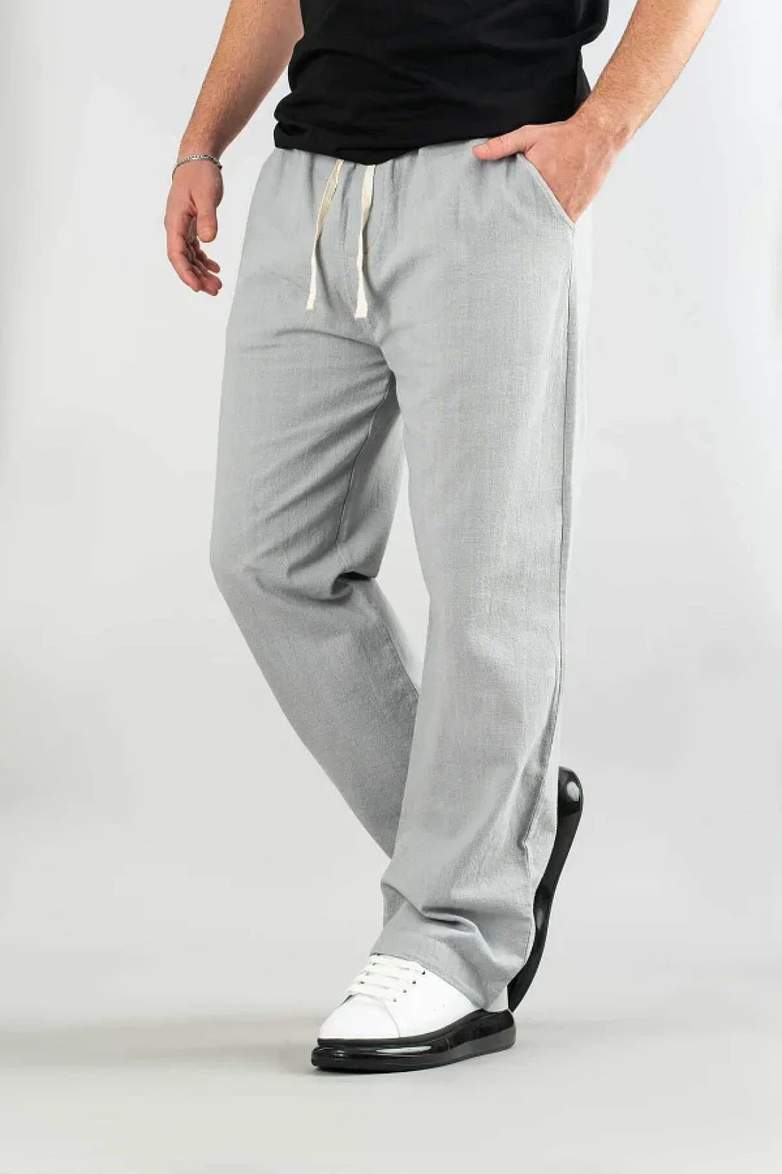 bombe Men's Gray Trousers Elastic Waist Linen Comfortable Stretchy Lycra Basic Cotton Jogger