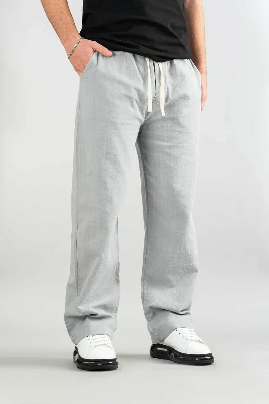 - with its unprinted plain pattern, it becomes the choice of those who favor simplicity, while its gray color offers easy combinability. It is ideal for the summer months with the lightness provided by the linen blend