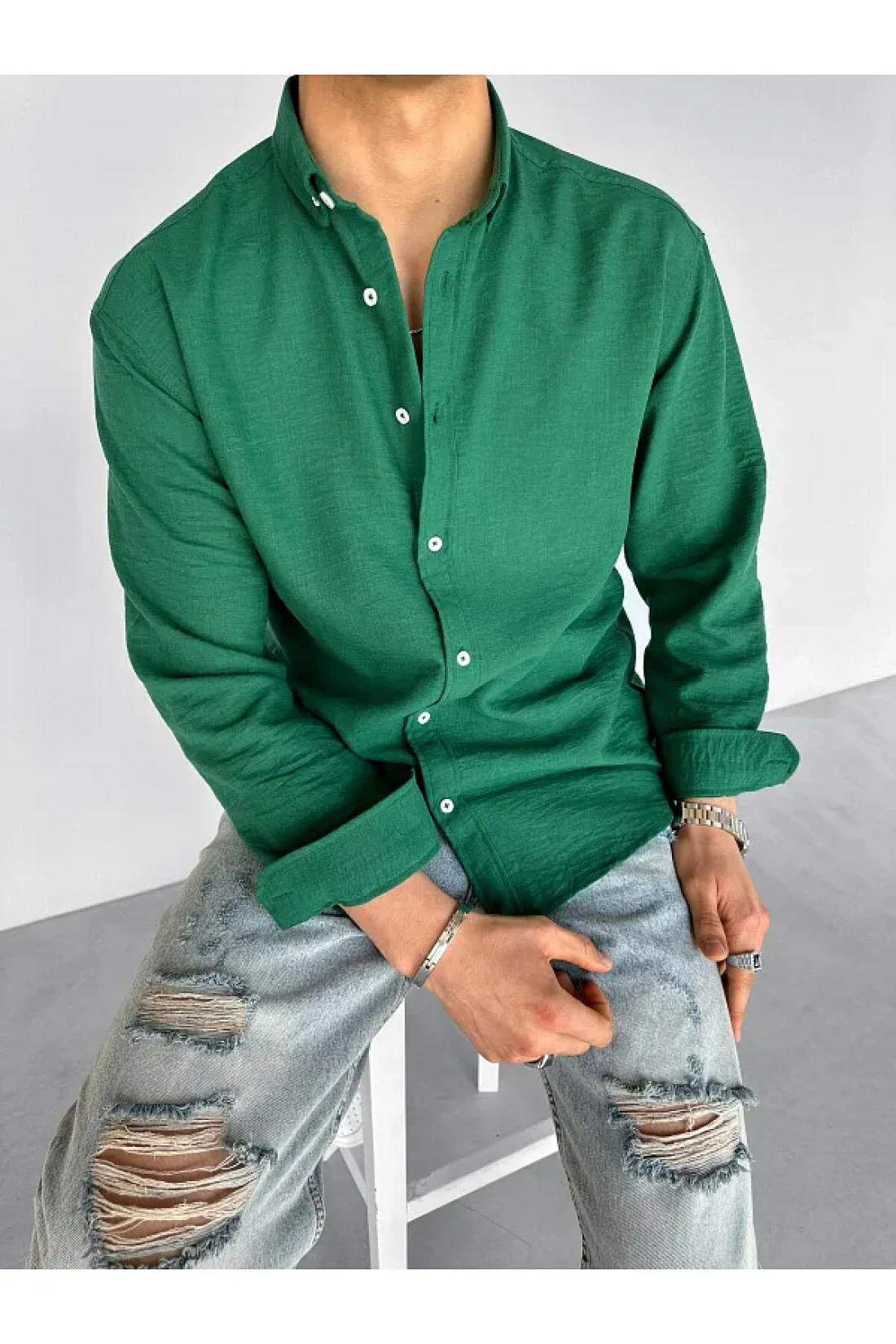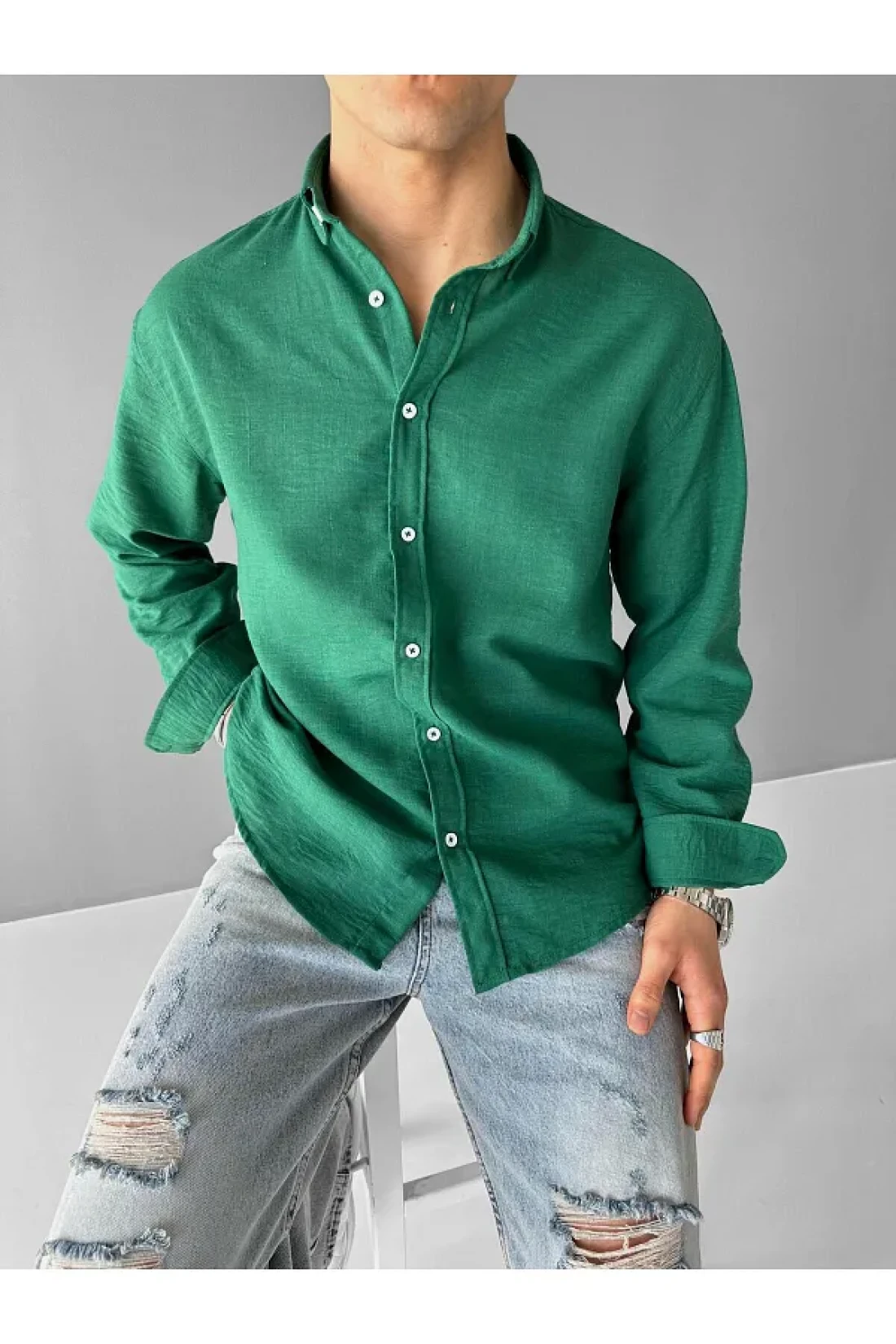 ablukaonline Green Men's Oversize Shirt - Relaxed Fit