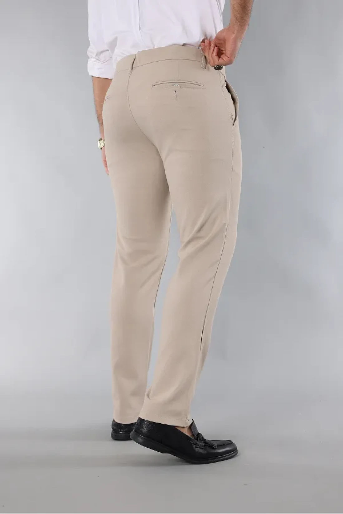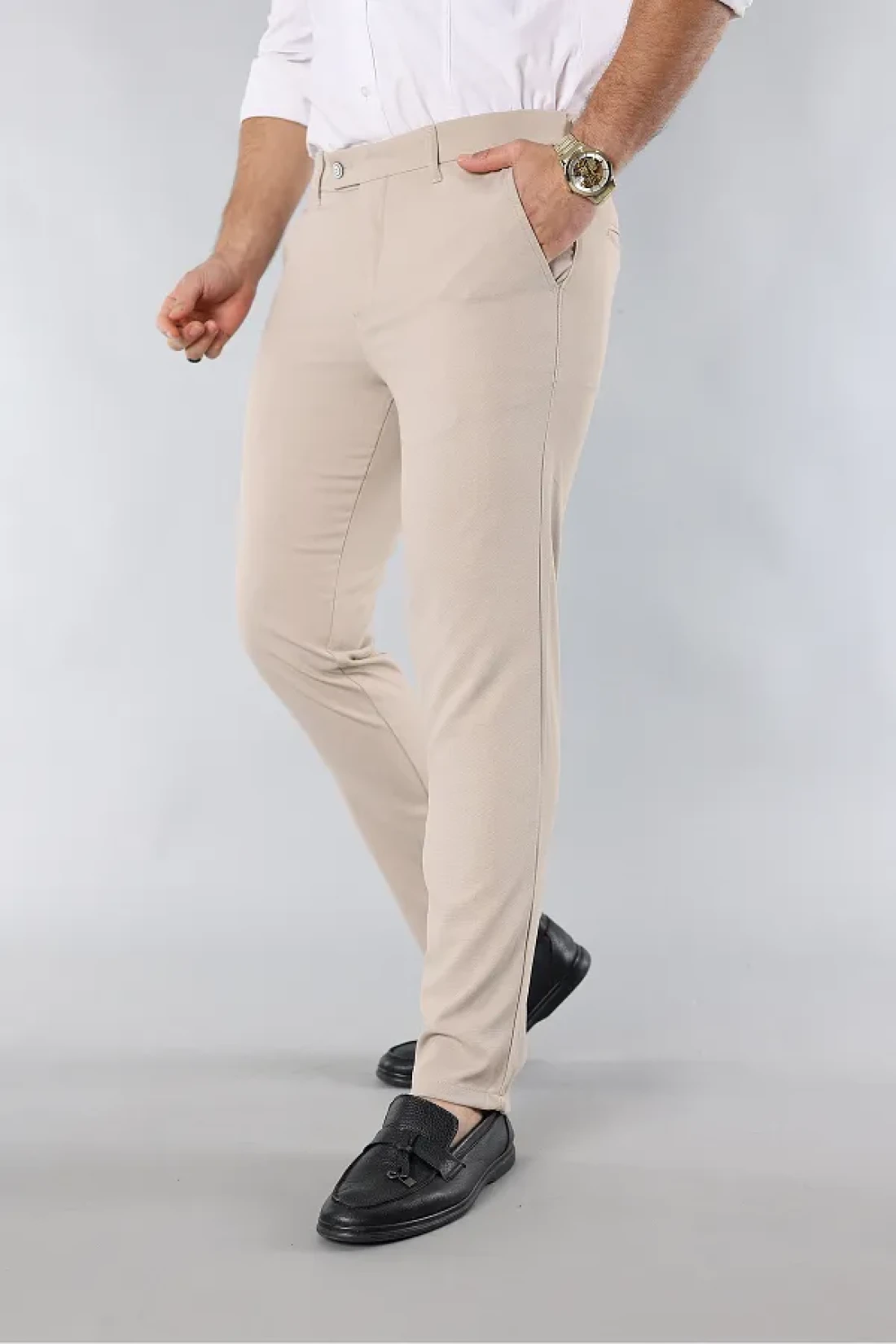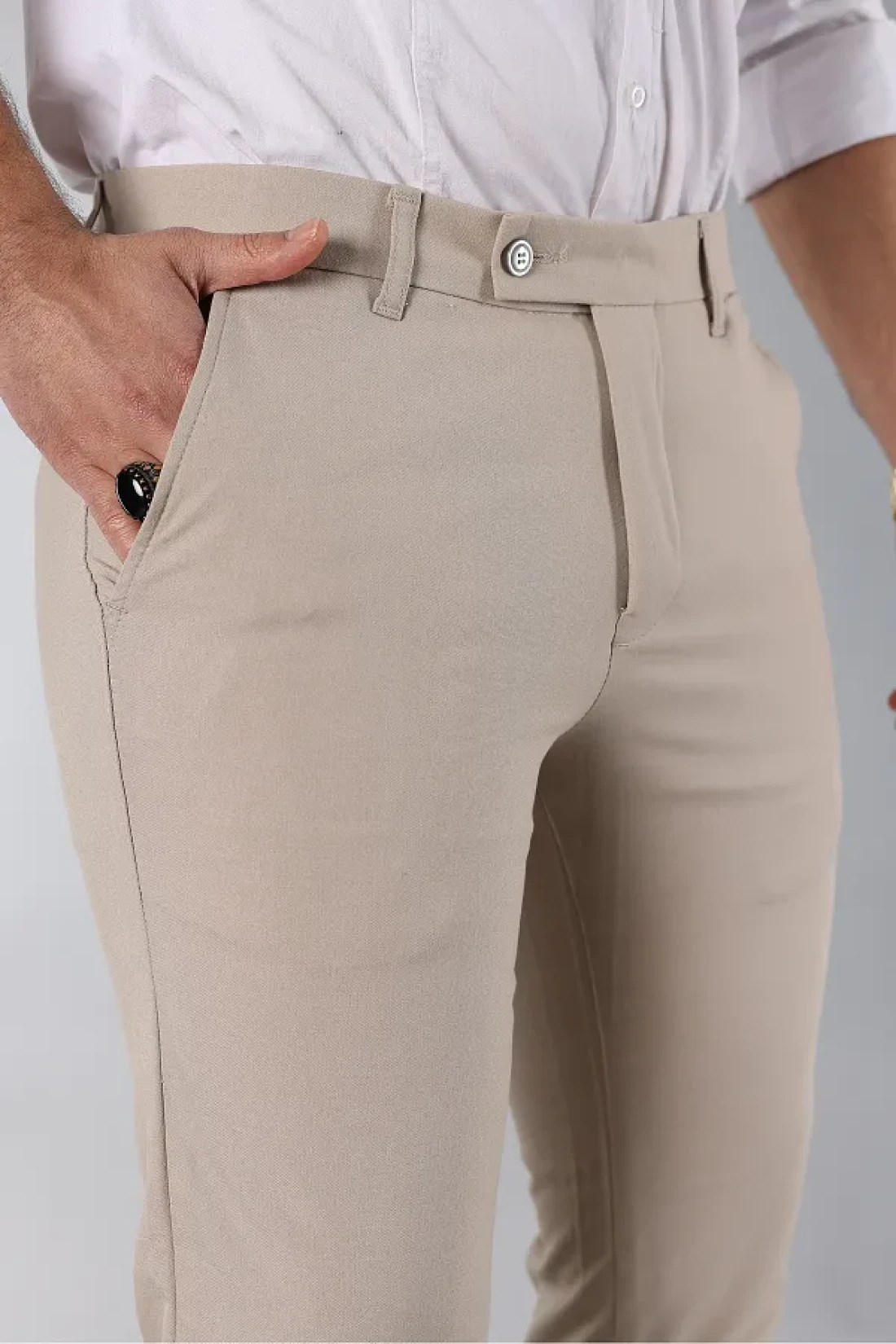 MY VİNTAGE Men's Slim Fit Quality Stretchy Lycra Ankle Length Fabric Trousers Cream