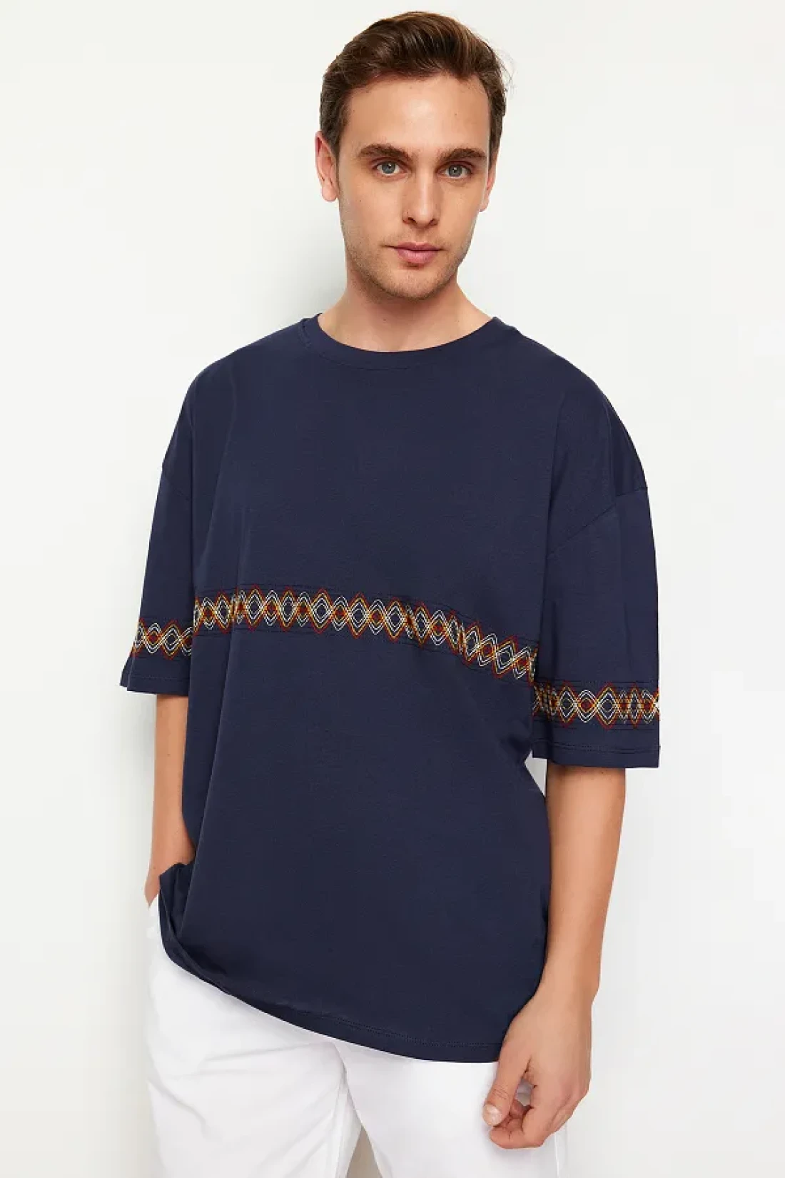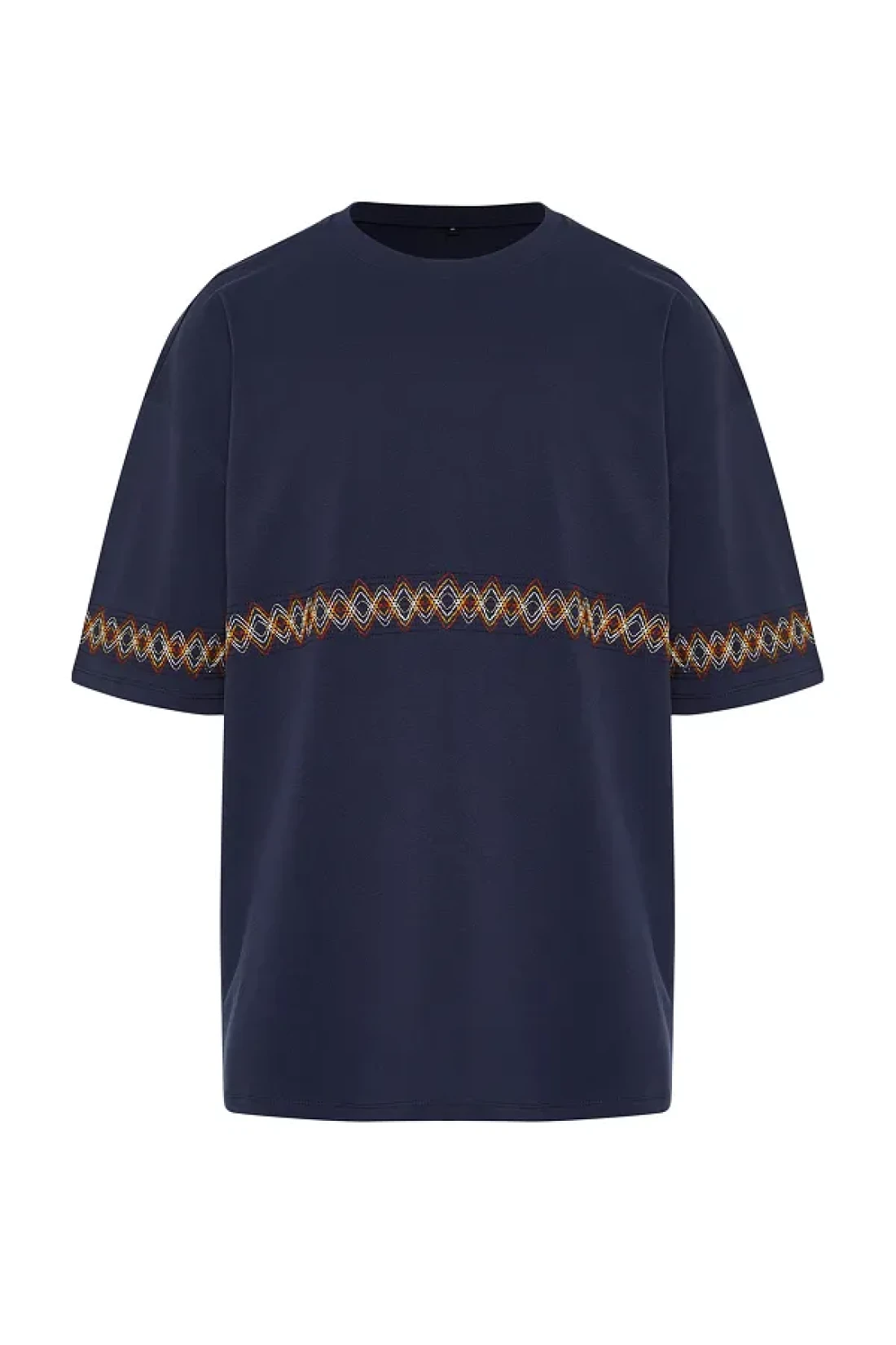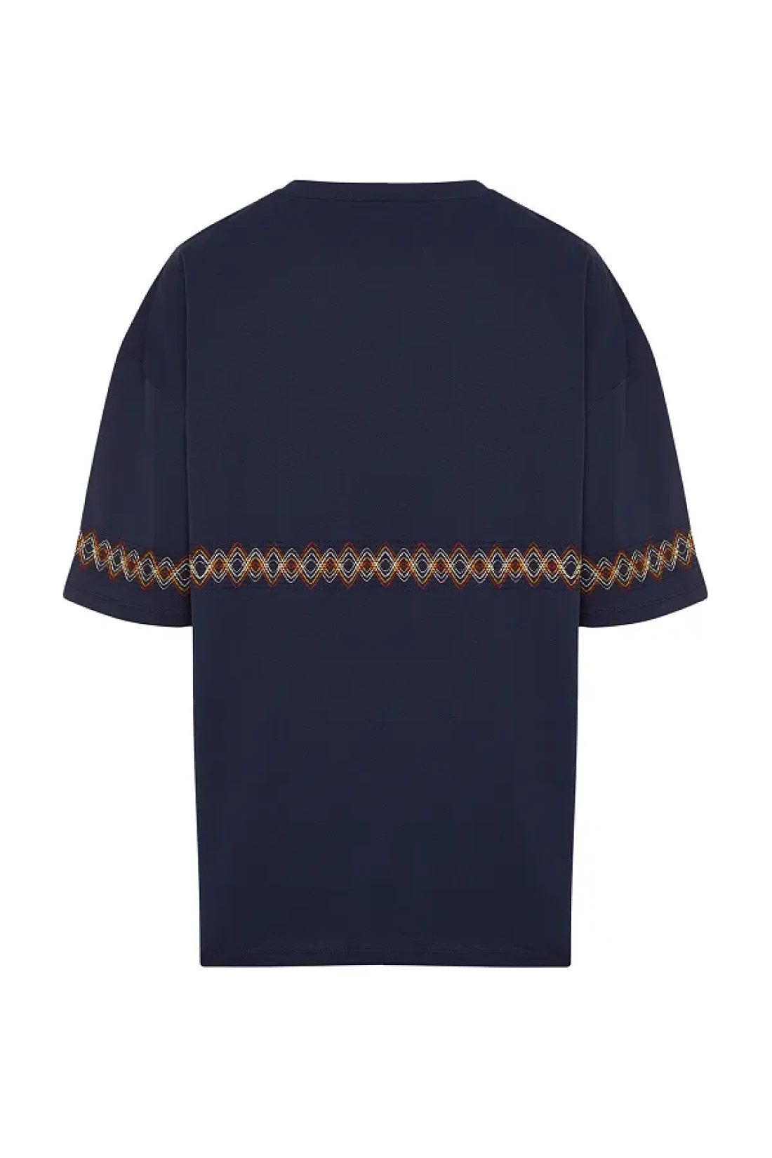Collection Navy Blue Oversize Embroidered Cotton T-Shirt - TMNSS21TS1889