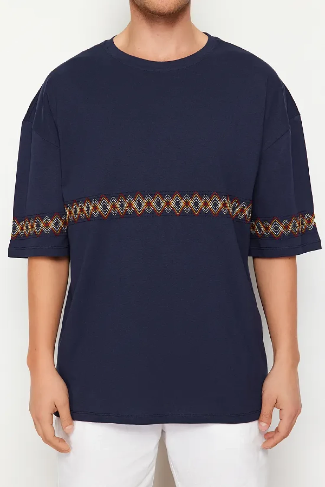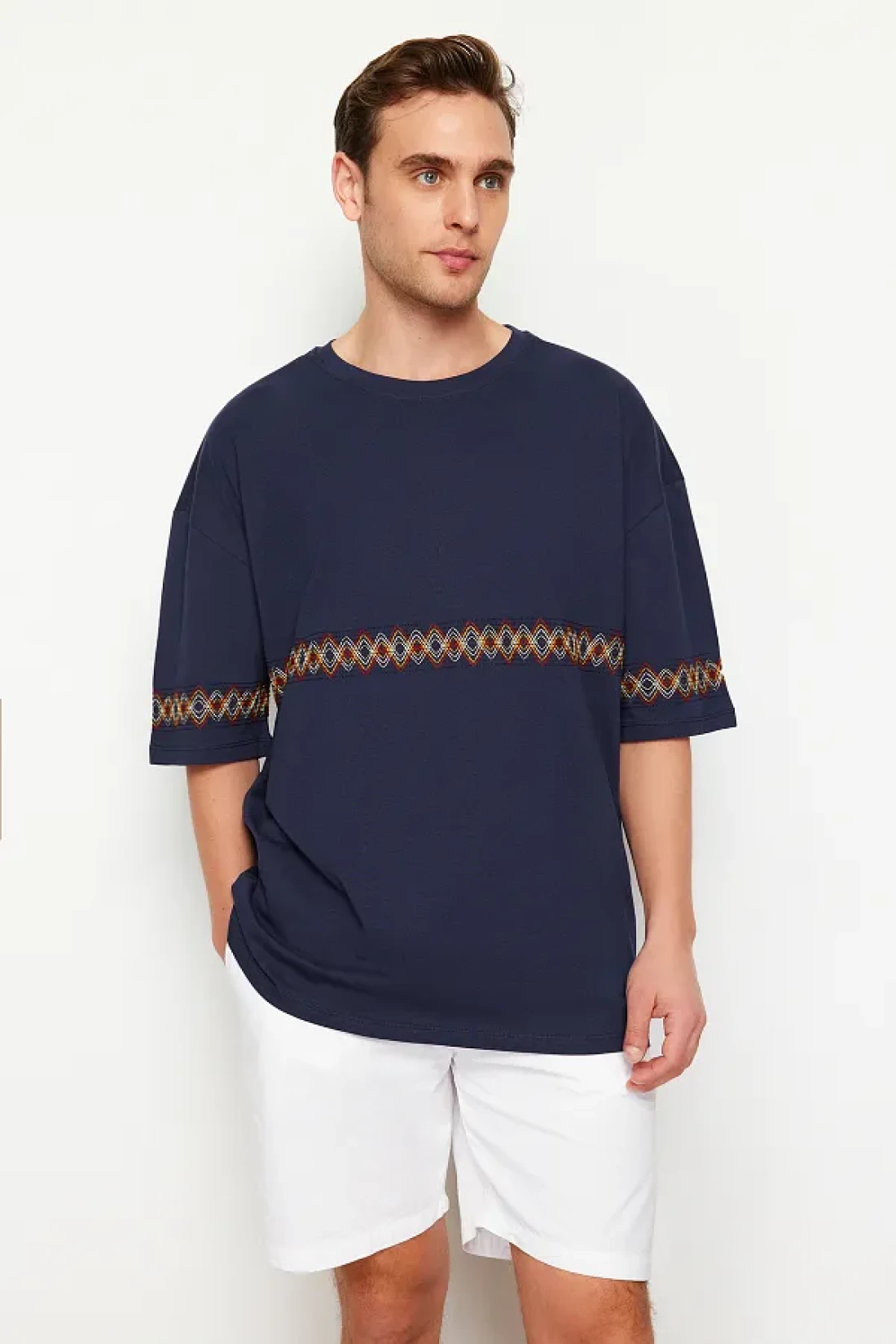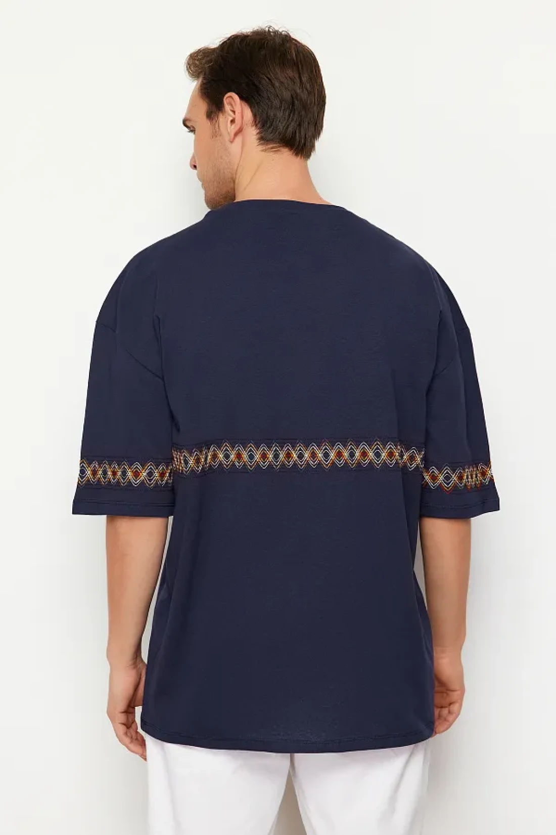 Collection Navy Blue Oversize Embroidered Cotton T-Shirt - TMNSS21TS1889
