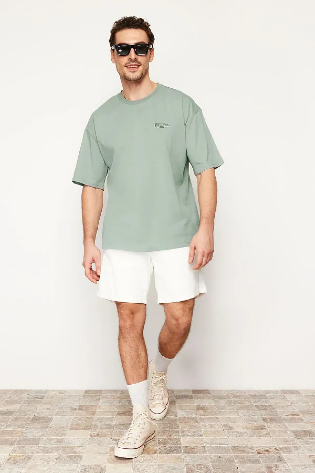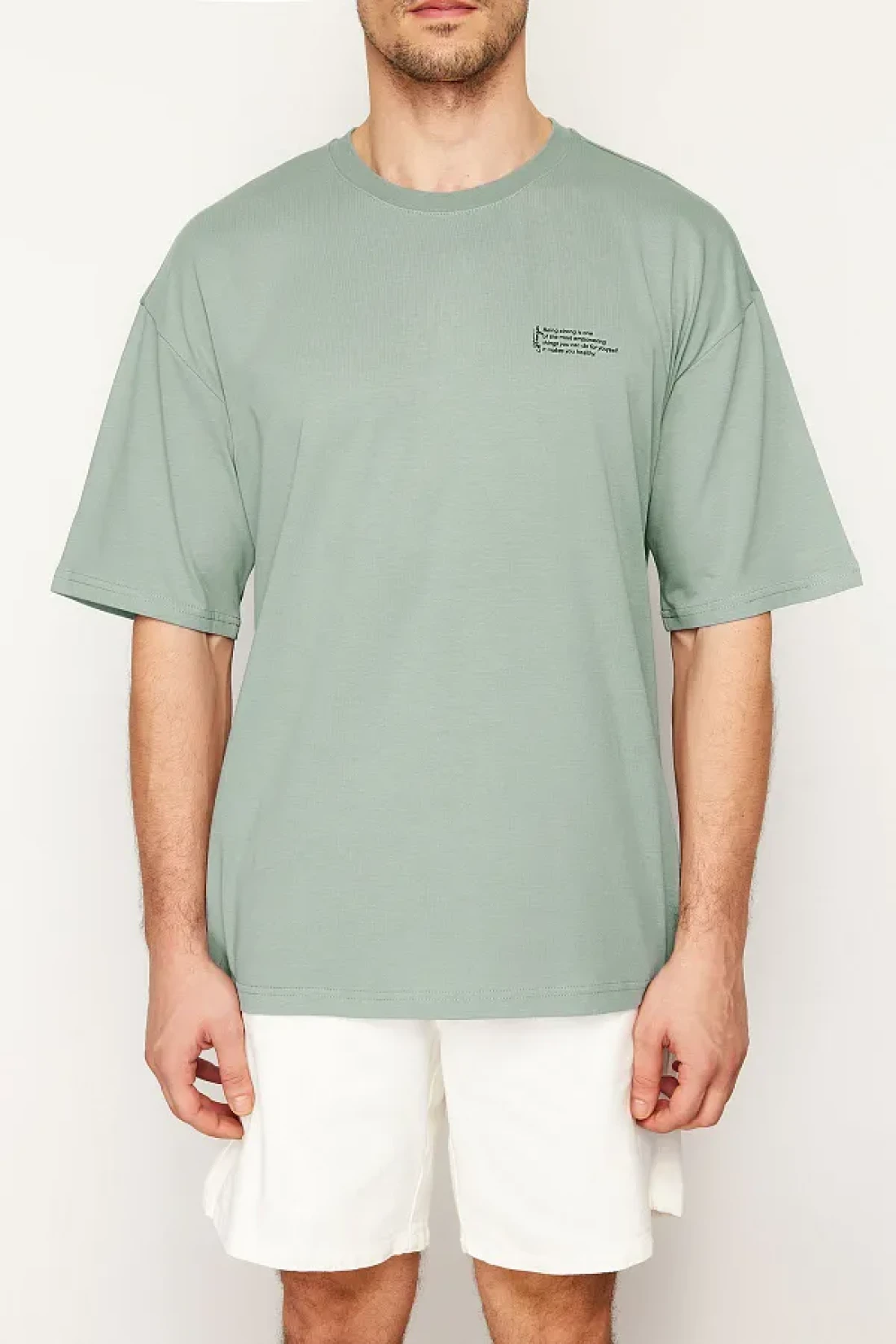 Collection Dark Mint Oversize 100% Cotton Crew Neck Minimal Text Printed Tok Fabric T-Shirt Tmnss23Ts00084