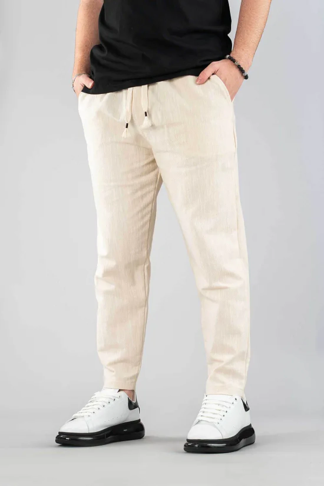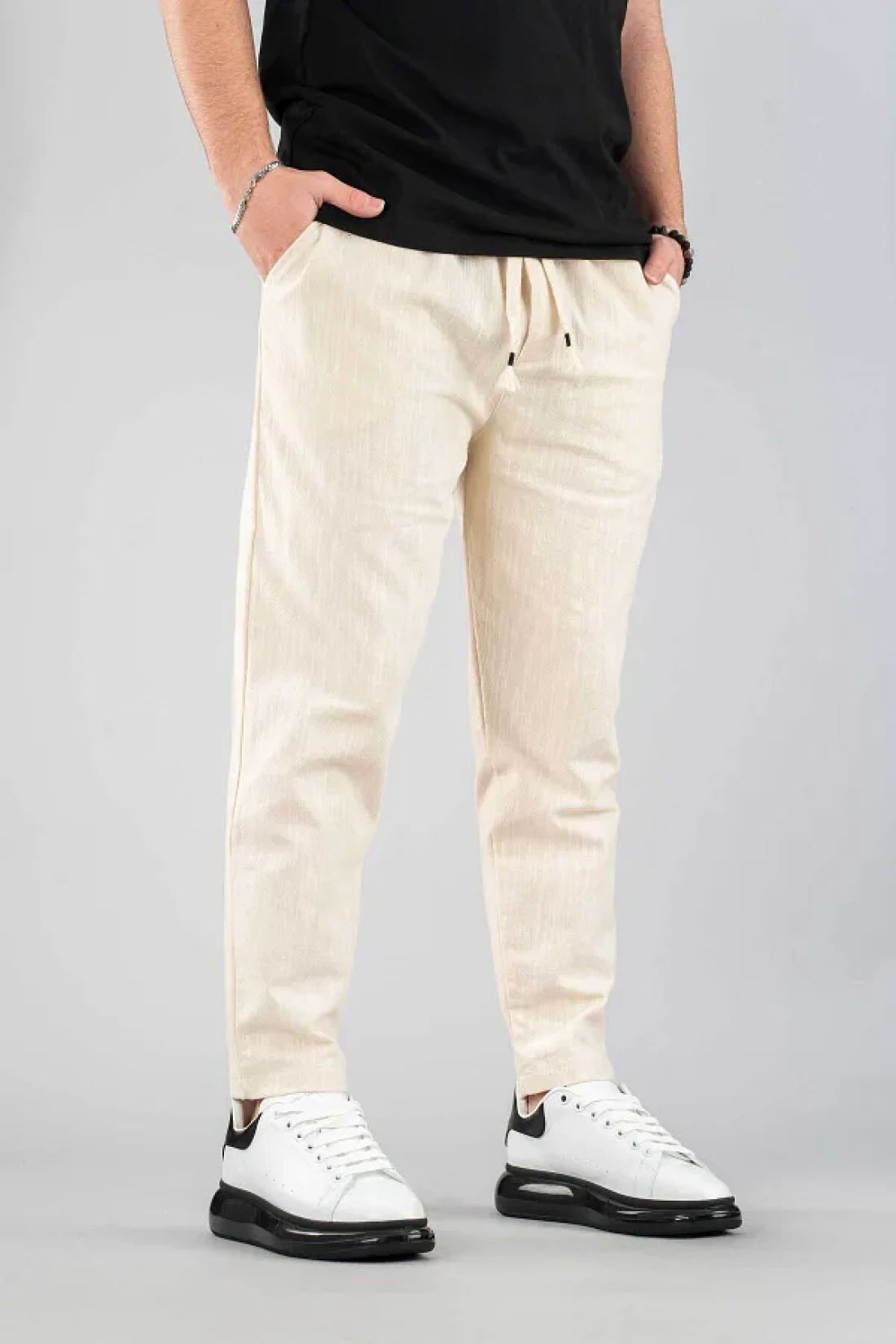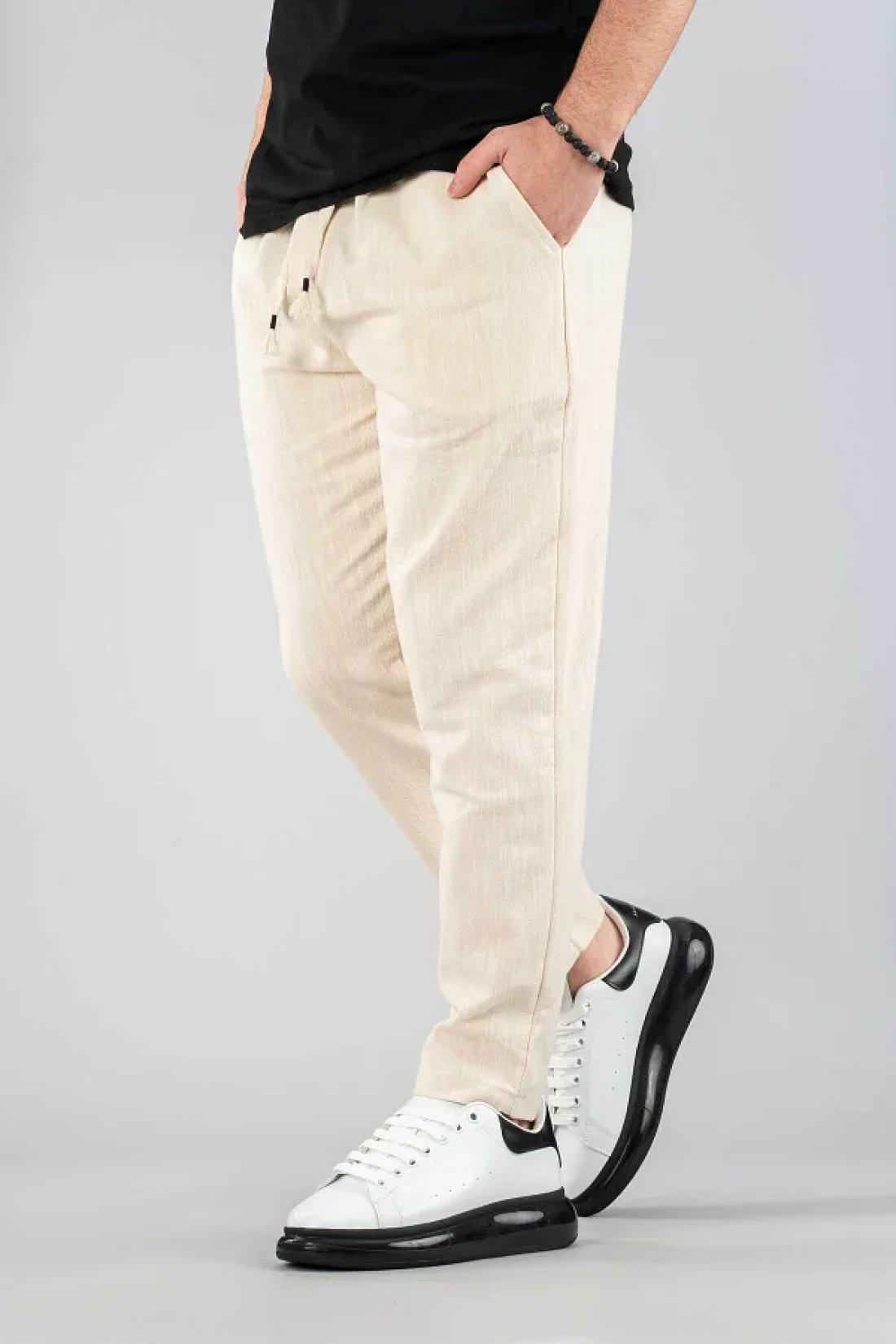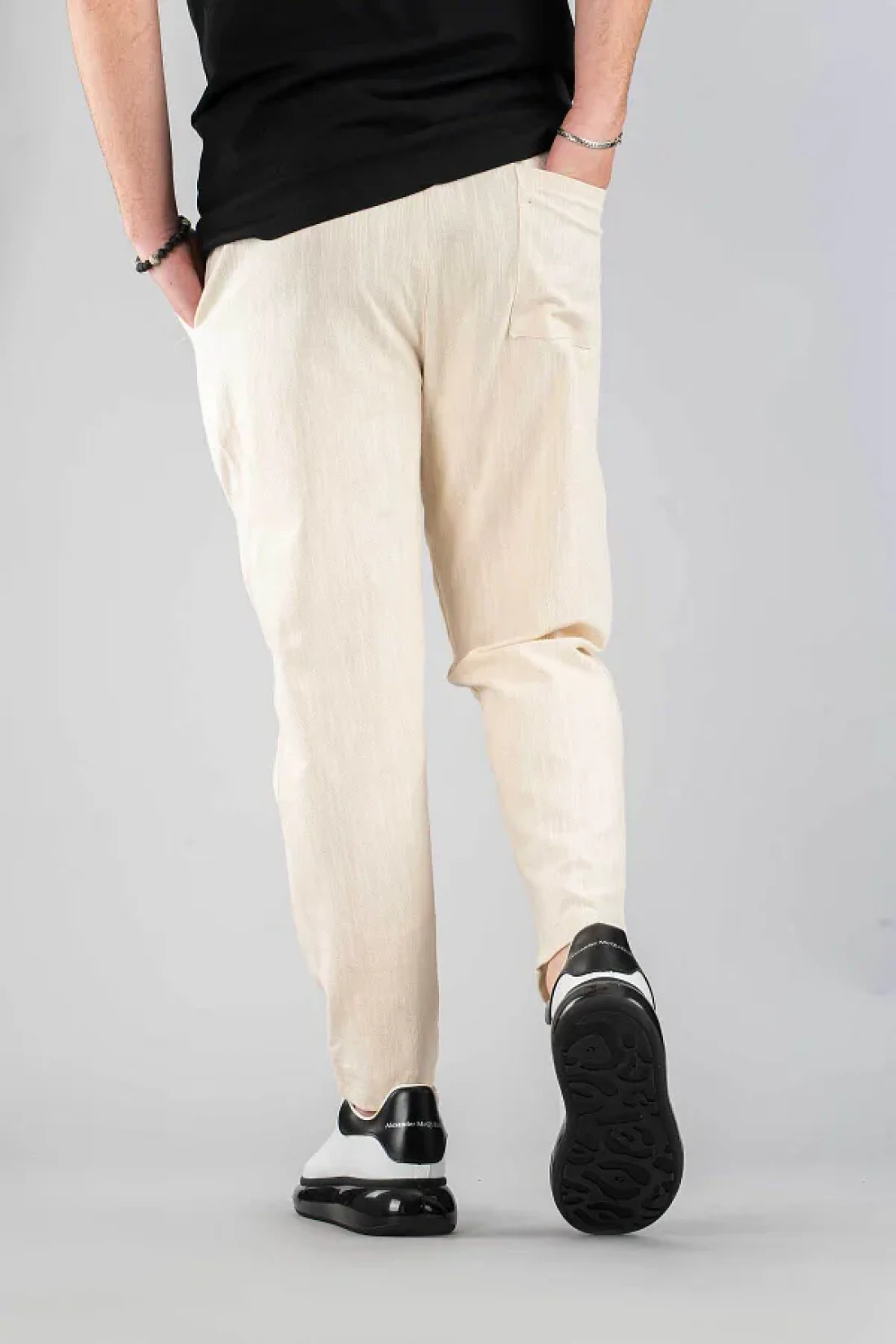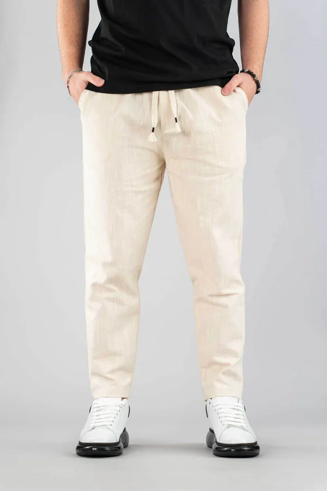 bombe Men's Jogger Linen Pants Elastic Waist Drawstring Cotton Casual Boyfriend Pants Beige
