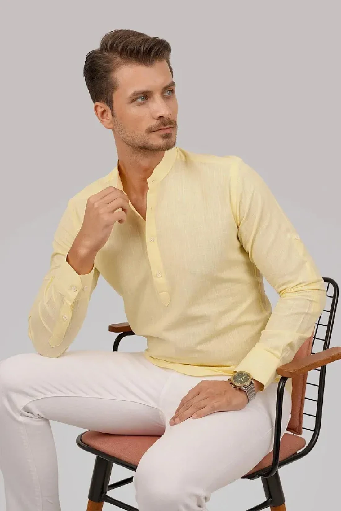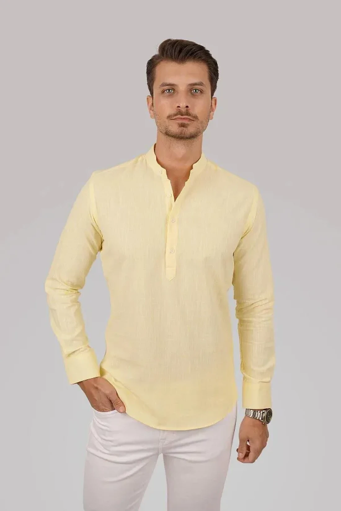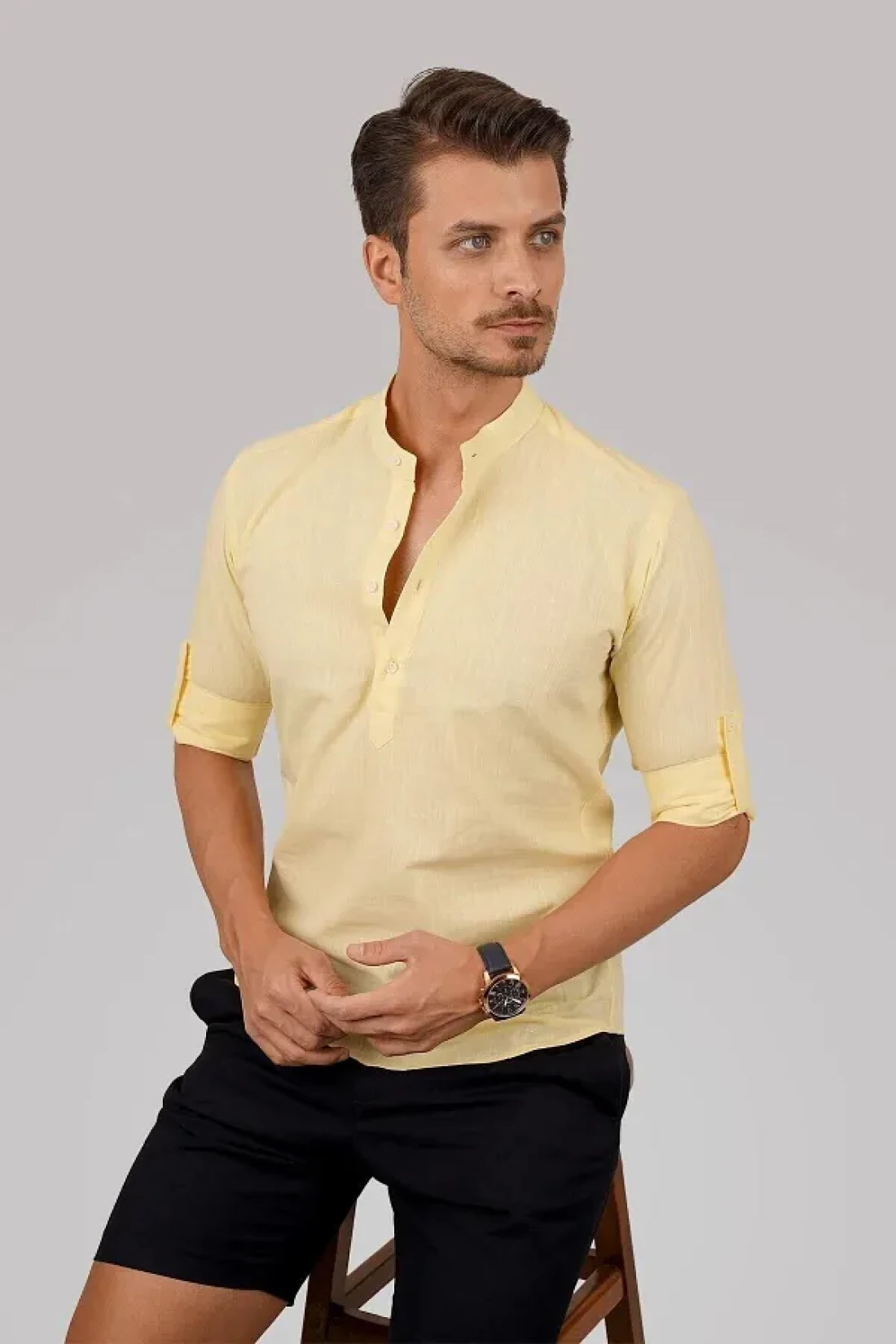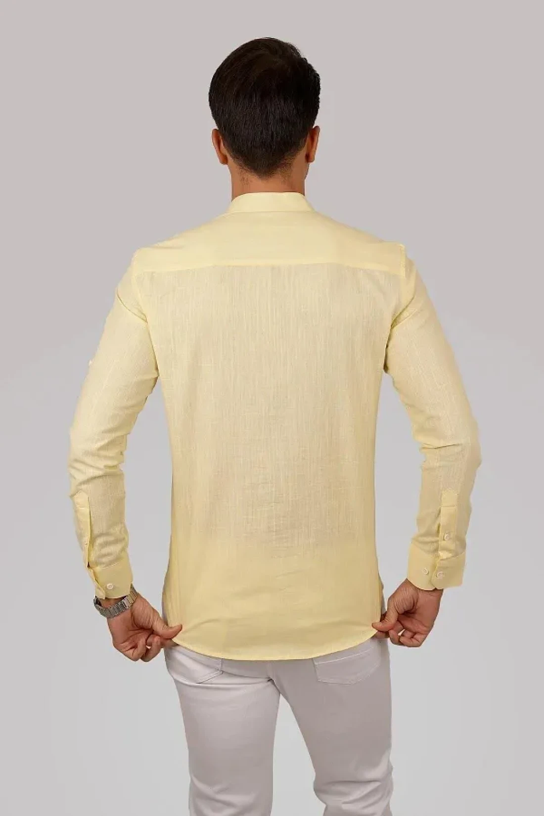Etikmen Yellow Judge Collar Linen Three Button Men's Shirt