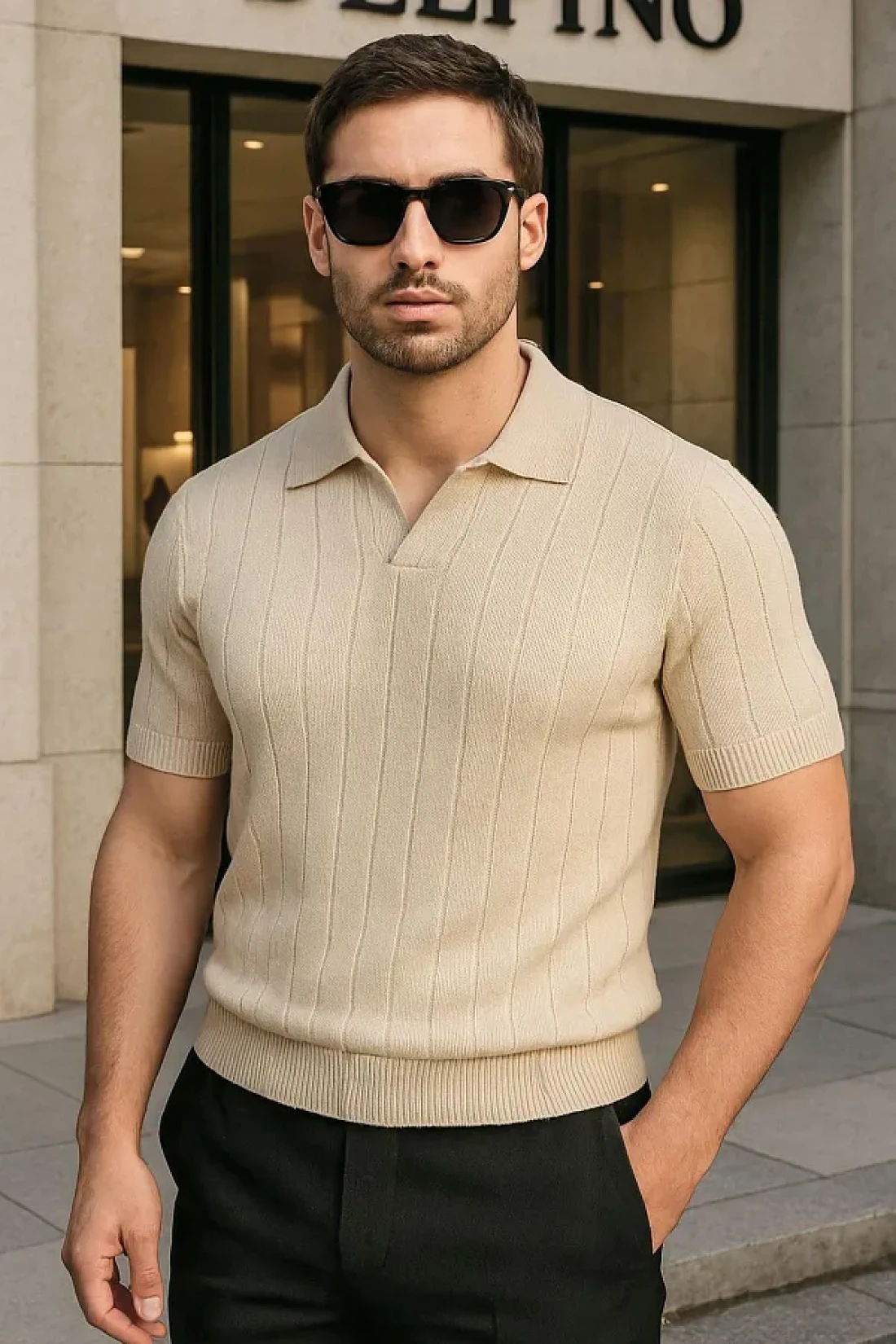 Delpino Polo Neck Knitwear Men's Cotton T-Shirt