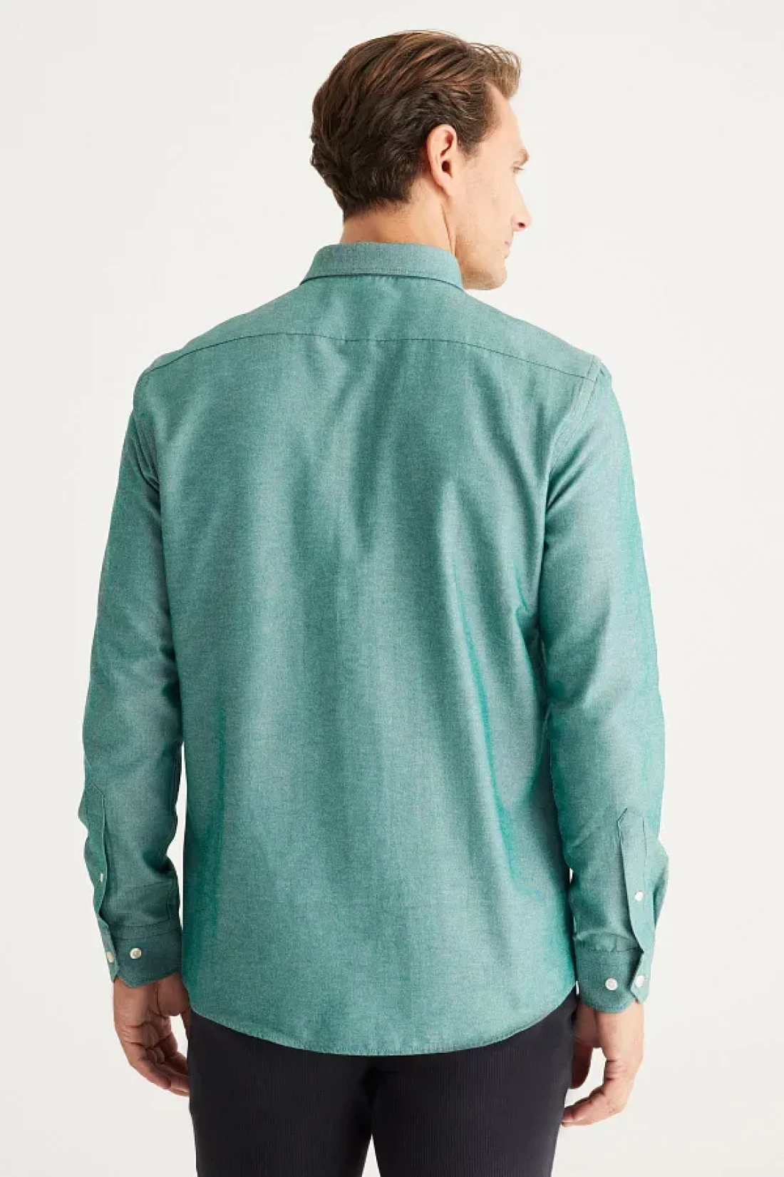 AC&Co / Altınyıldız Classics Green Slim Fit Oxford Men's Shirt - Easy Iron, Button Collar, Cotton