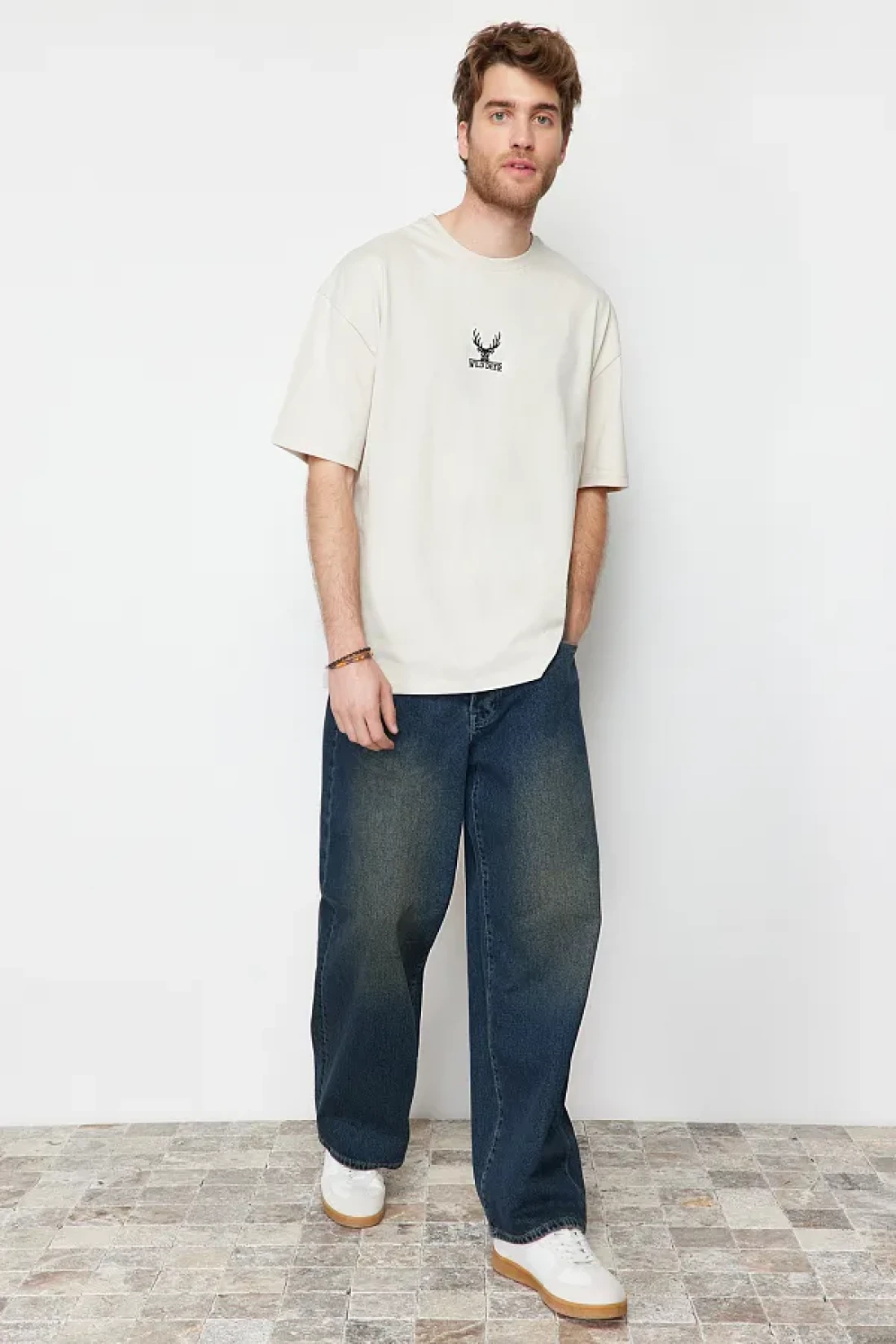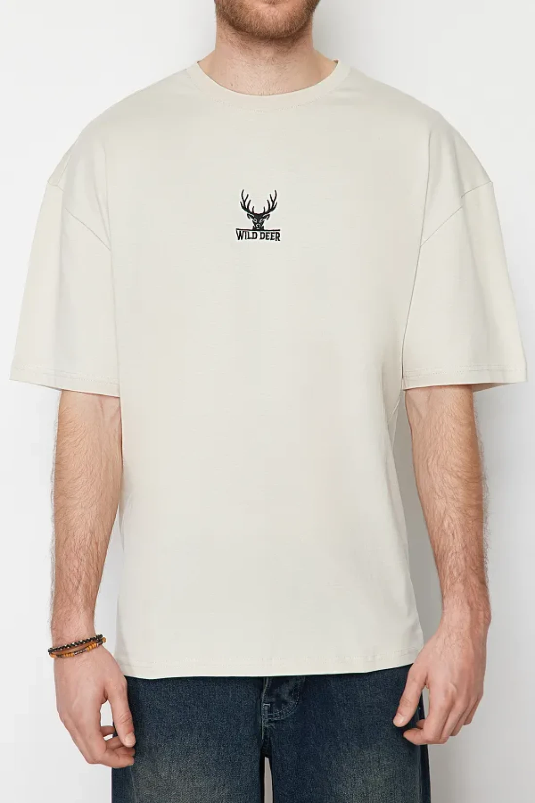 Collection Oversize Stone Color Deer Embroidered Cotton T-Shirt - TMNSS24TS00055