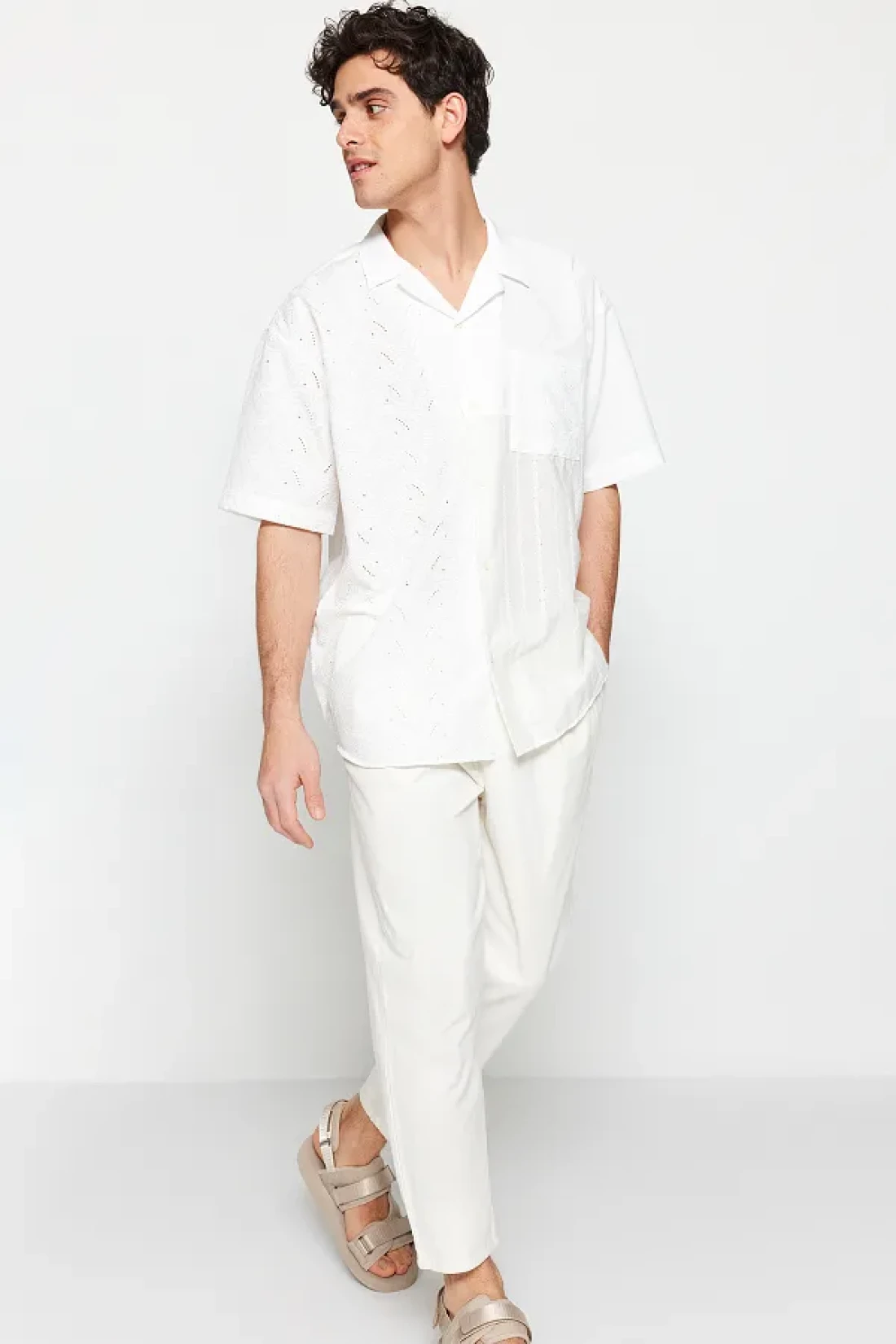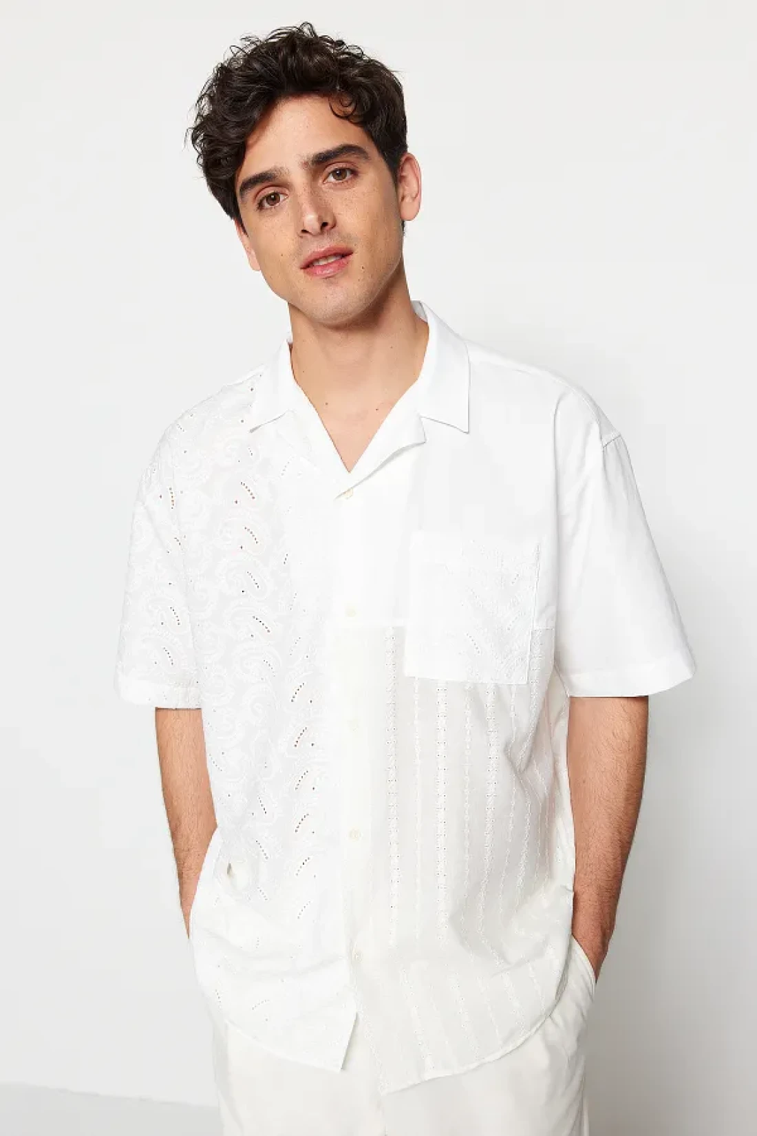 Collection Brode Blocked White Oversize Summer Shirt - Limited Edition TMNSS23GO00135
