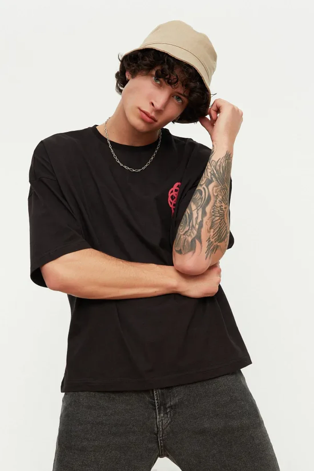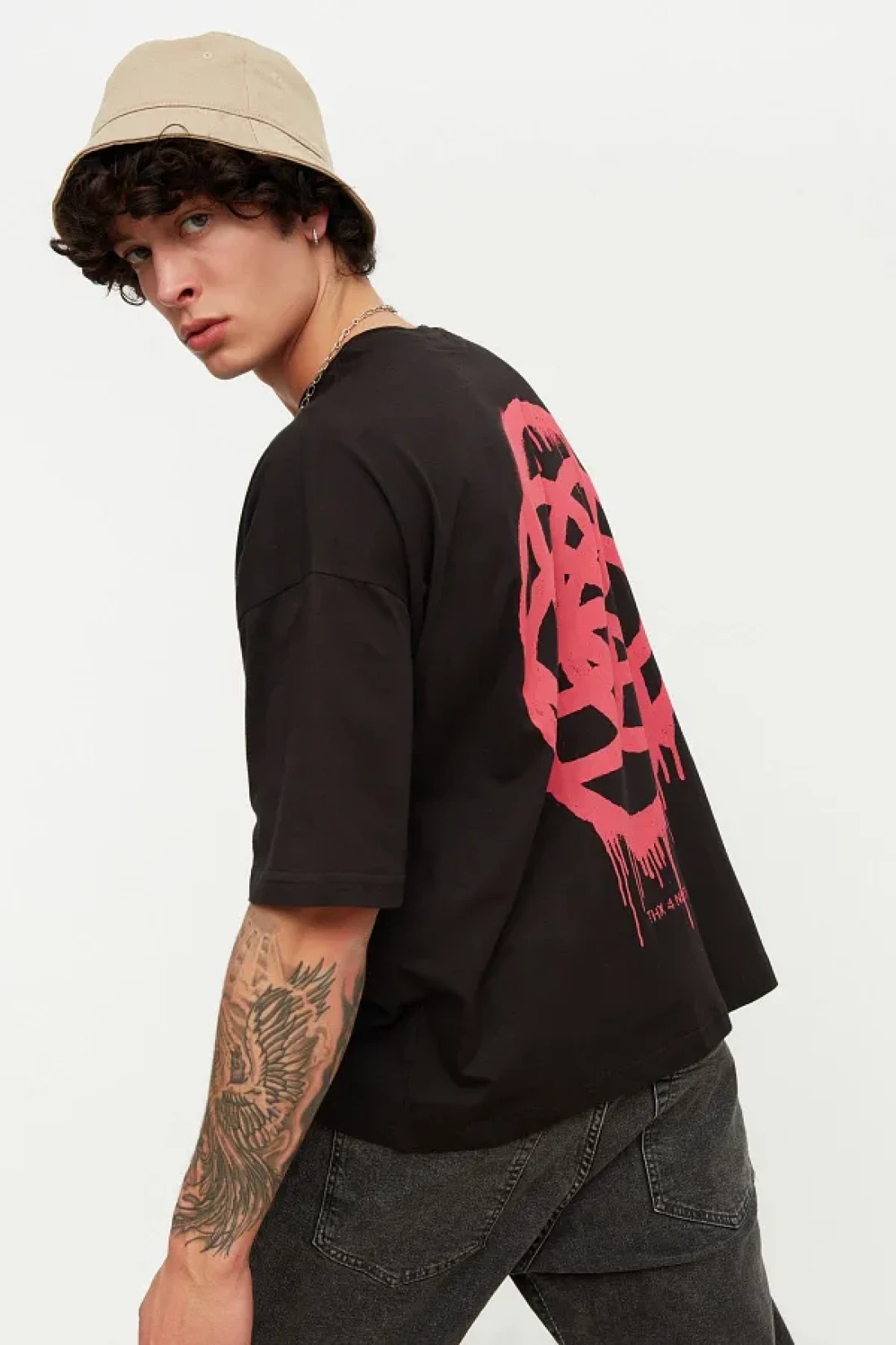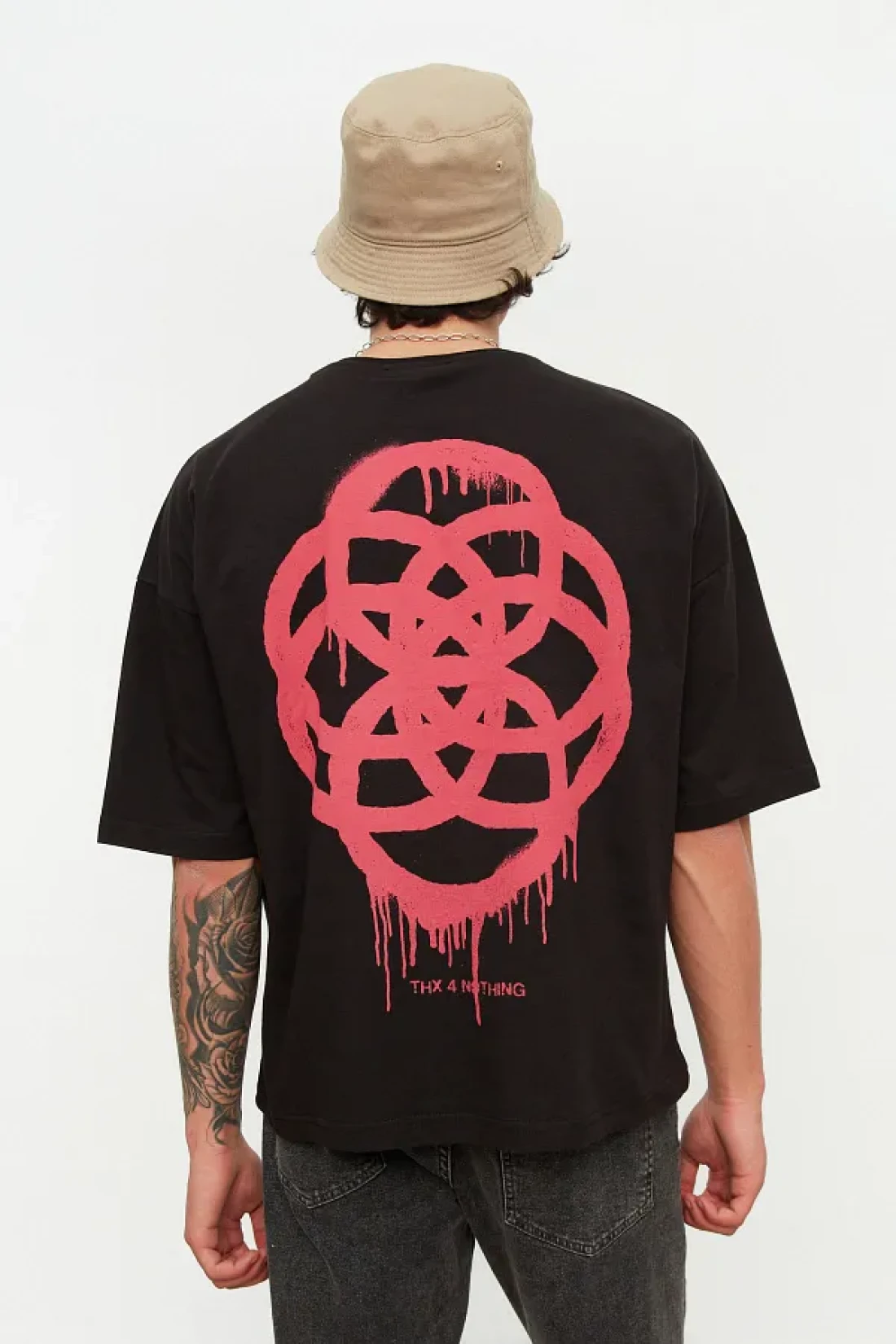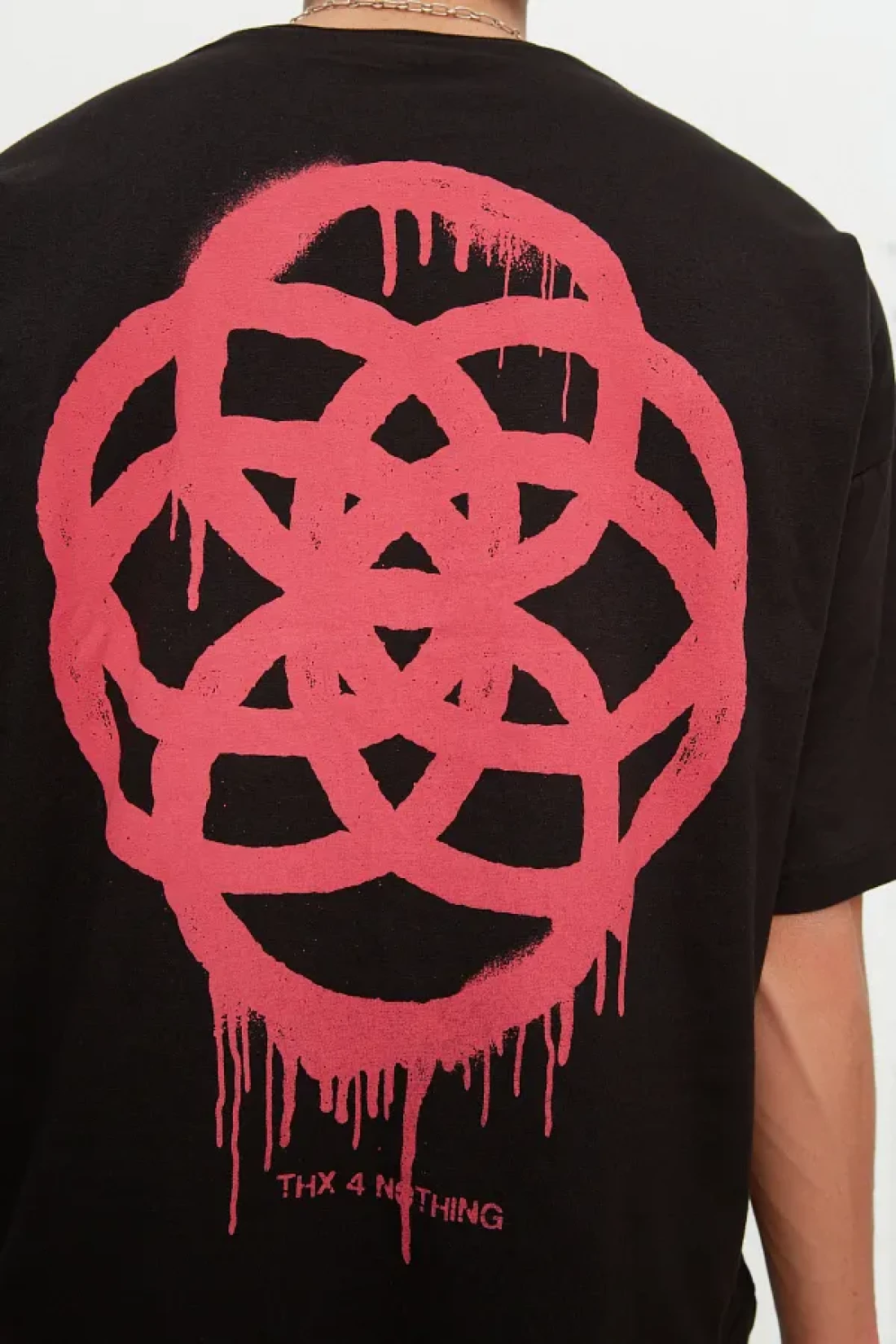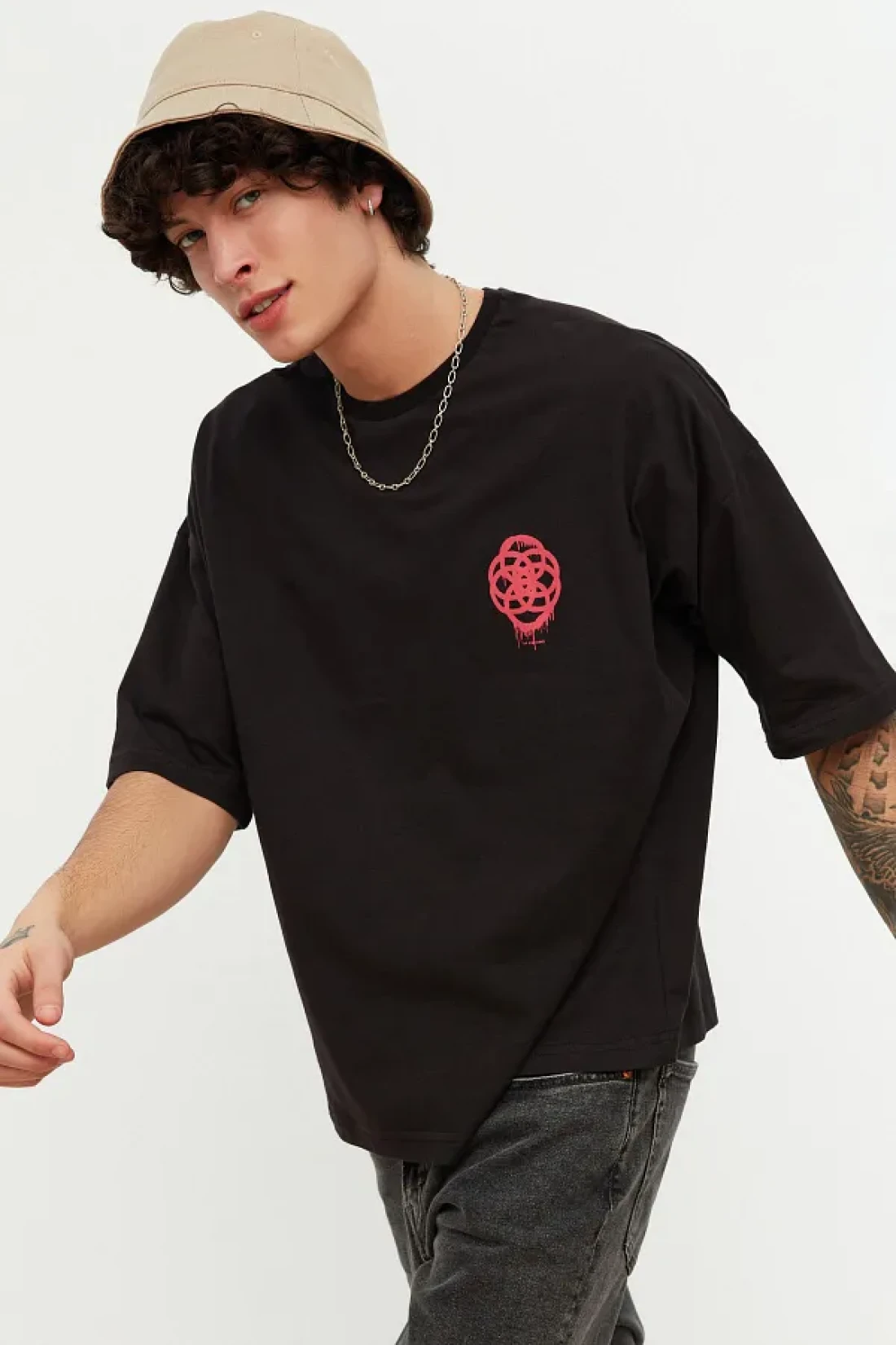 Collection Geometric Printed Black Oversize Cotton T-Shirt - TMNSS21TS1062
