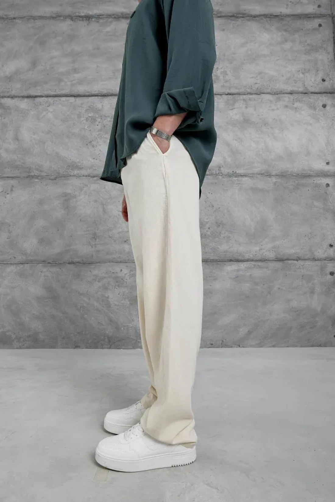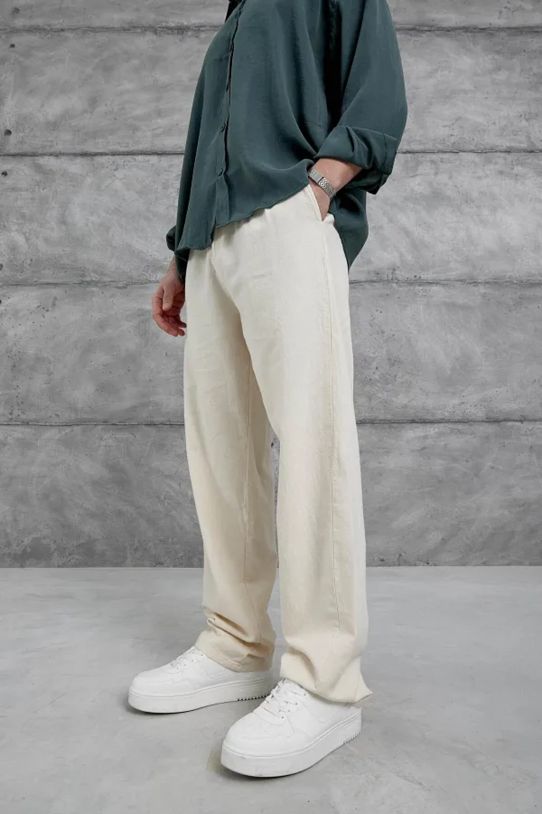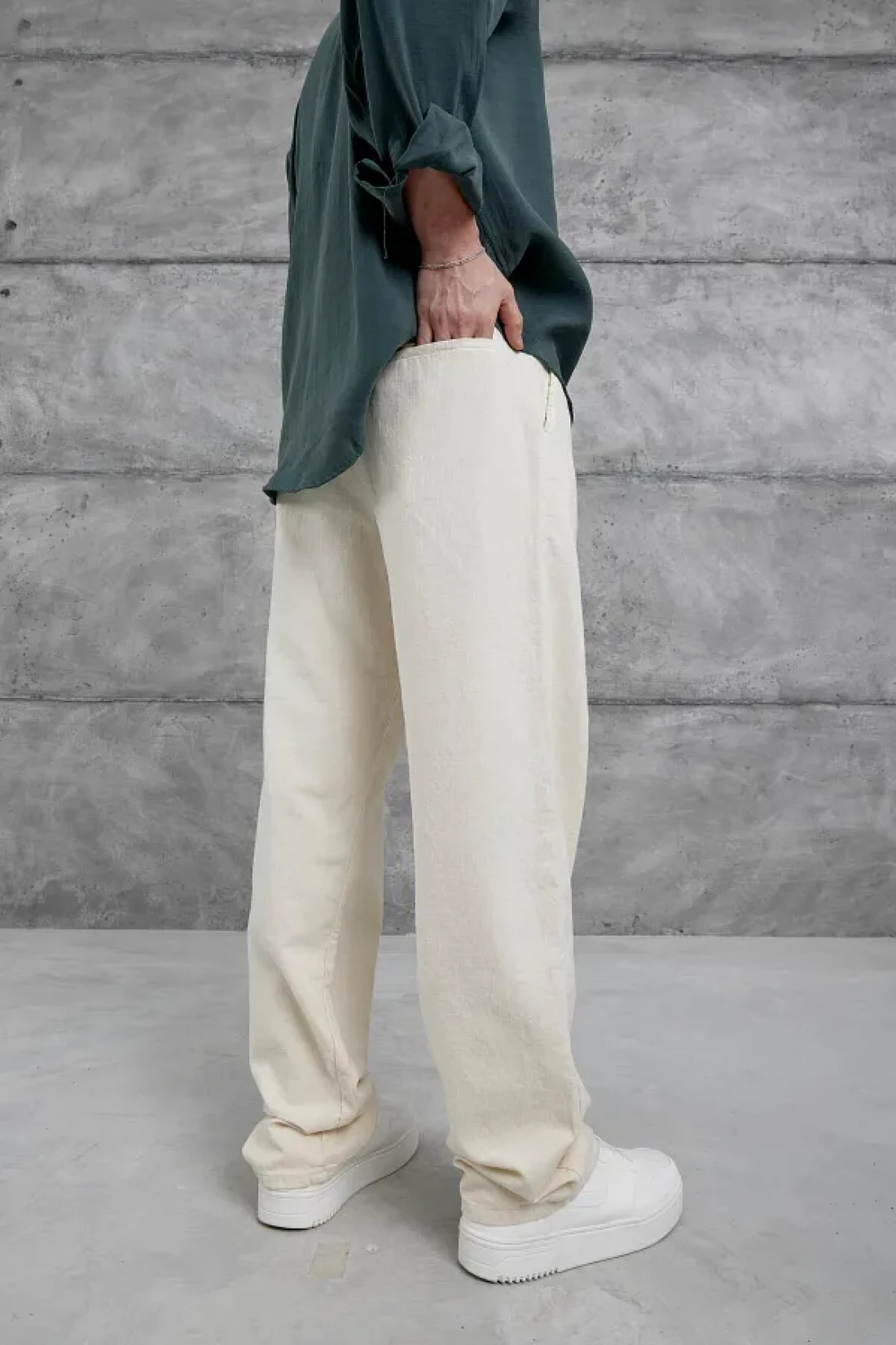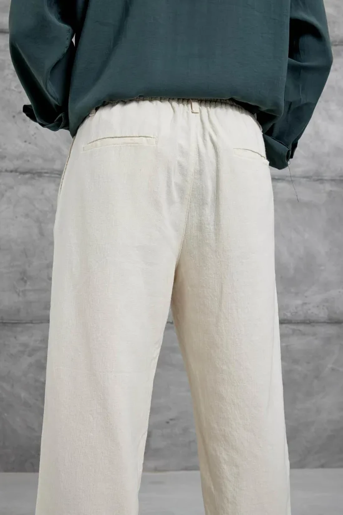 NOMARC Cream Baggy Fit Linen Trousers