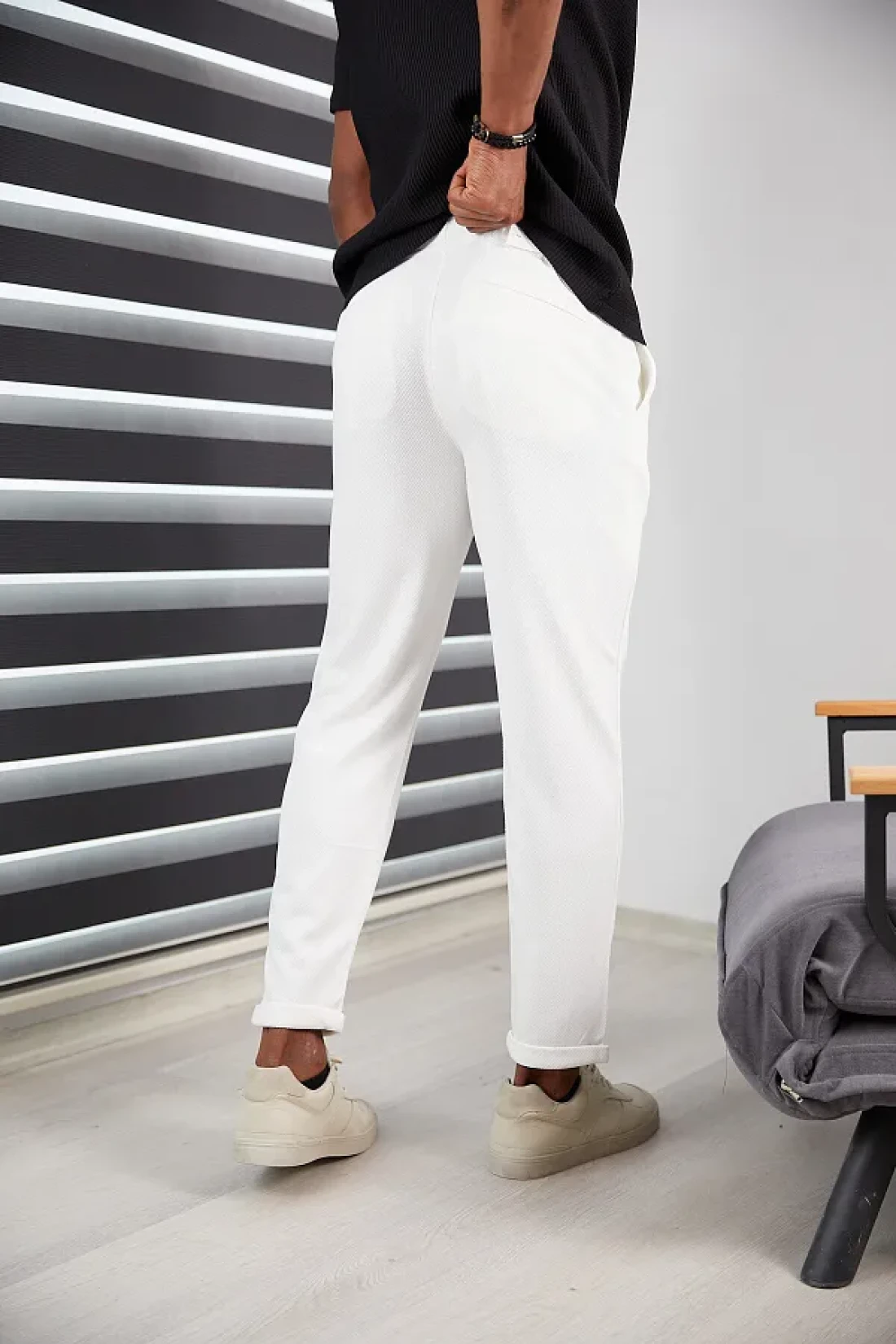 JACK CAPRİO High Quality Patterned Lycra Men's Jogger Pants - Double Leg, White