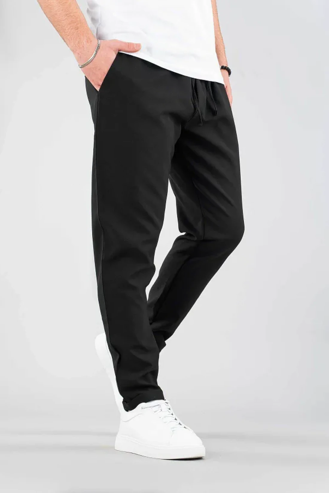 - woven fabric gives durability and soft touch feeling while jogger silhouette gives a modern look. Thanks to the relaxed pattern, you can move comfortably all day long. The closure style, which can be tied or laced, offers easy use while also standing out as an aesthetic detail.