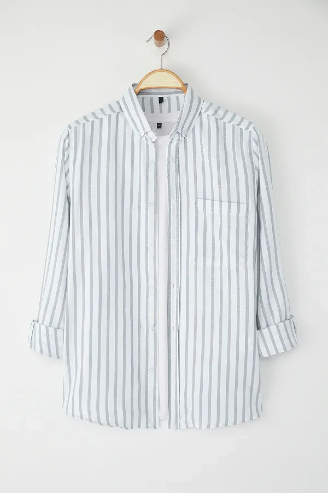 Collection Khaki Regular Fit Striped Oxford Easy-Iron Men's Shirt Tmnss25Go00078