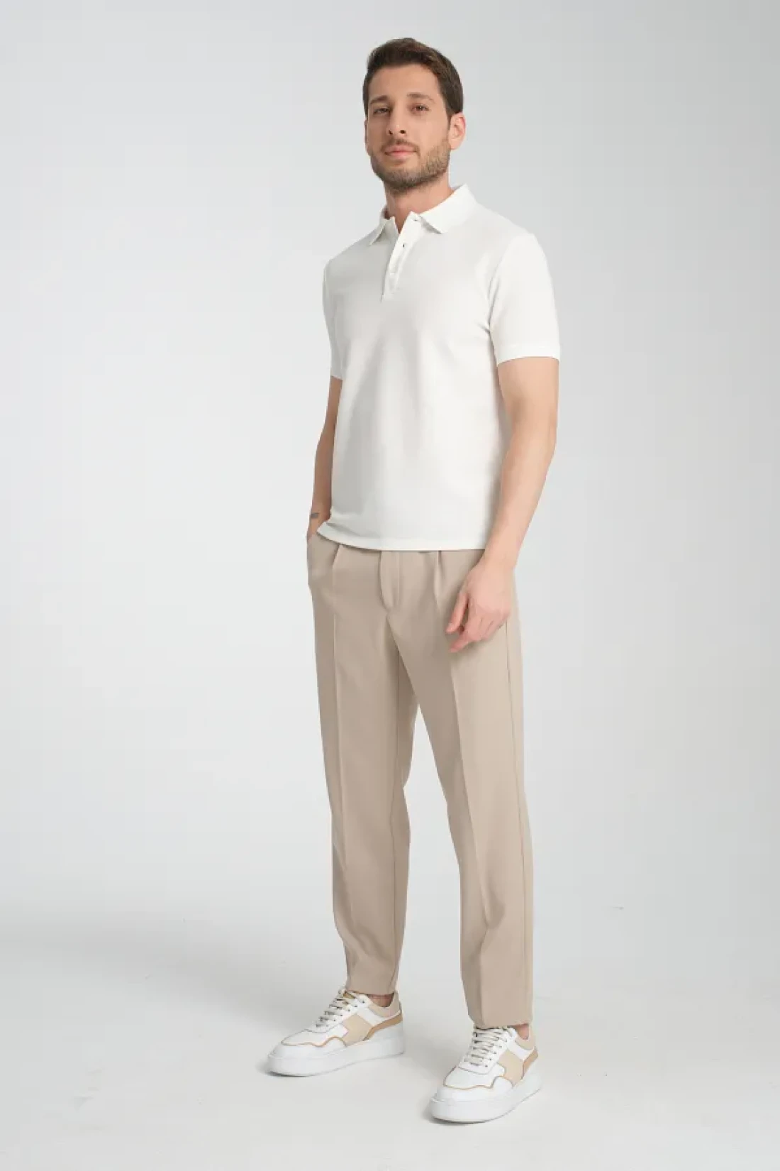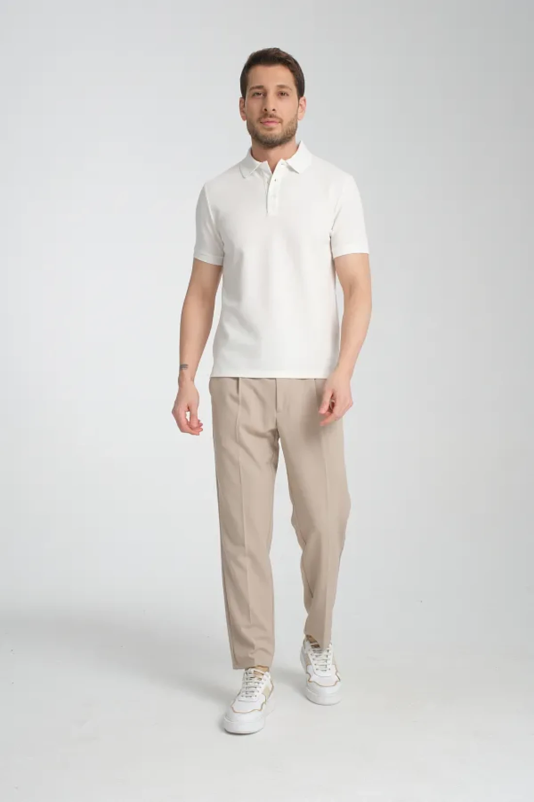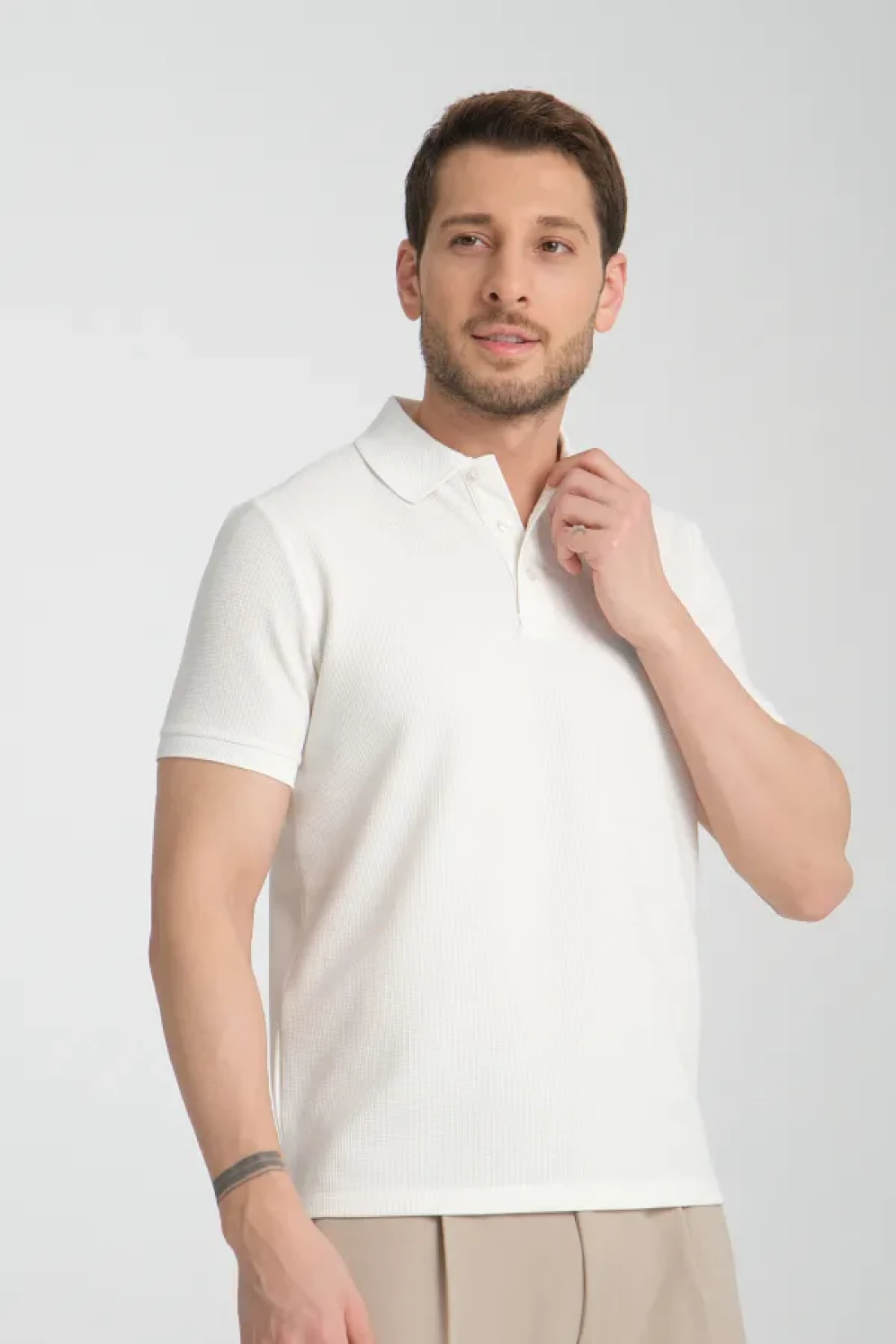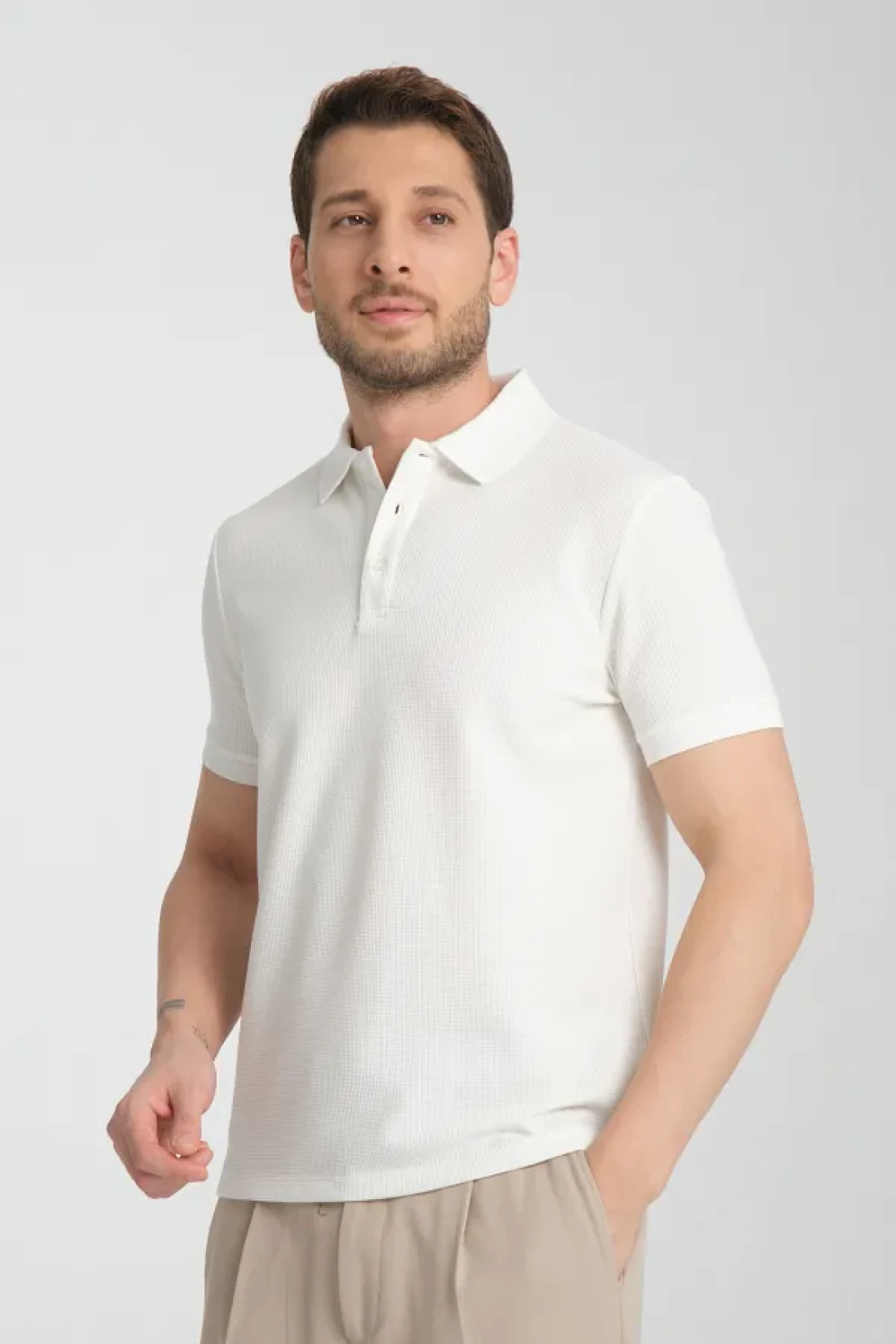 Frappoli Walfer Men's Slim Fit Polo Neck White T-Shirt - 100% Cotton, Non-Shrink Fabric