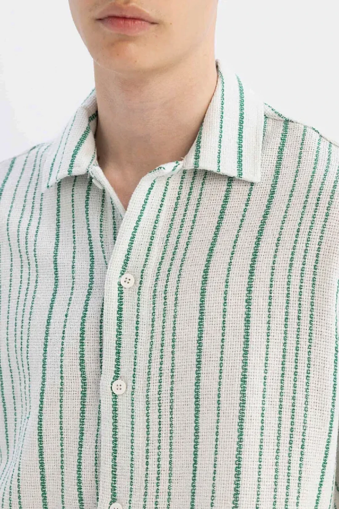 This short-sleeved shirt, which stands out for its comfortable fit and striped design, offers elegance and comfort together. The product, suitable for daily use, impresses with its stylish details. A candidate to become a must-have in your wardrobe Relax fit striped short sleeve The shirt is an ideal choice to add a touch of elegance to your style.