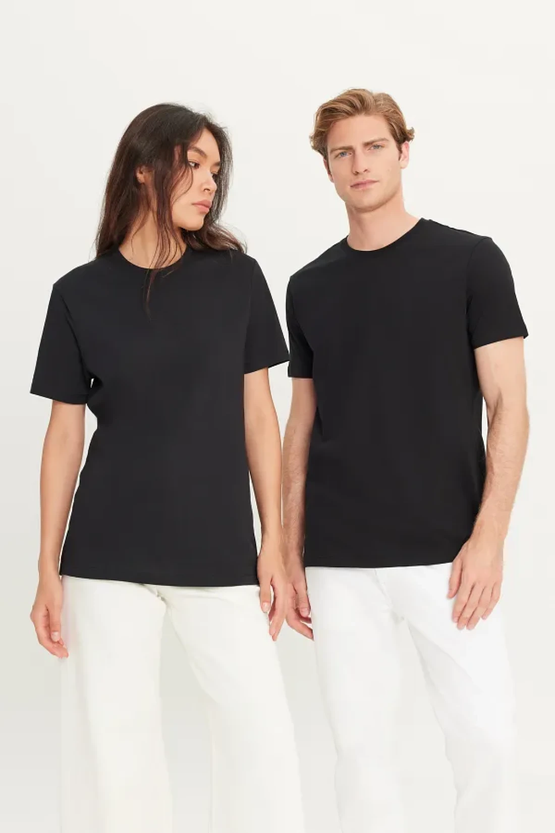 AC&Co / Altınyıldız Classics Men/Unisex Black 100% Cotton Slim Fit Slim Fit Crew Neck Basic T-Shirt