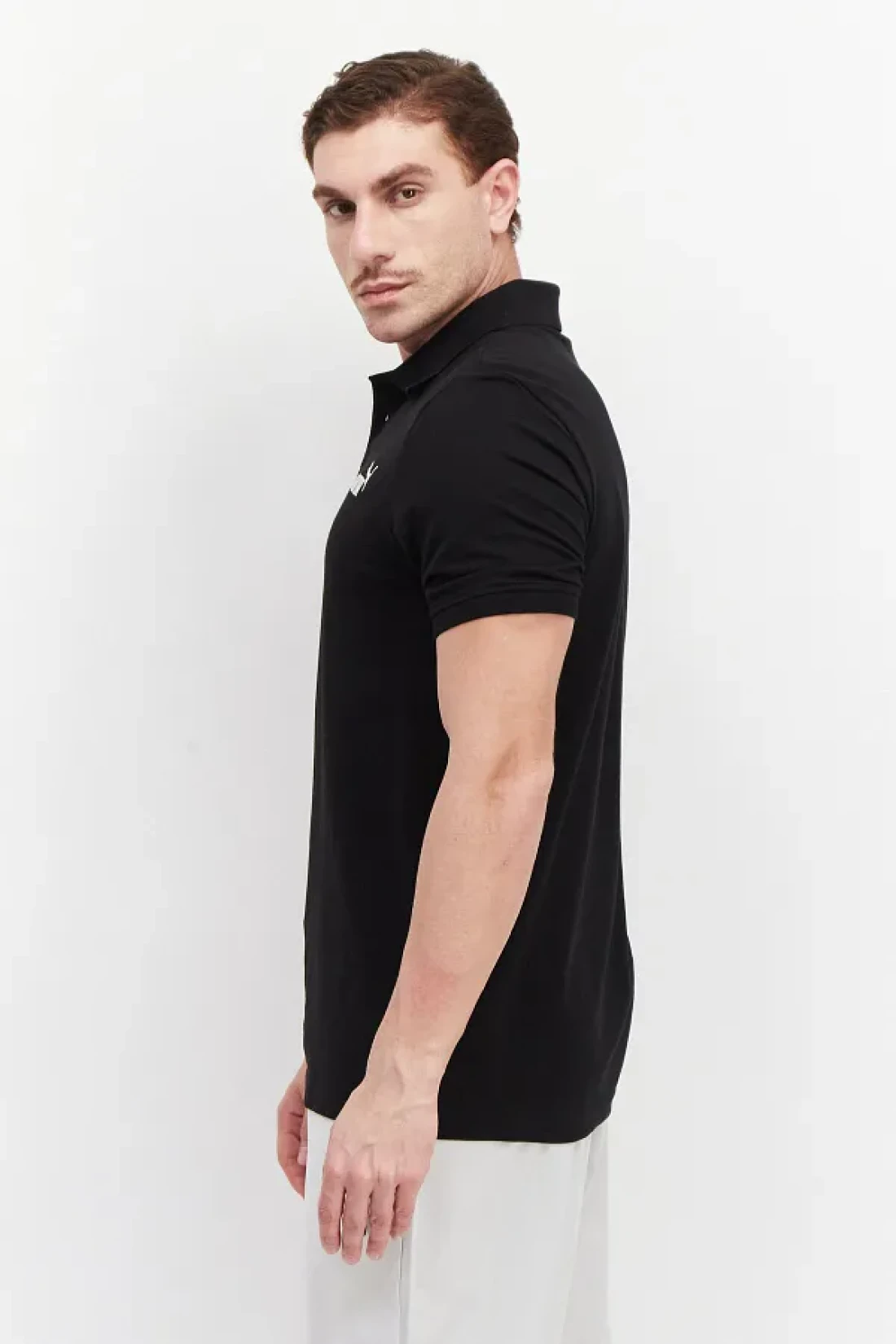 Men Sportswear Fit Embroidered Logo Outdoor Polo Shirts, Black/White