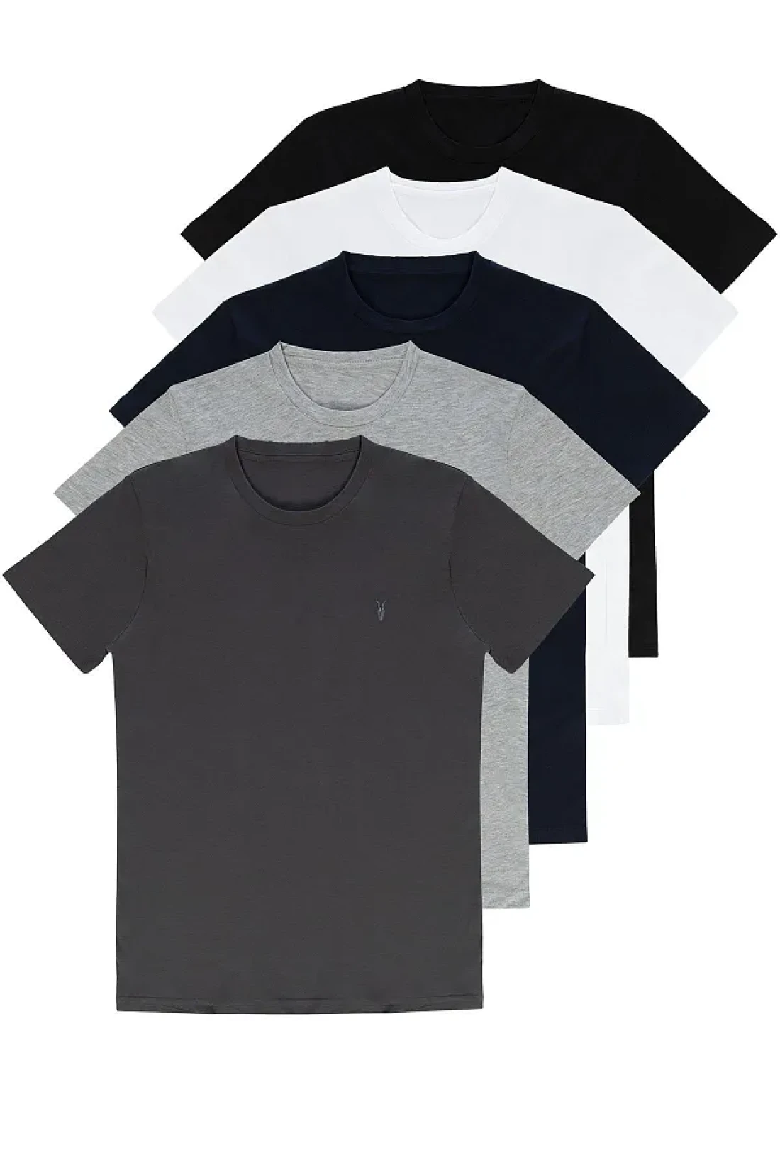 COMBİNE MİCHAİL Standard Pattern Basic Crew Neck 5-Piece T-shirt Pack with Embroidery Detail