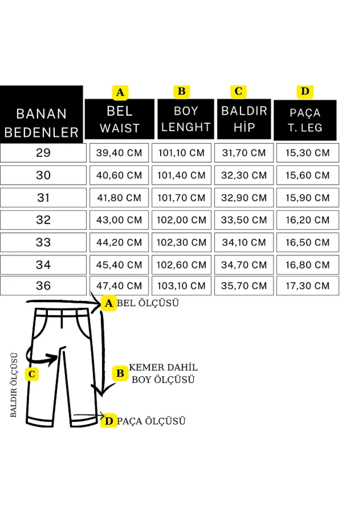 Our boyfriend trousers, which are comfortable to fit, are the new season. The product content contains 99% cotton and 1% lycra. If you are undecided about your size, our size chart is available in our last image. Model height: 186 cm weight: 80 kg preferred size: 32.