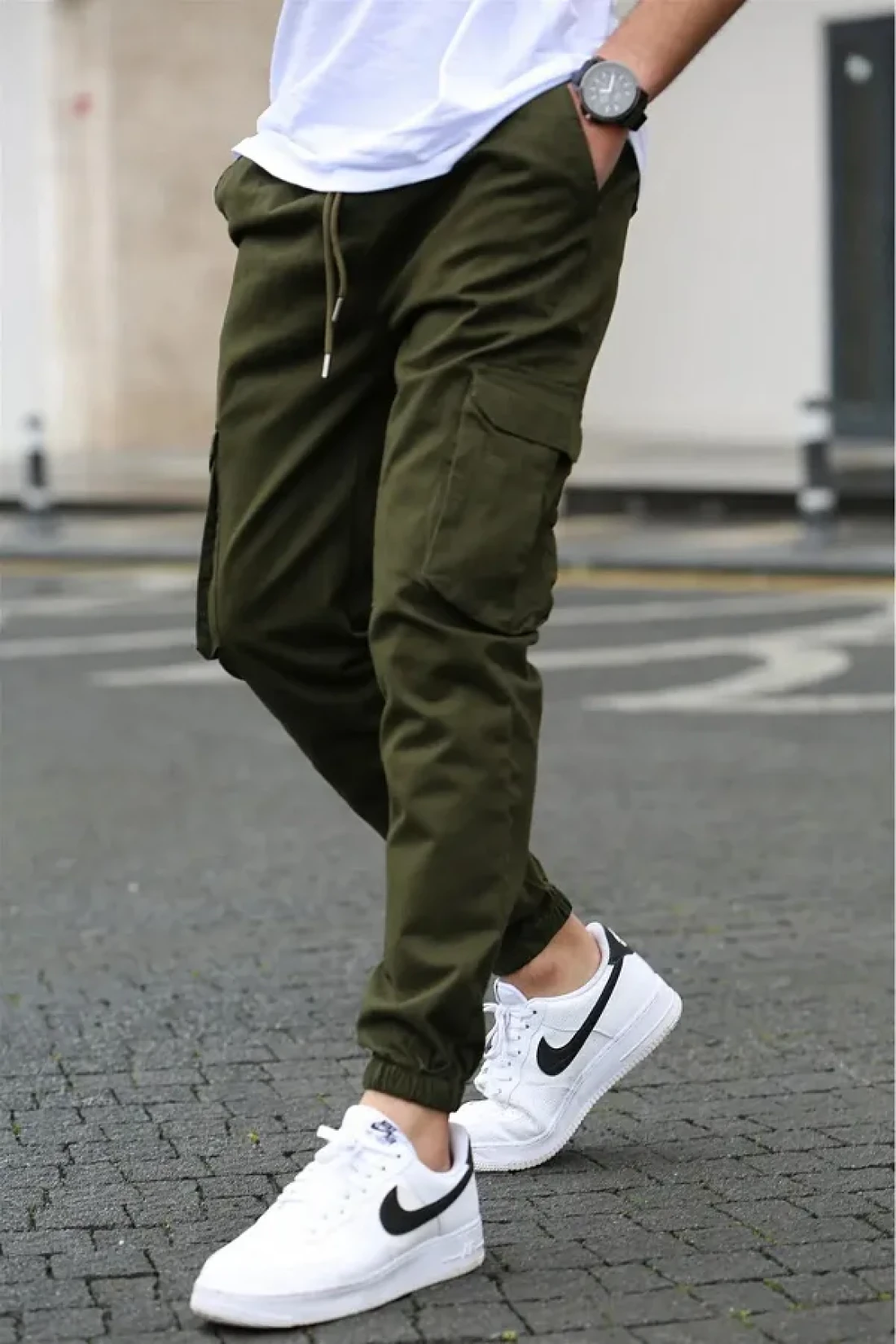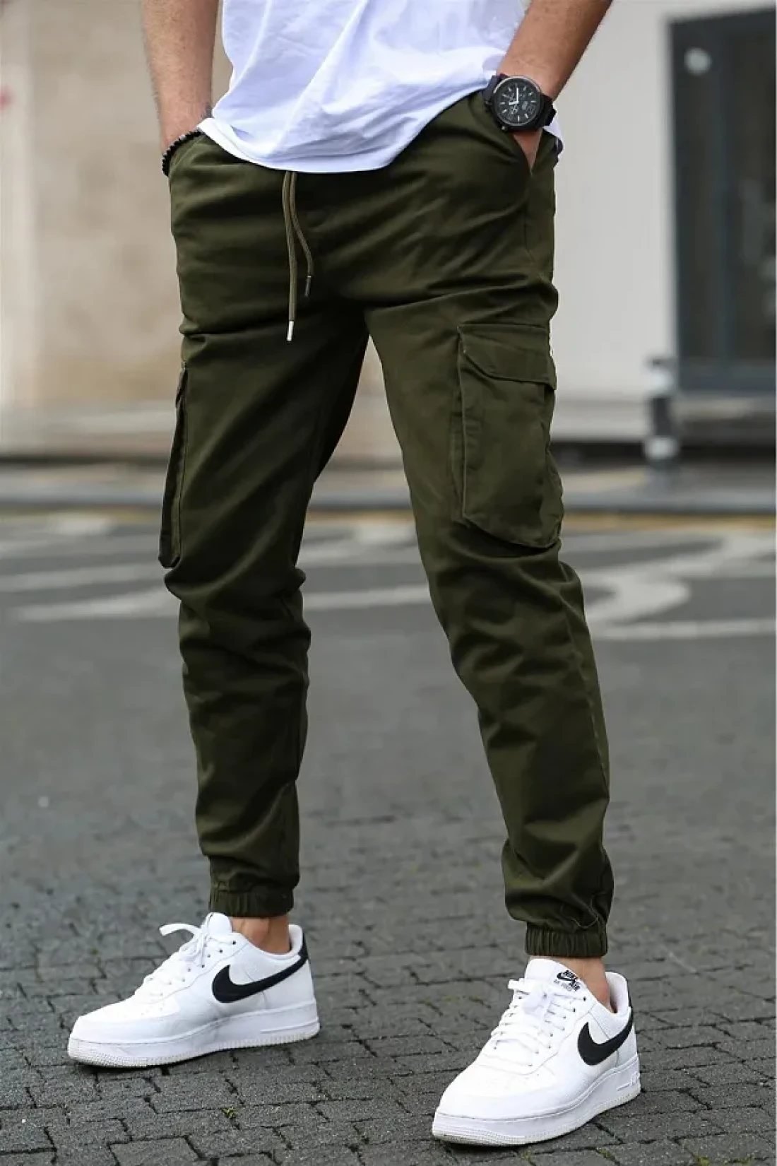 VIKUNYA Men's Summer Khaki Jogger Cotton Cargo Pants Adjustable Waist Elasticized Legs Comfort