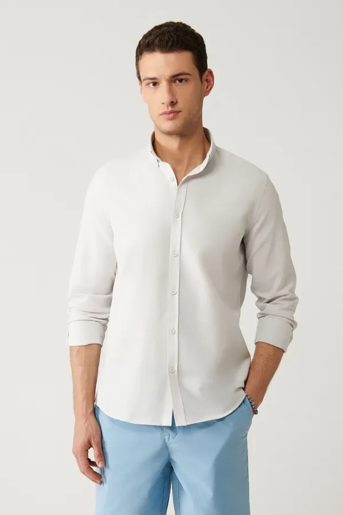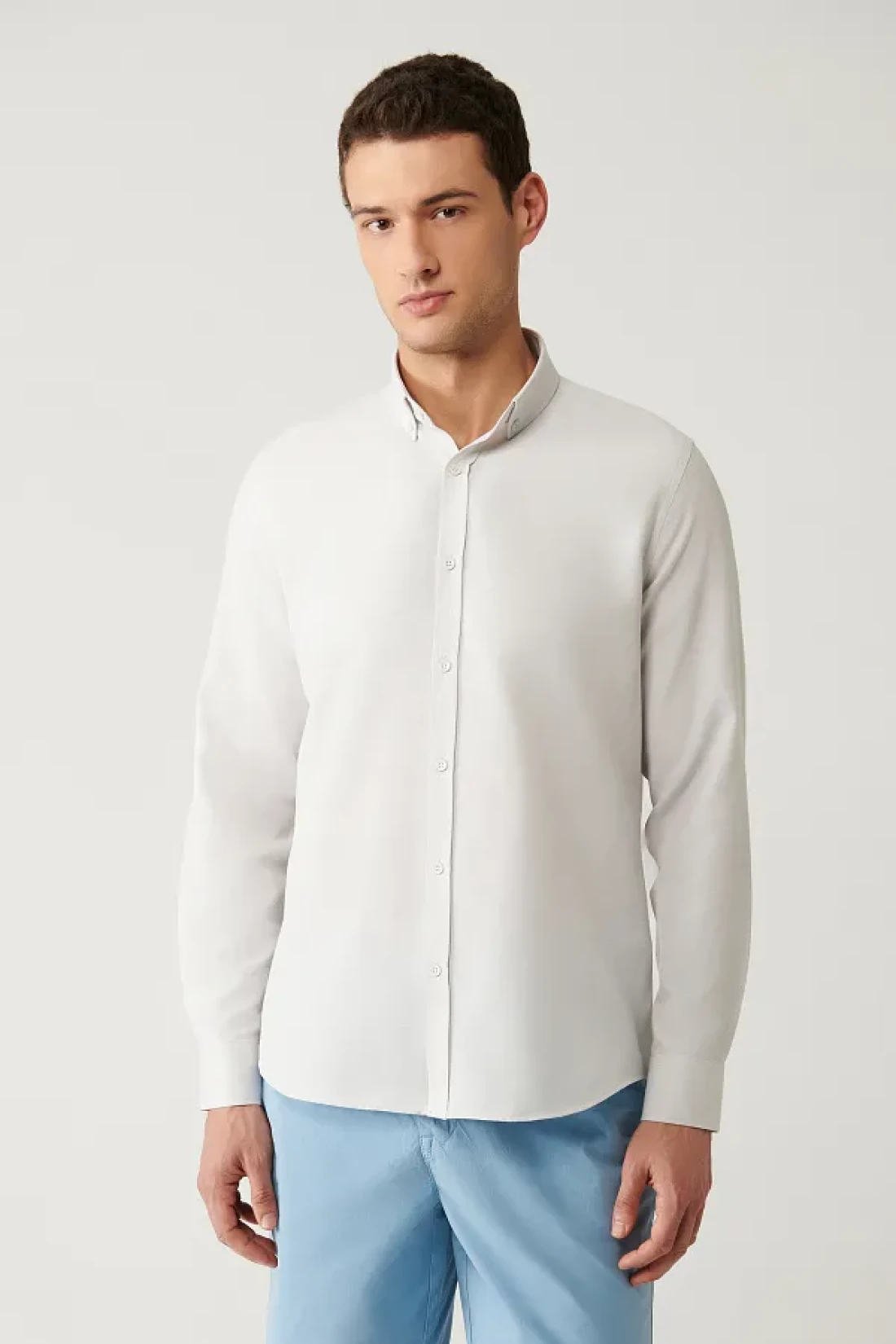 Avva Men's Gray Buttoned Collar Easy-Iron Cotton Oxford Shirt E 002000