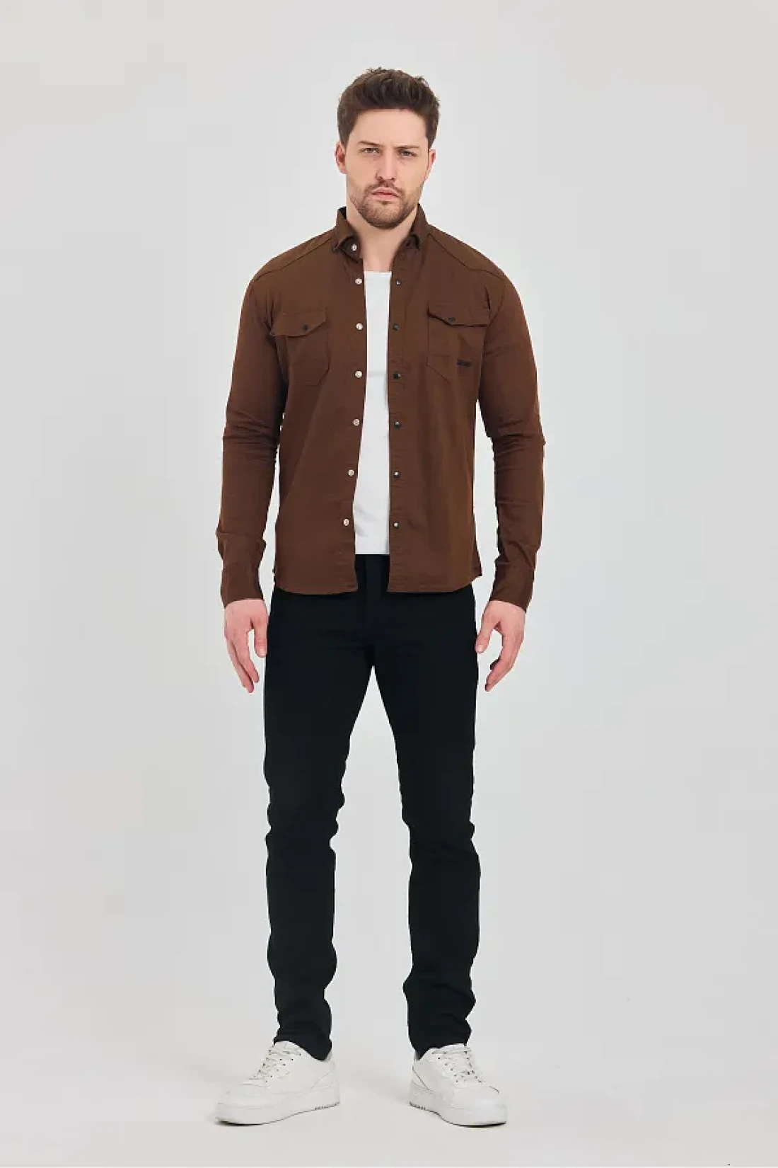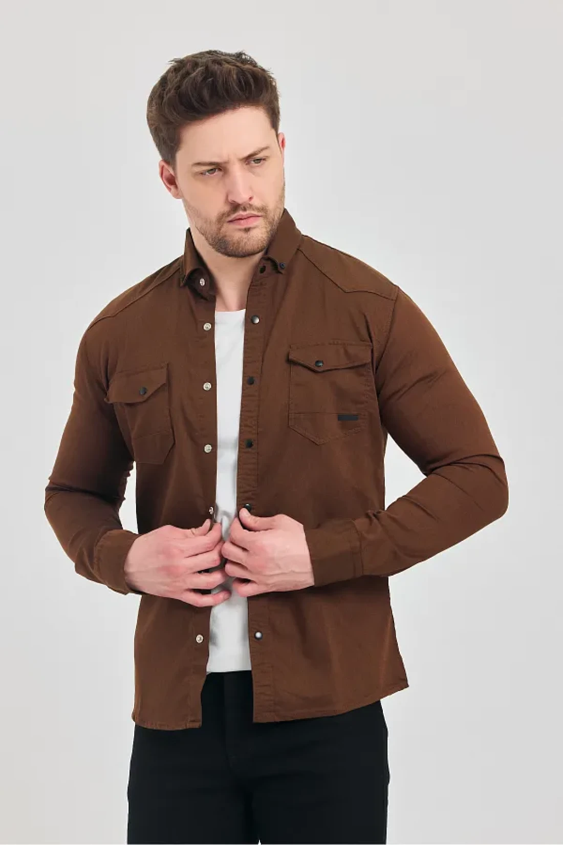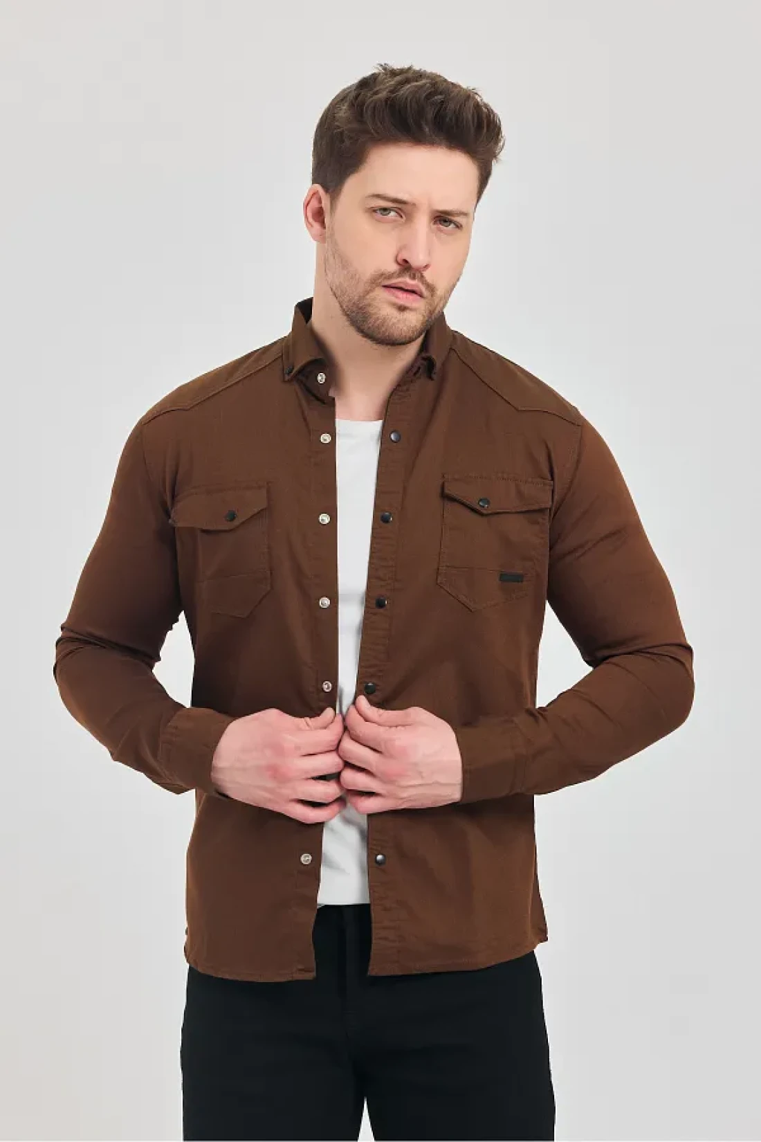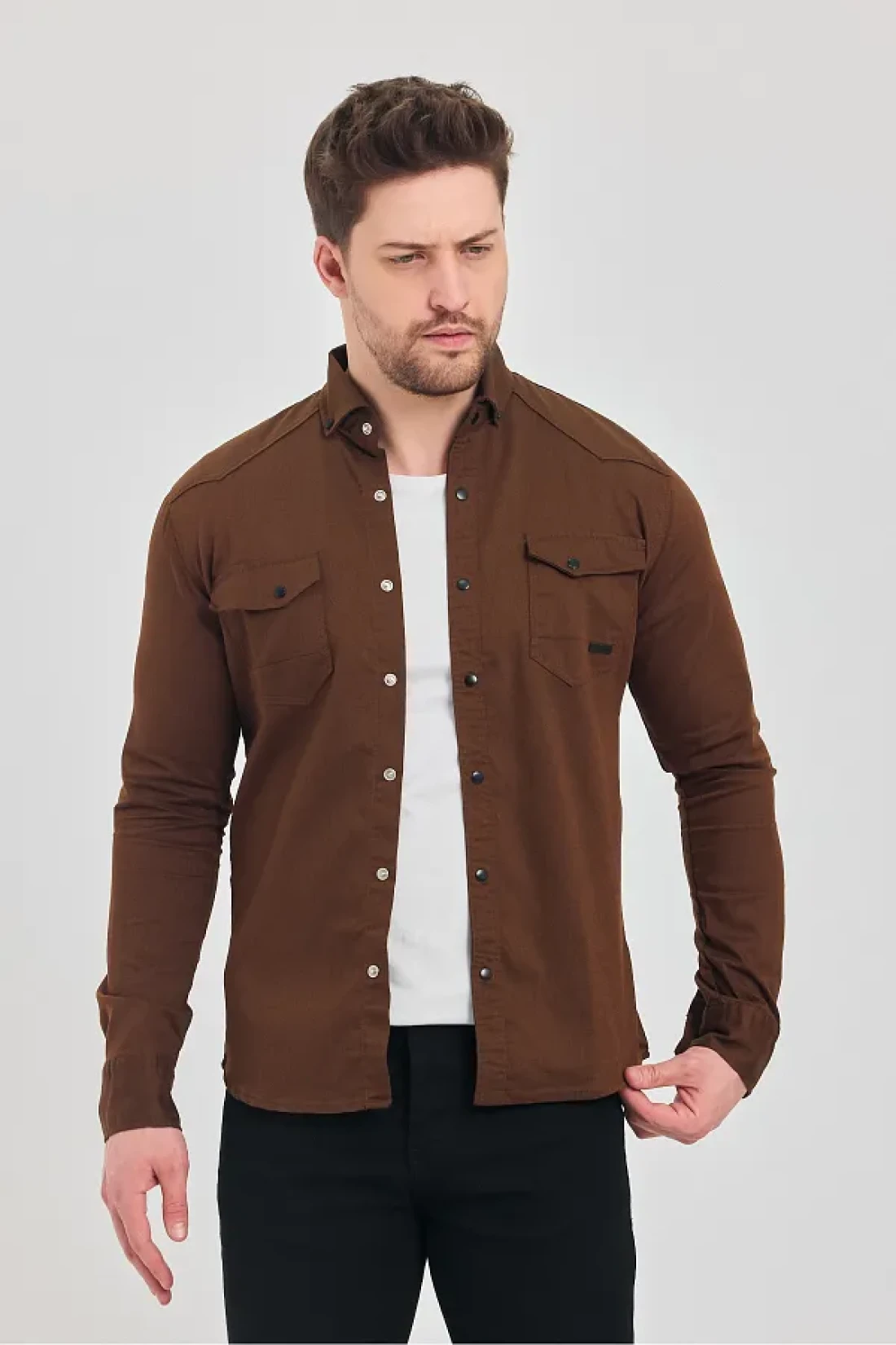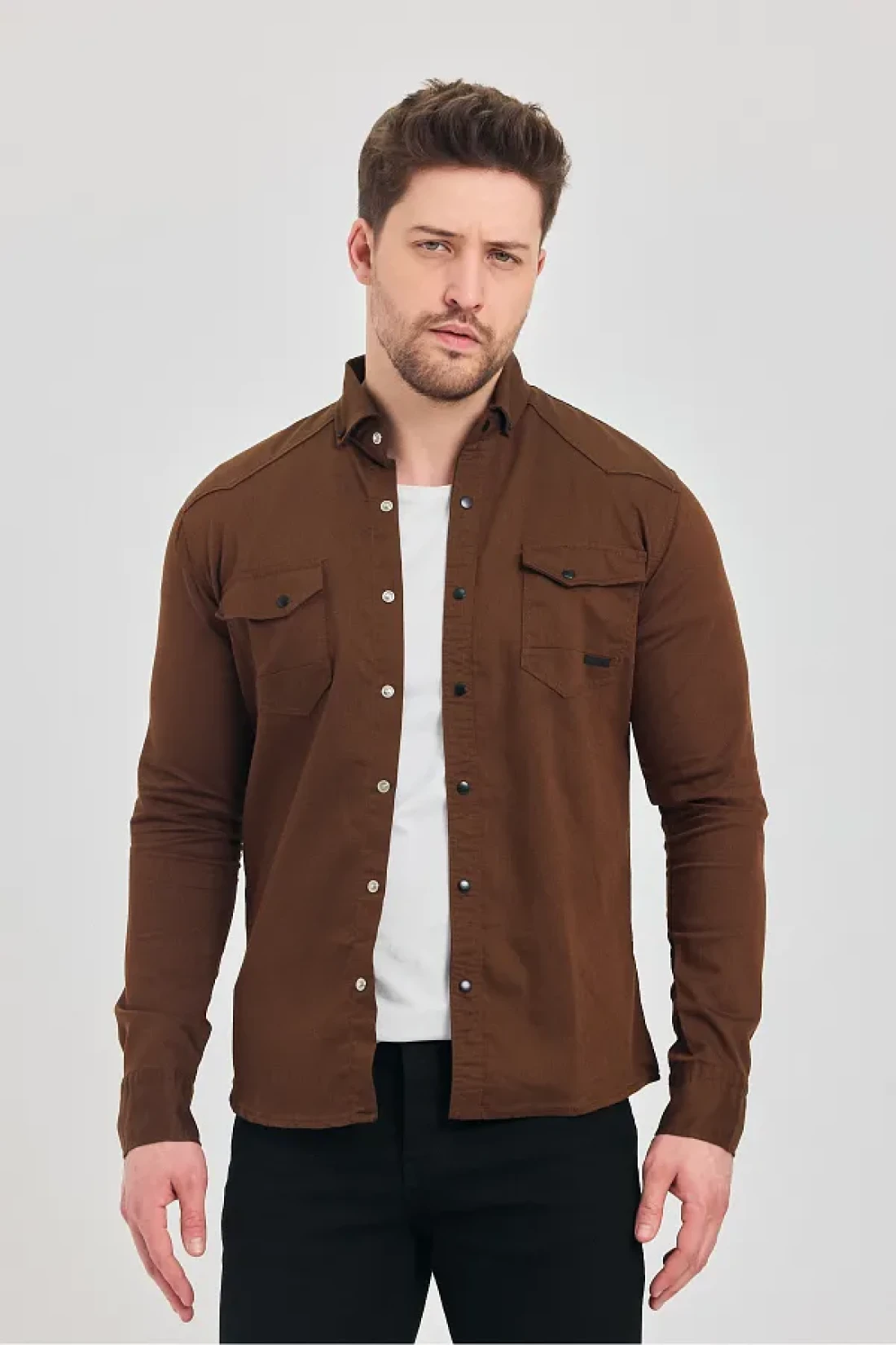 YXC Trend Maker Men's Brown Slim Fit Slim Fit Cotton Jeans Shirt