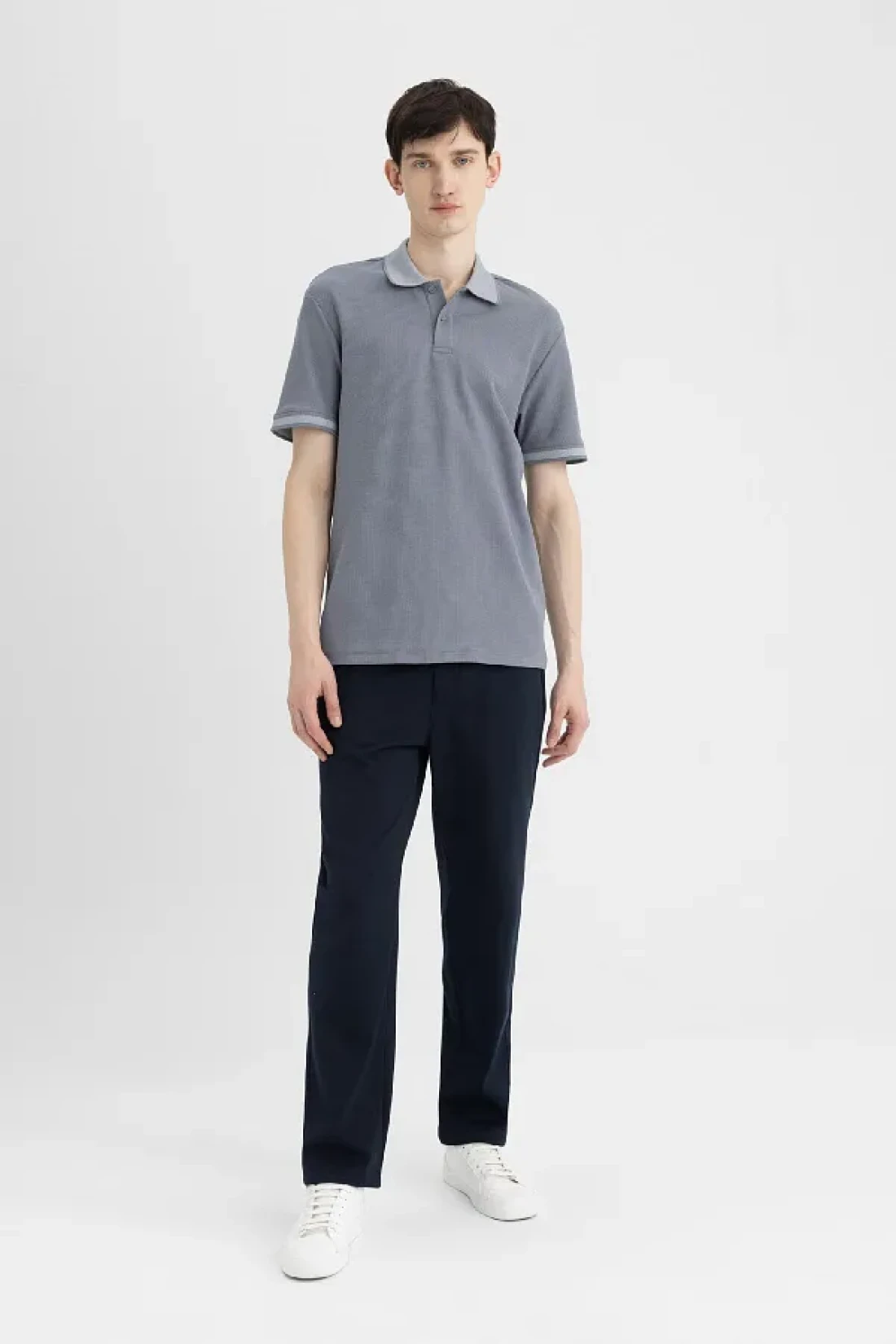 New regular fit polo collar The t-shirt combines elegance and comfort. It adapts to any style with its classic polo collar design and solid color option. A long-lasting piece with high-quality fabric and excellent stitching details. A candidate to become an indispensable part of your wardrobe.