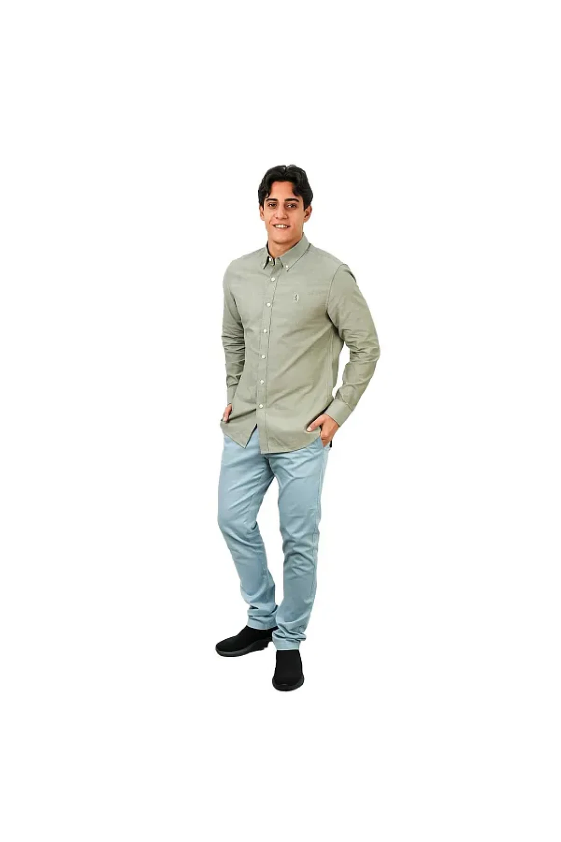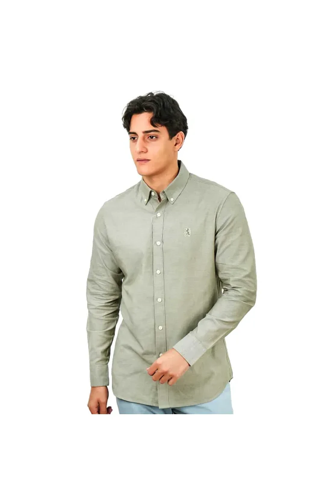Giordano Men's Cotton Oxford Shirt - Small Lion Embroidery, Slim Fit, Full Button