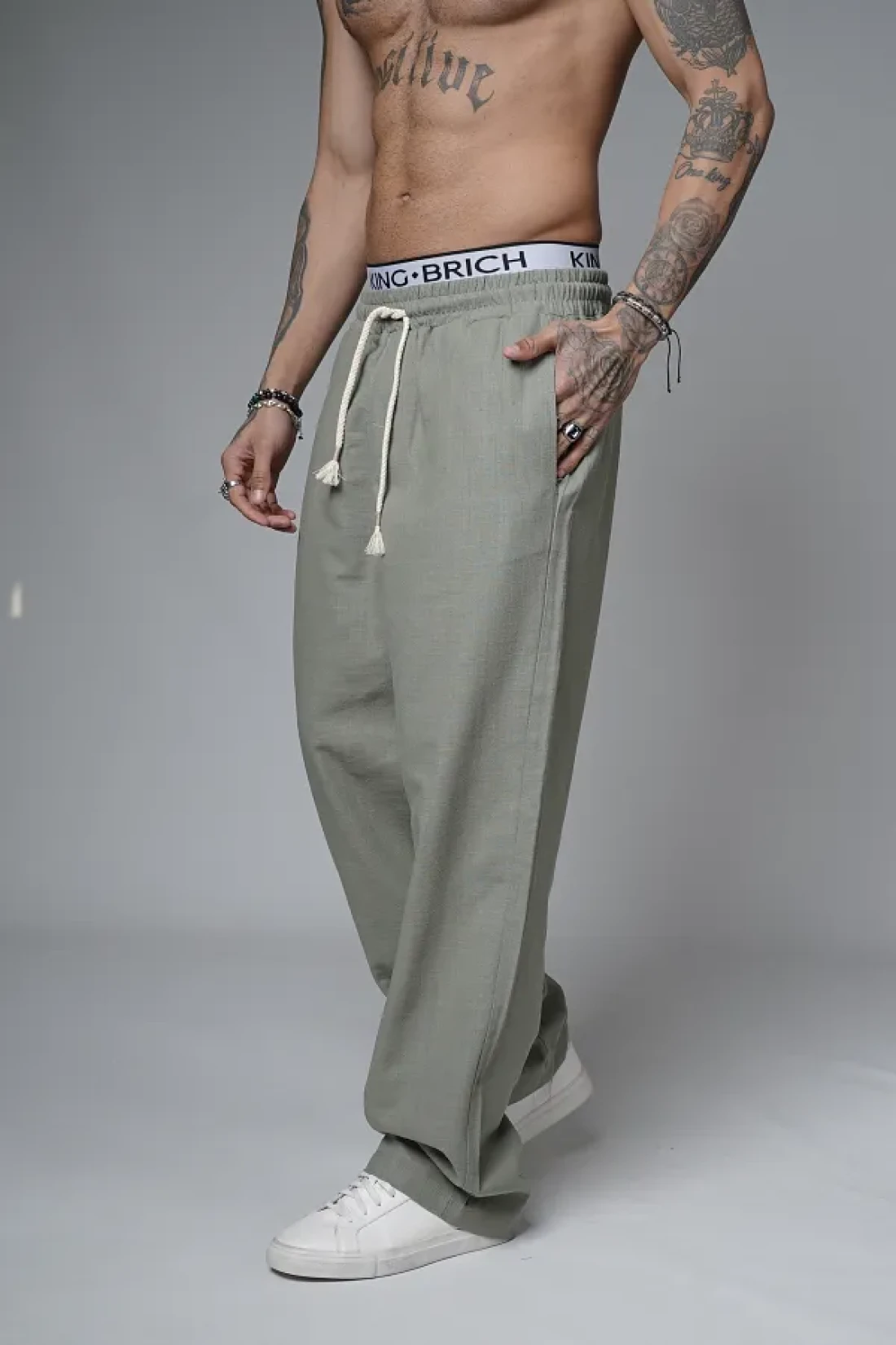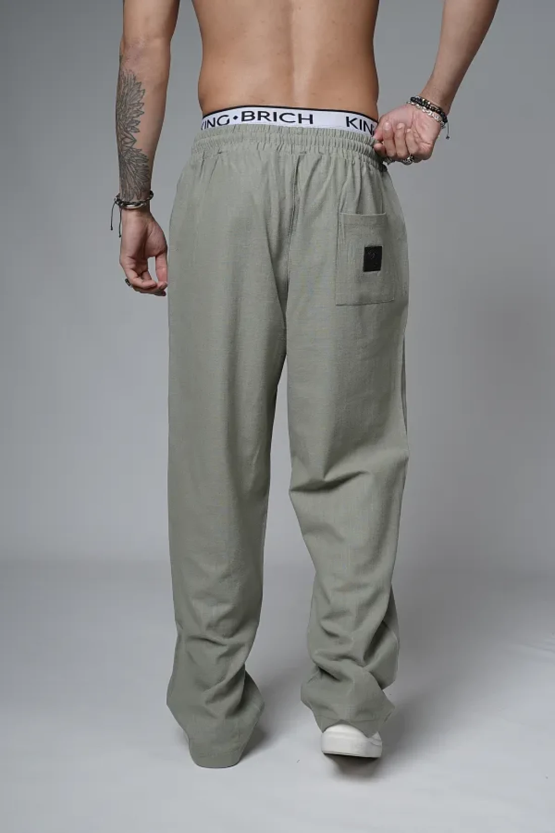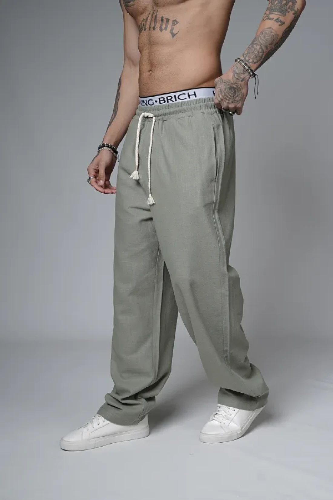 Butik Trend Biz Baggy Fit Lycra-Free Linen Fabric Men's Trousers with Elastic Waist and Drawstring