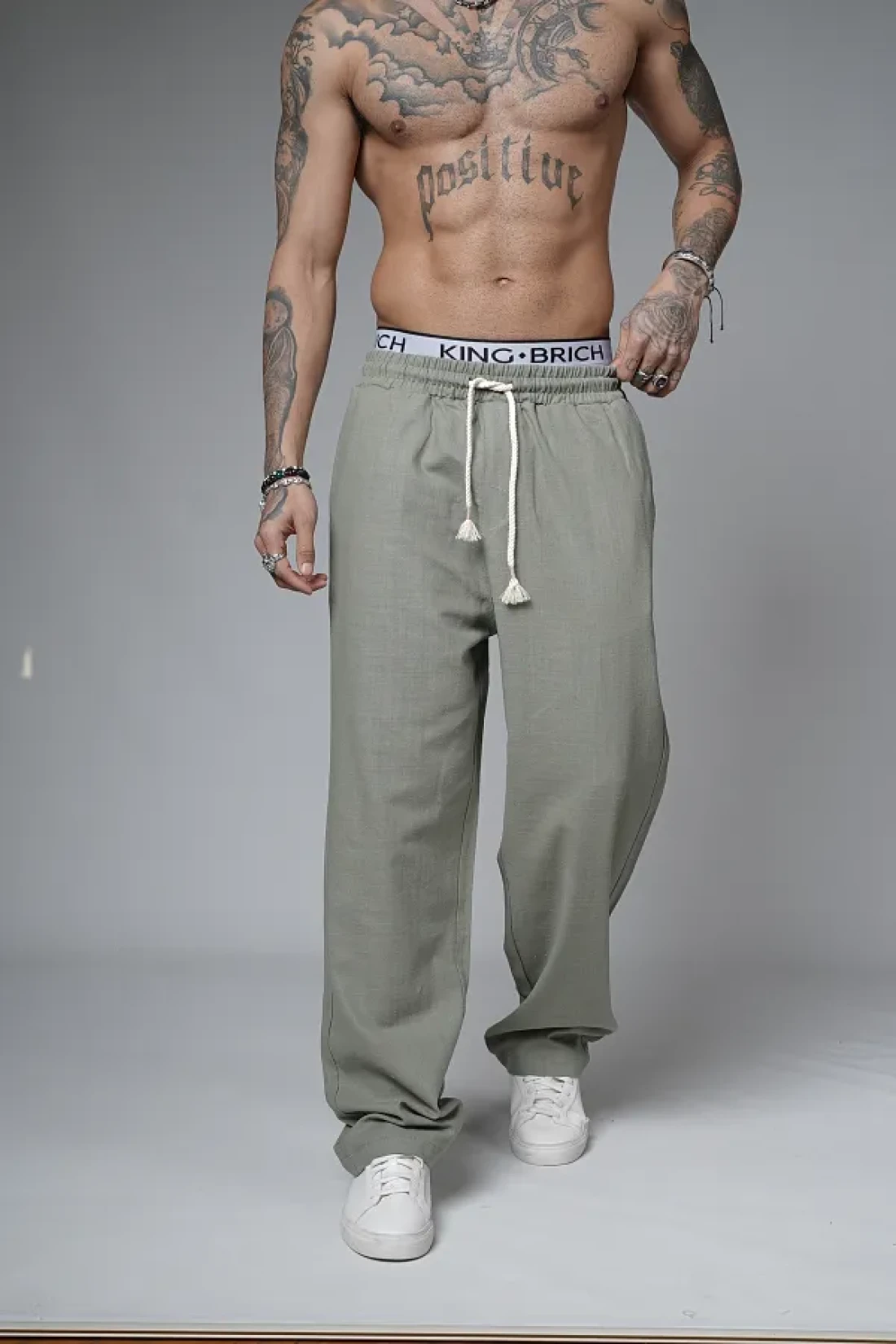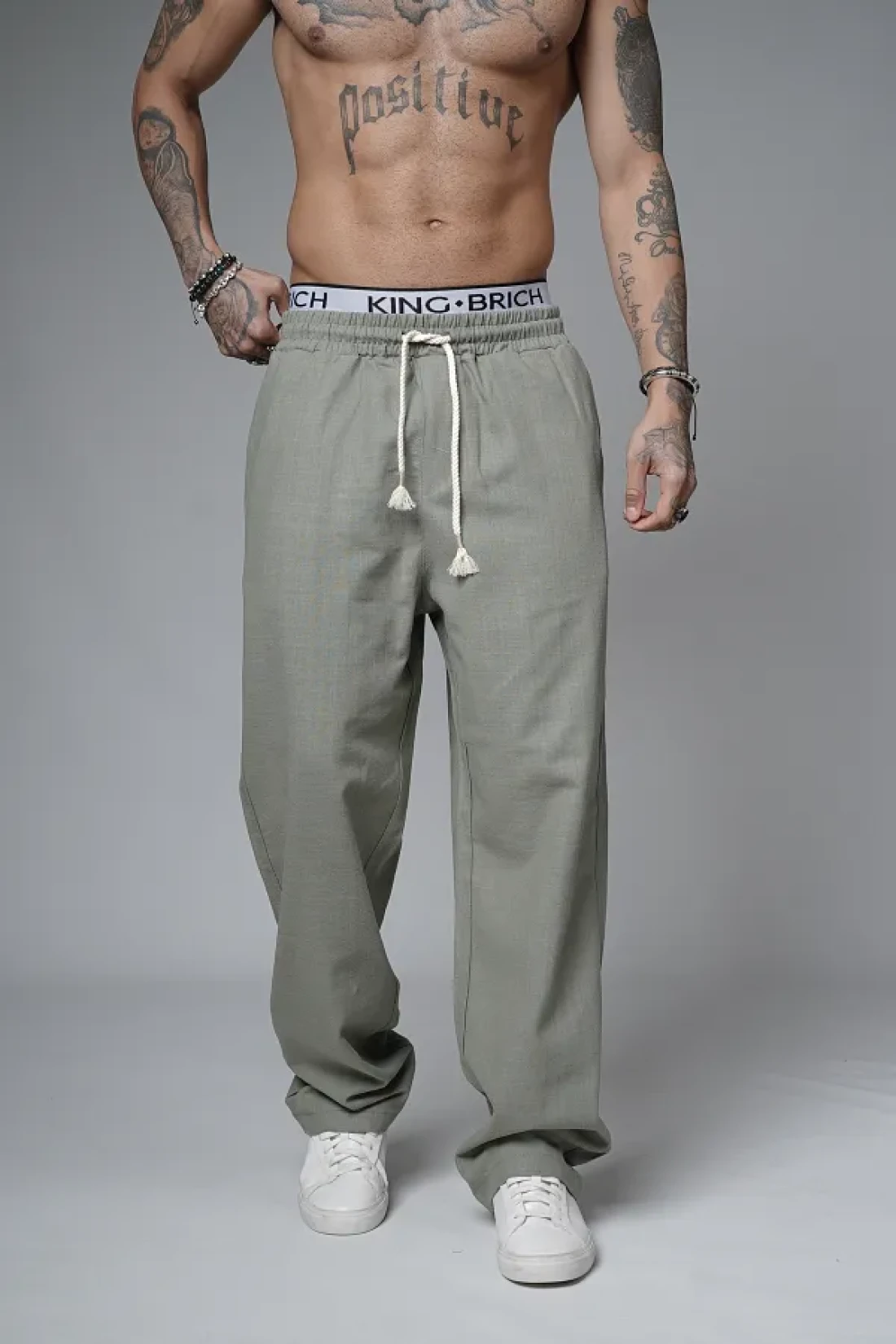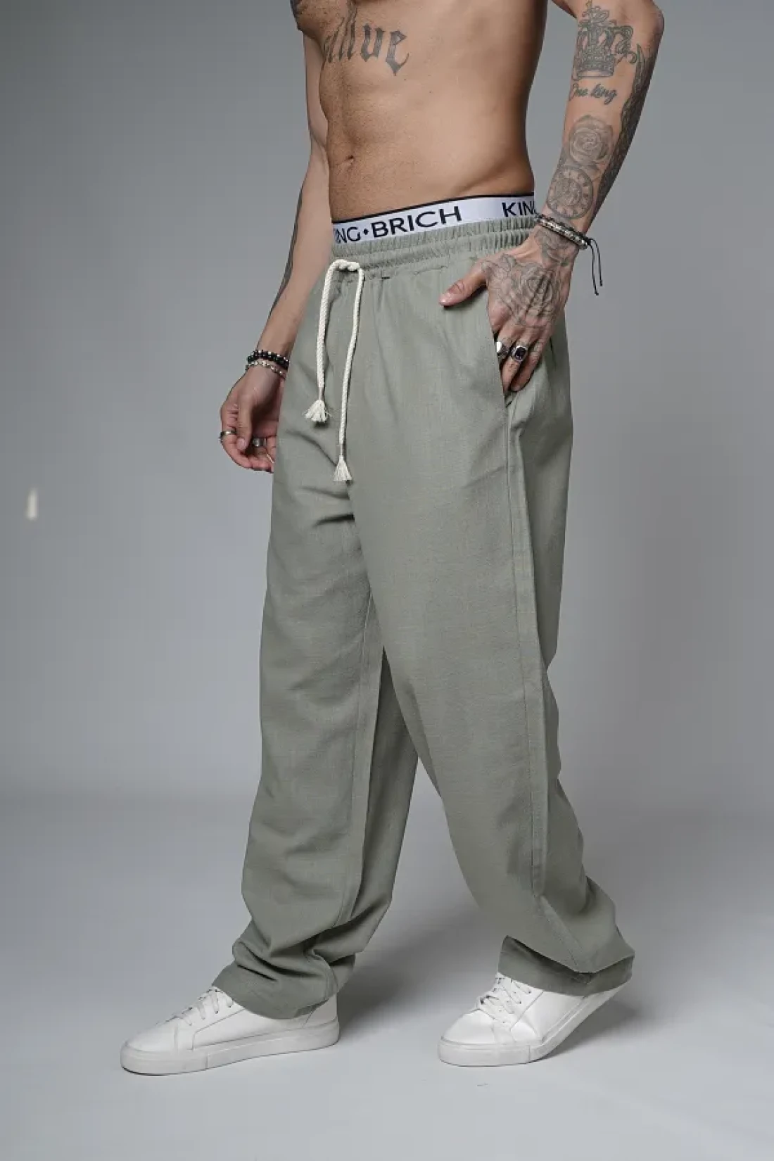 Butik Trend Biz Baggy Fit Lycra-Free Linen Fabric Men's Trousers with Elastic Waist and Drawstring