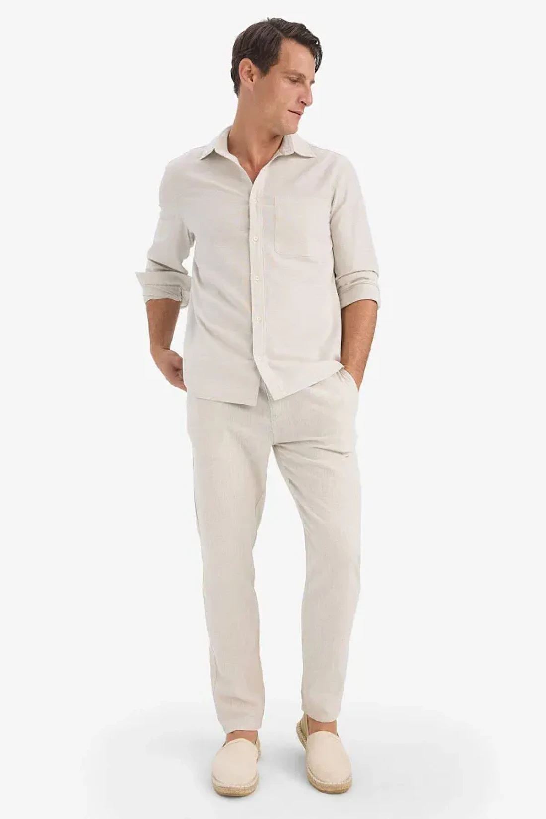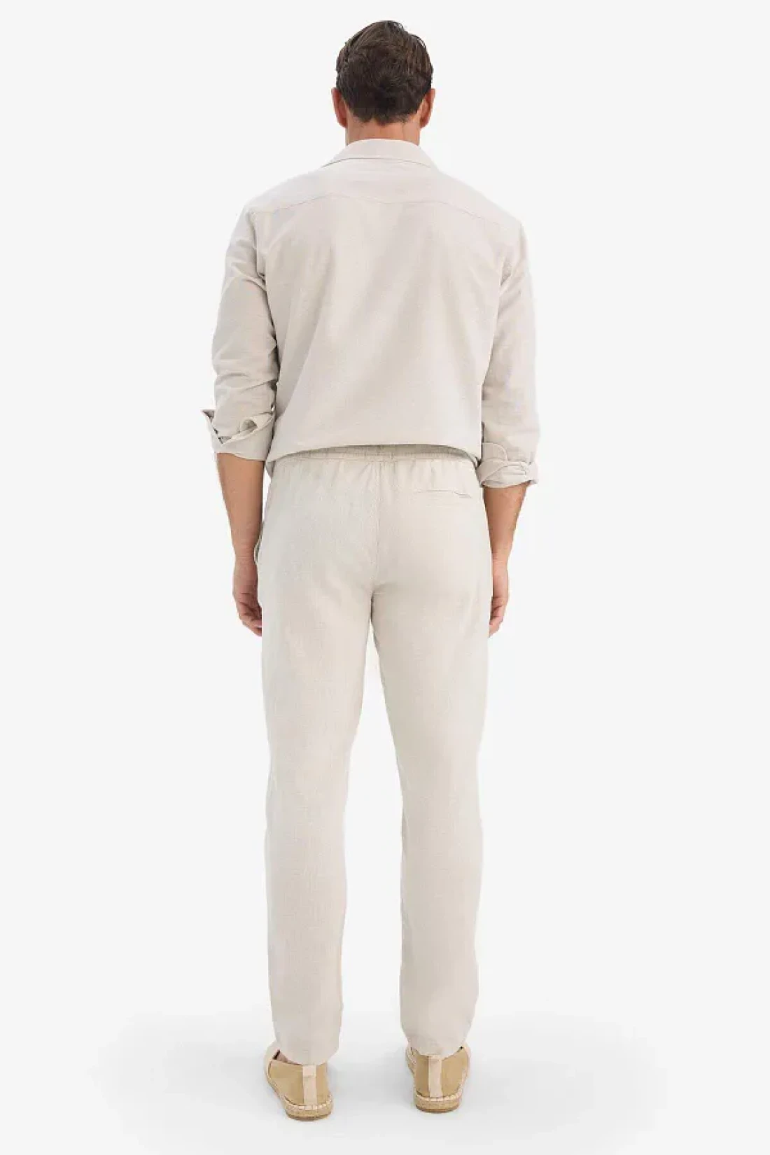 Defacto 100% Cotton Linen Look Trousers Elastic Waist Slim Fit Slim Fit Pocket Straight Leg D2671Ax25Sm