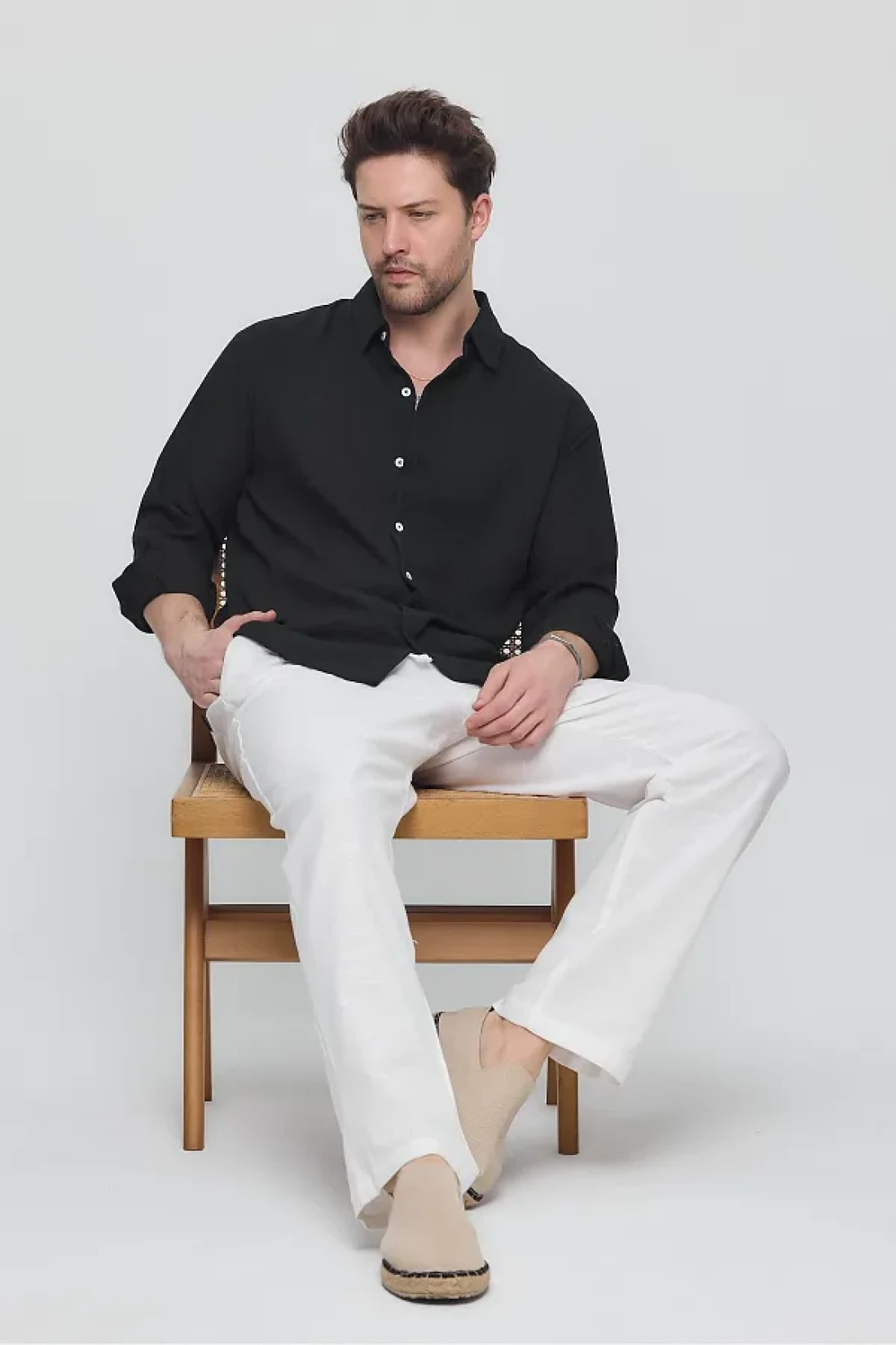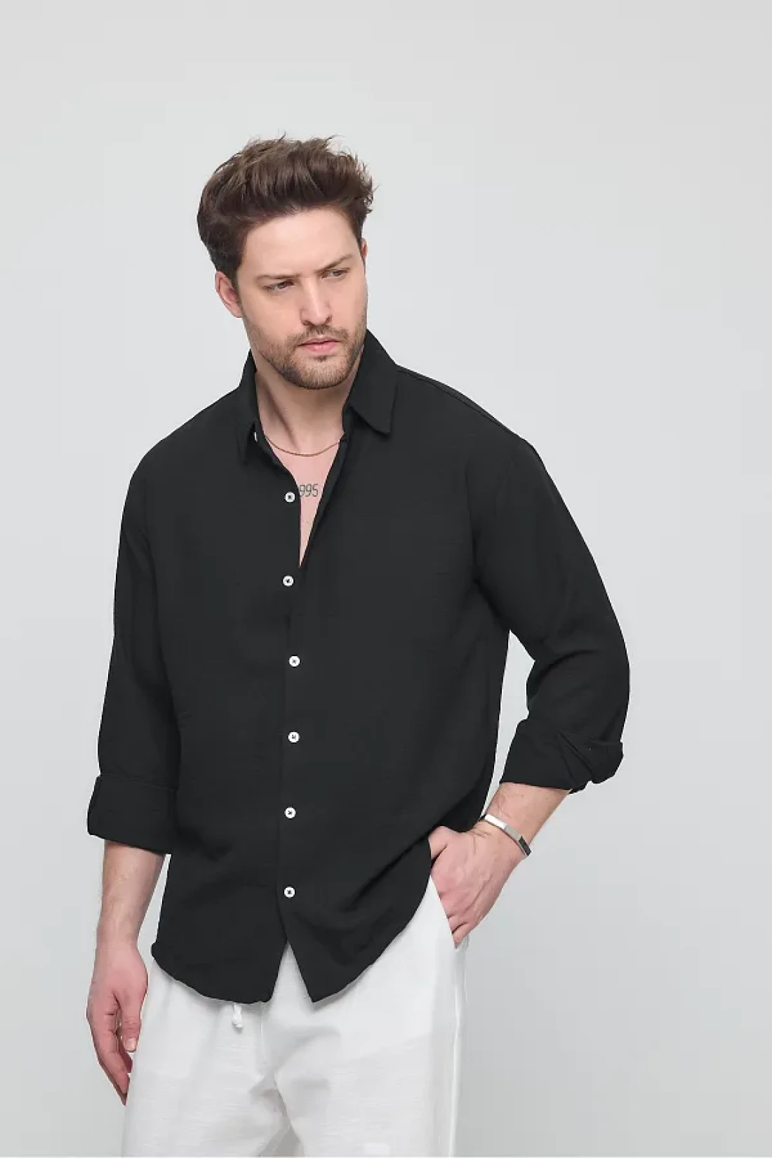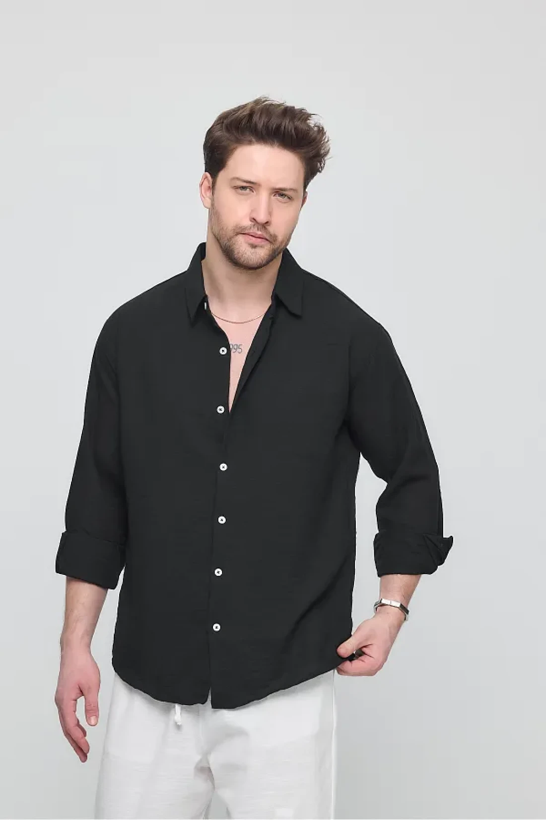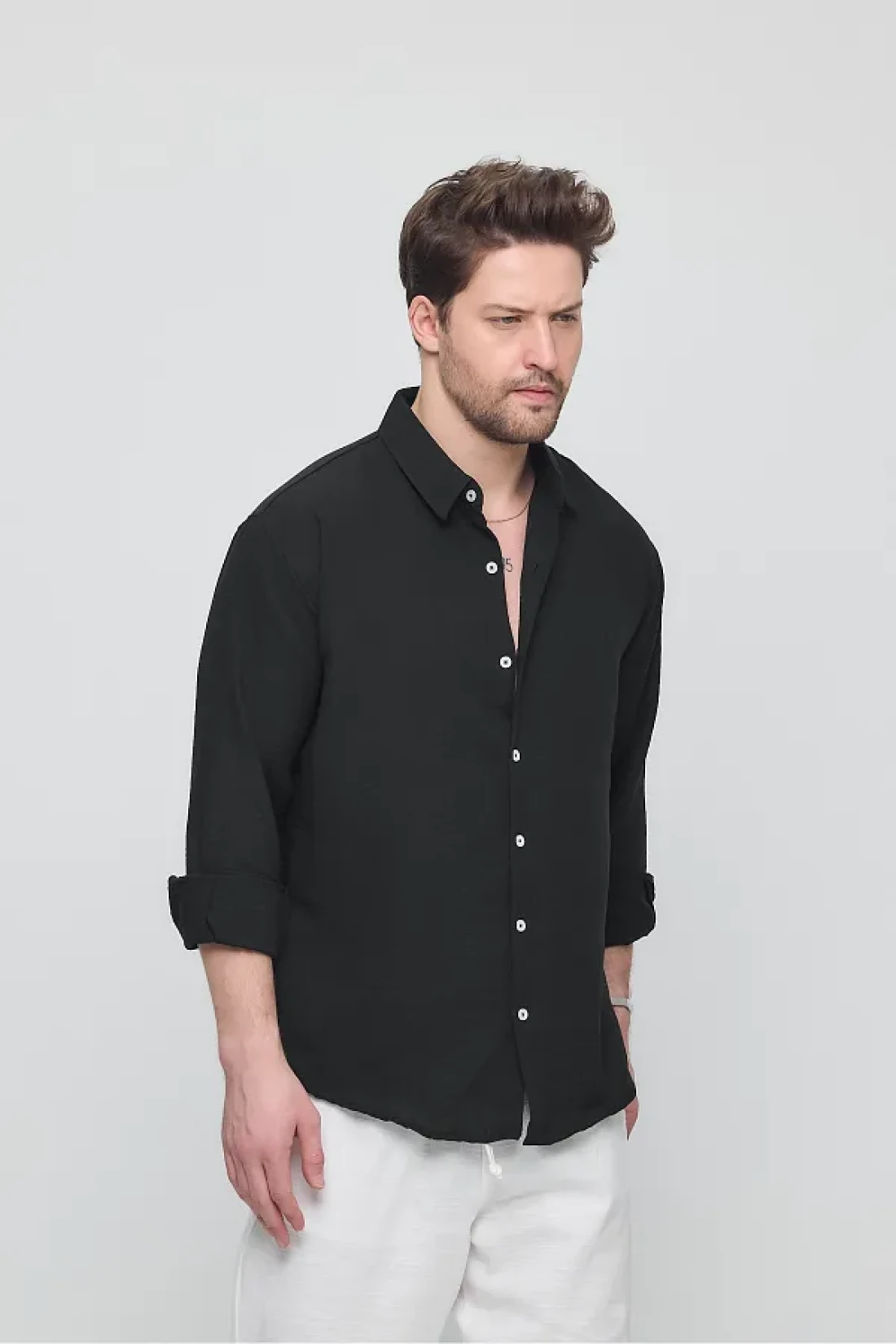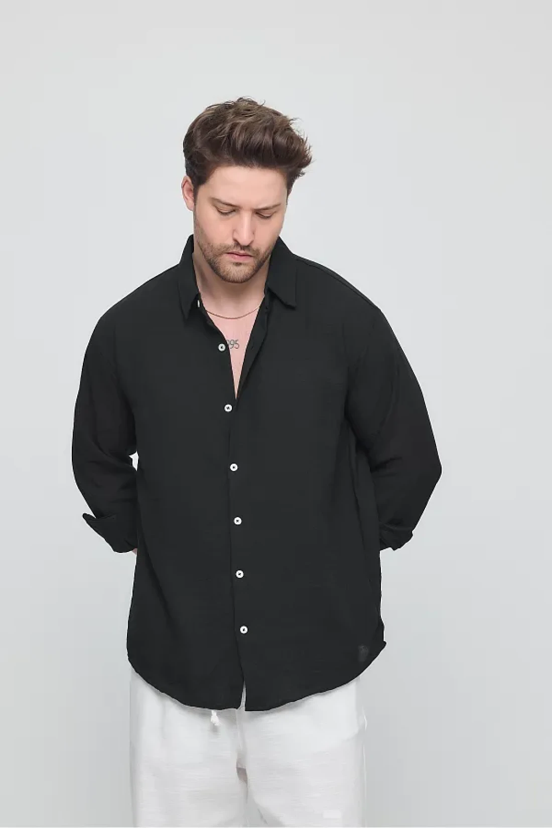GEİO Men's Oversize Cut Linen Shirt