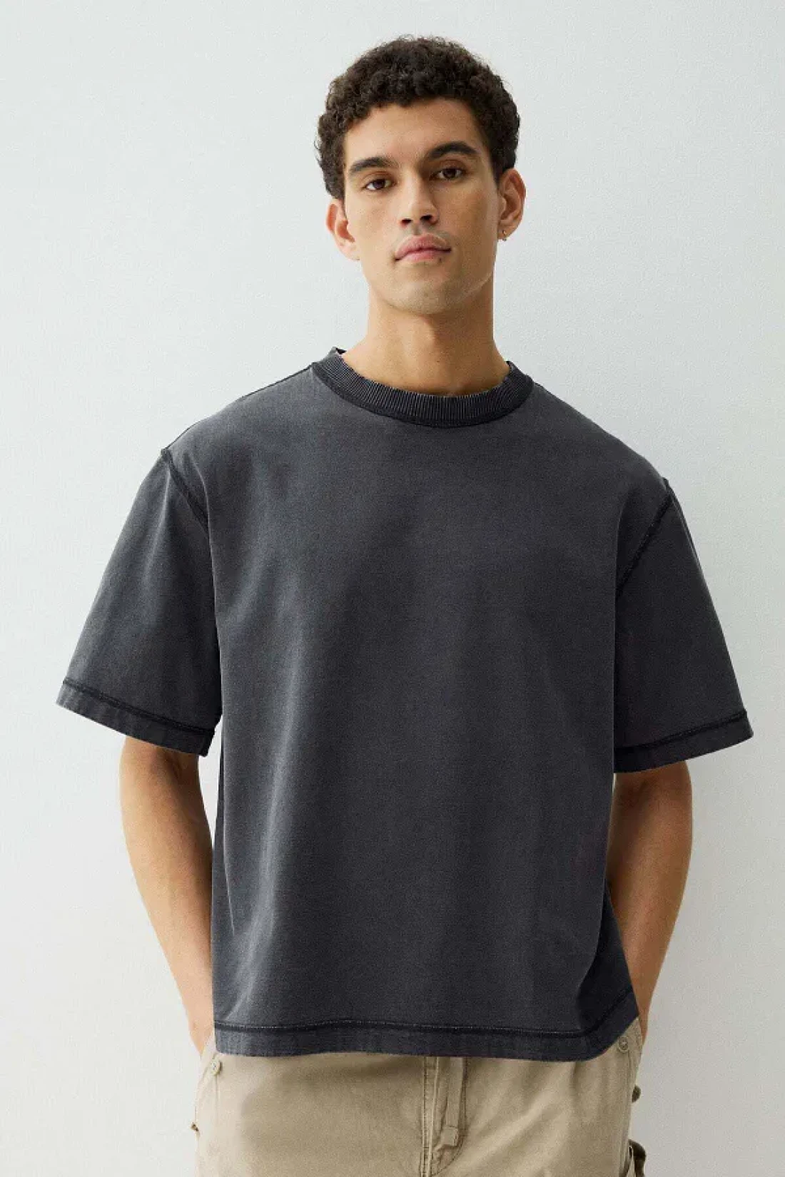 Boxy-style T-shirt in heavyweight cotton jersey with a washed look.