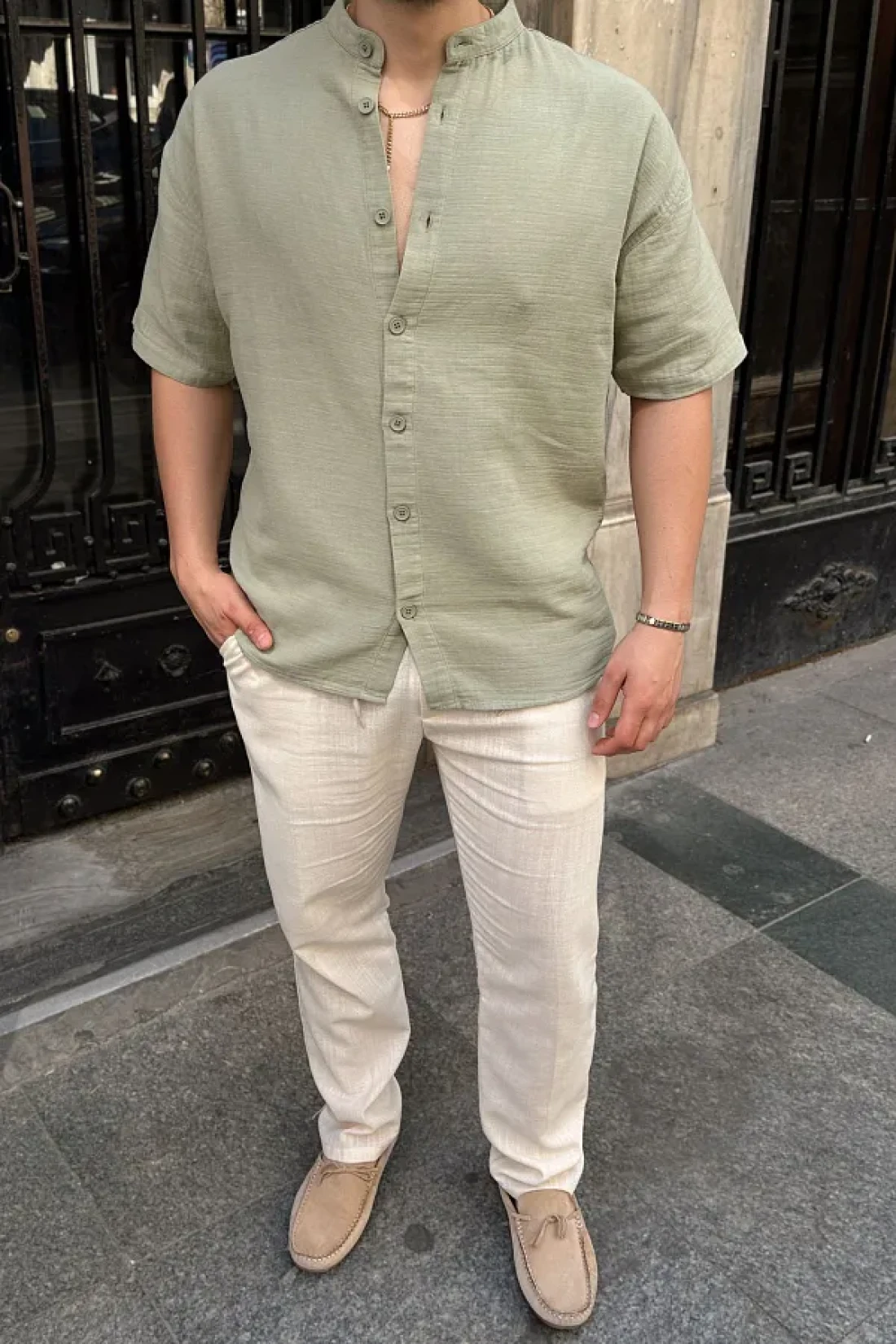 Mingan men's shirt is one of the main items of summer wardrobe, combining simple elegance and comfort. Thanks to its 100% cotton fabric, it offers a breathable structure all day long, and provides a modern look with its short-sleeved and dominant collar design. Its buttoned structure offers practical usage.