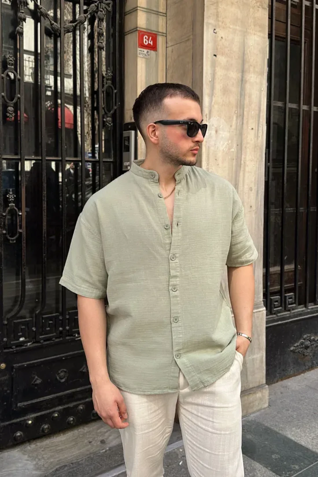100% cotton: natural fabric that keeps you cool and does not sweat short sleeves, stand-up collar and buttoned design comfortable use all day with its loose fit suitable for casual, holiday and urban style simple and easy to combine summer style there may be differences in color tone due to studio light and outdoor difference