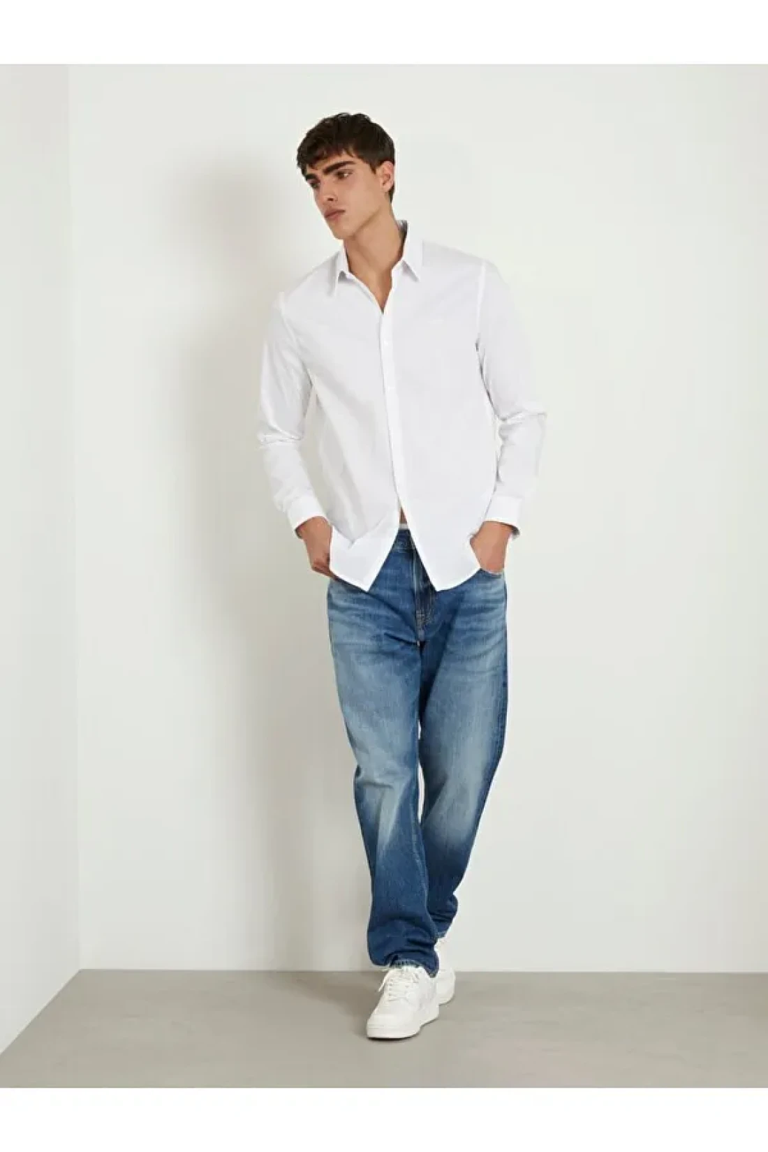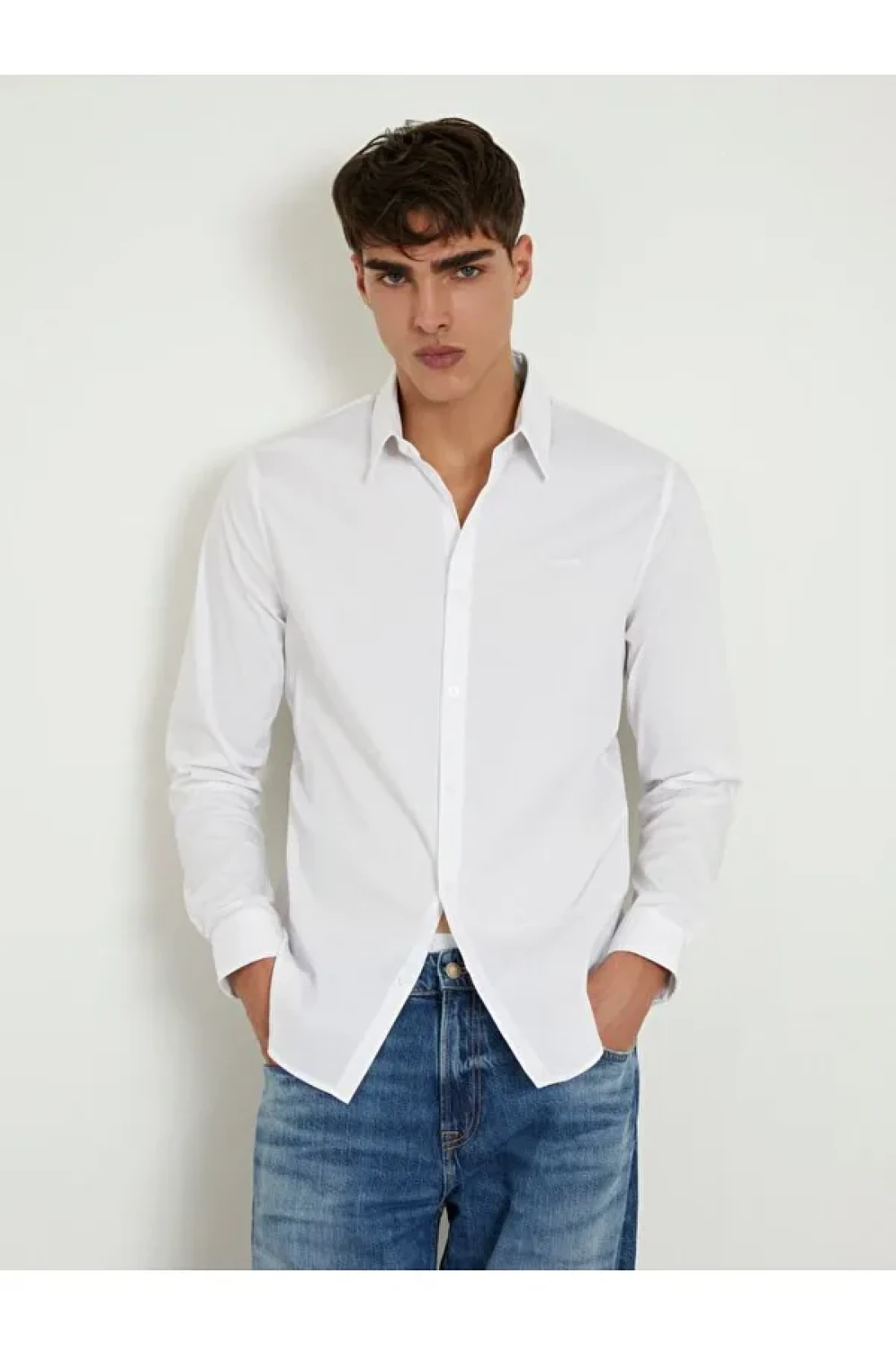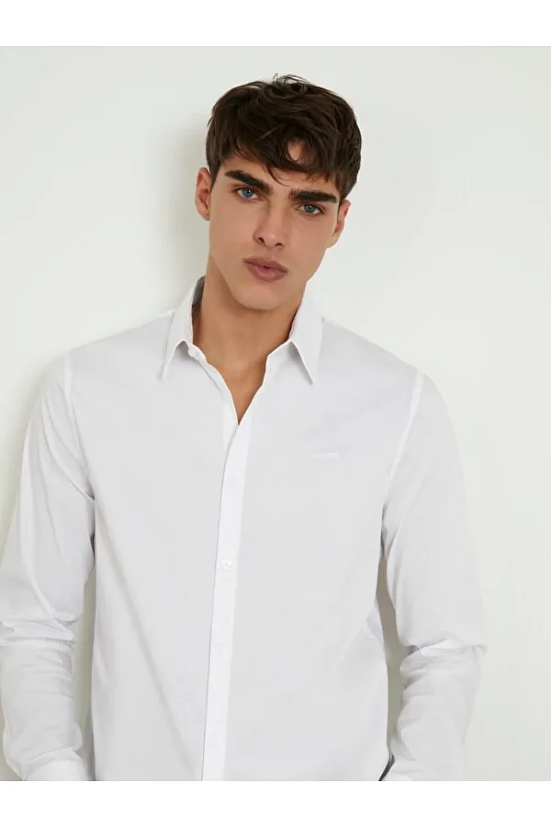 shirt made of flexible cotton fabric. Standard collar. Long sleeved.