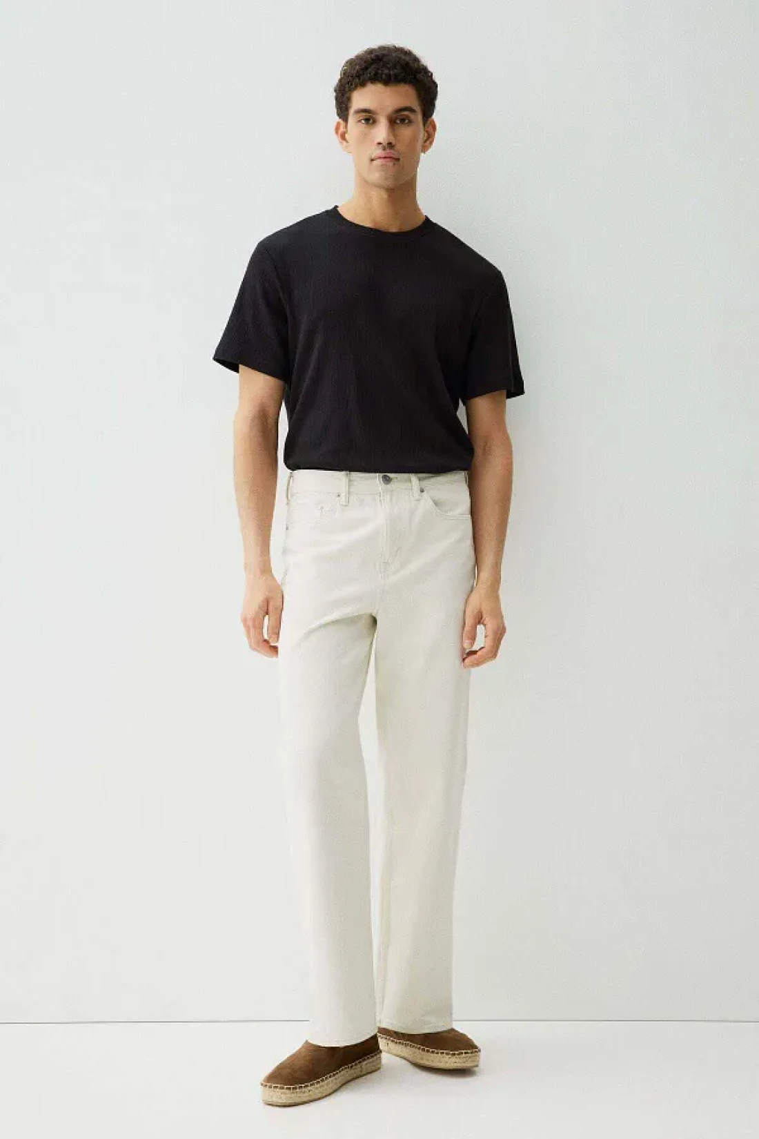 T-shirt in midweight, textured jersey made from a cotton blend with a round neckline and a straight-cut hem.