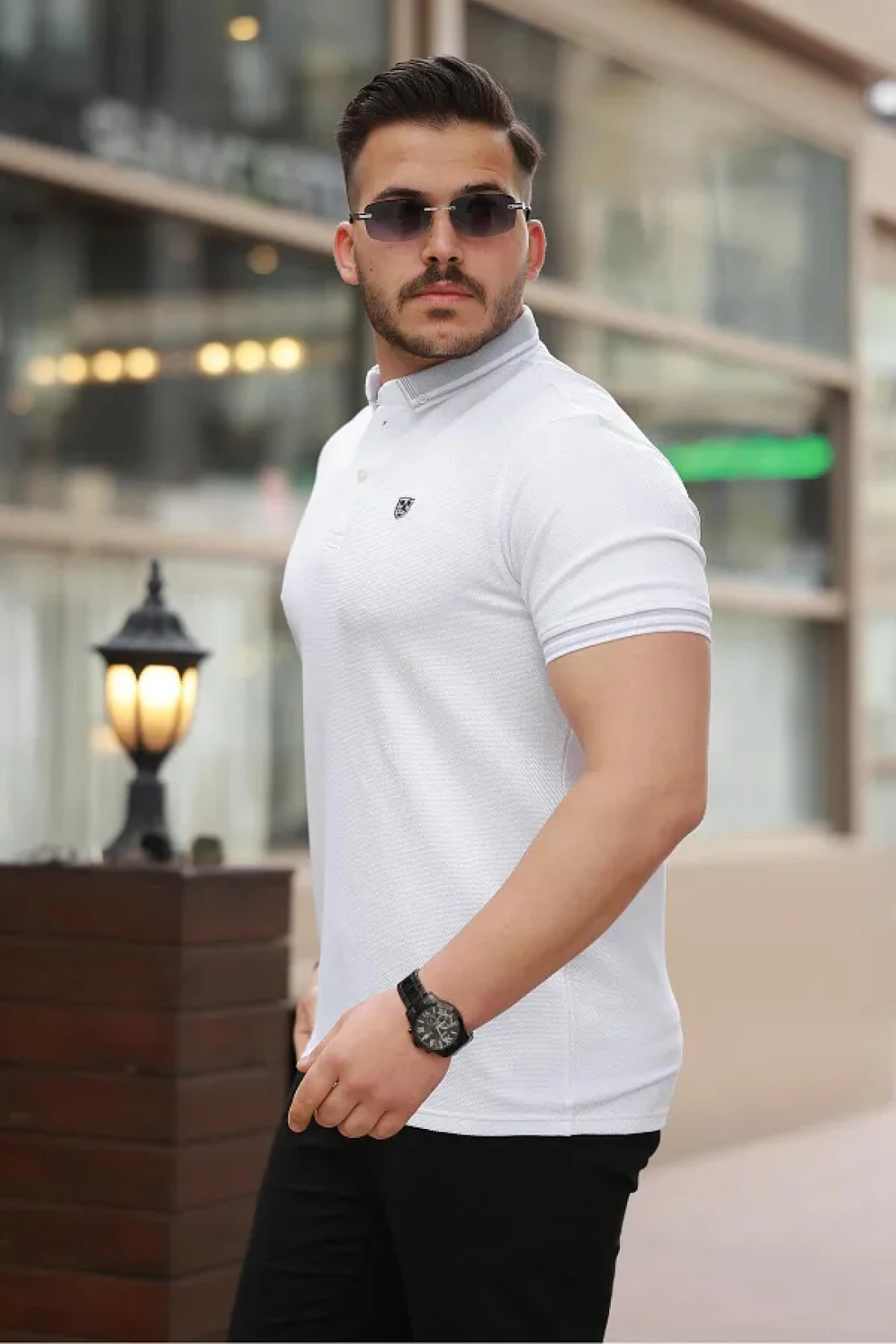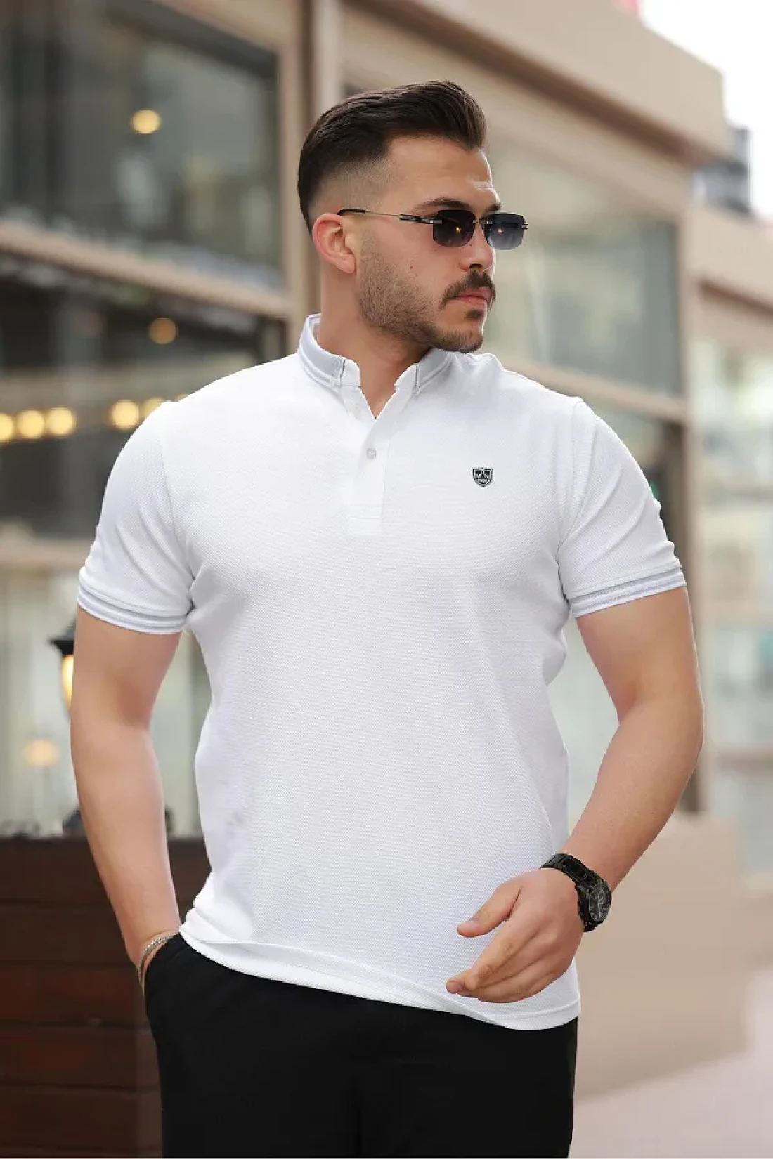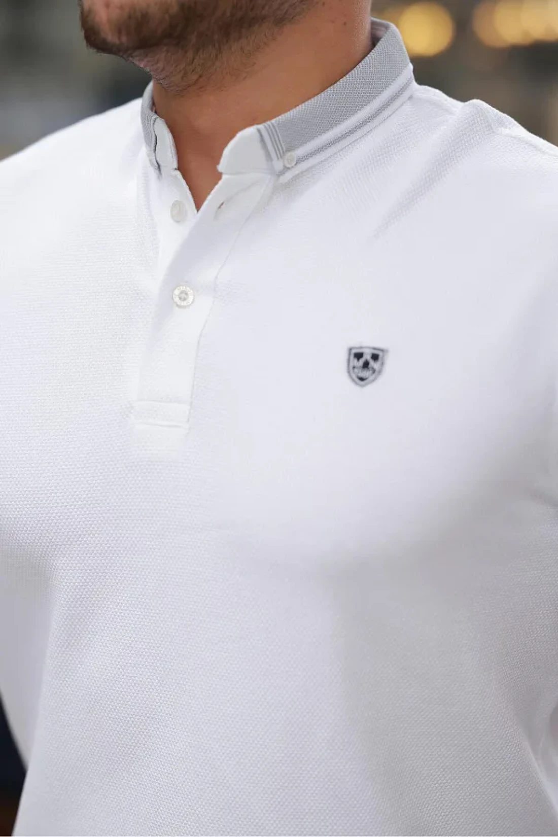 Miron White Logo Embroidered Polo Neck Short Sleeve T-Shirt -2518