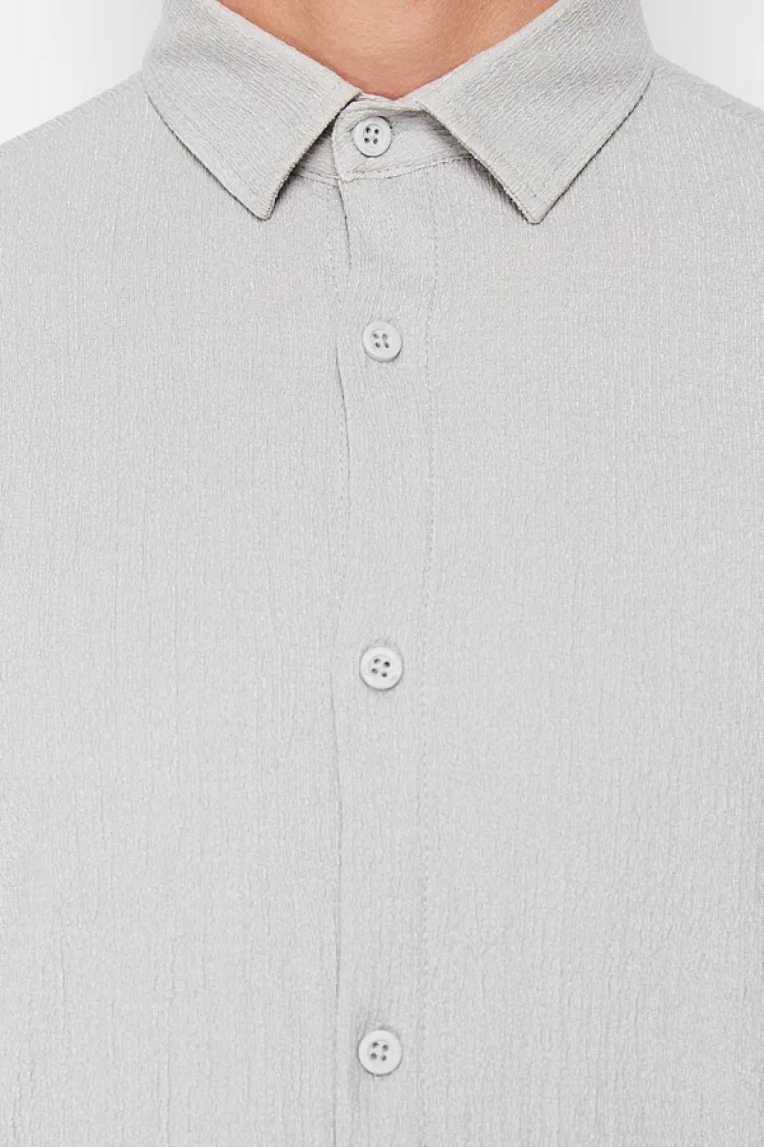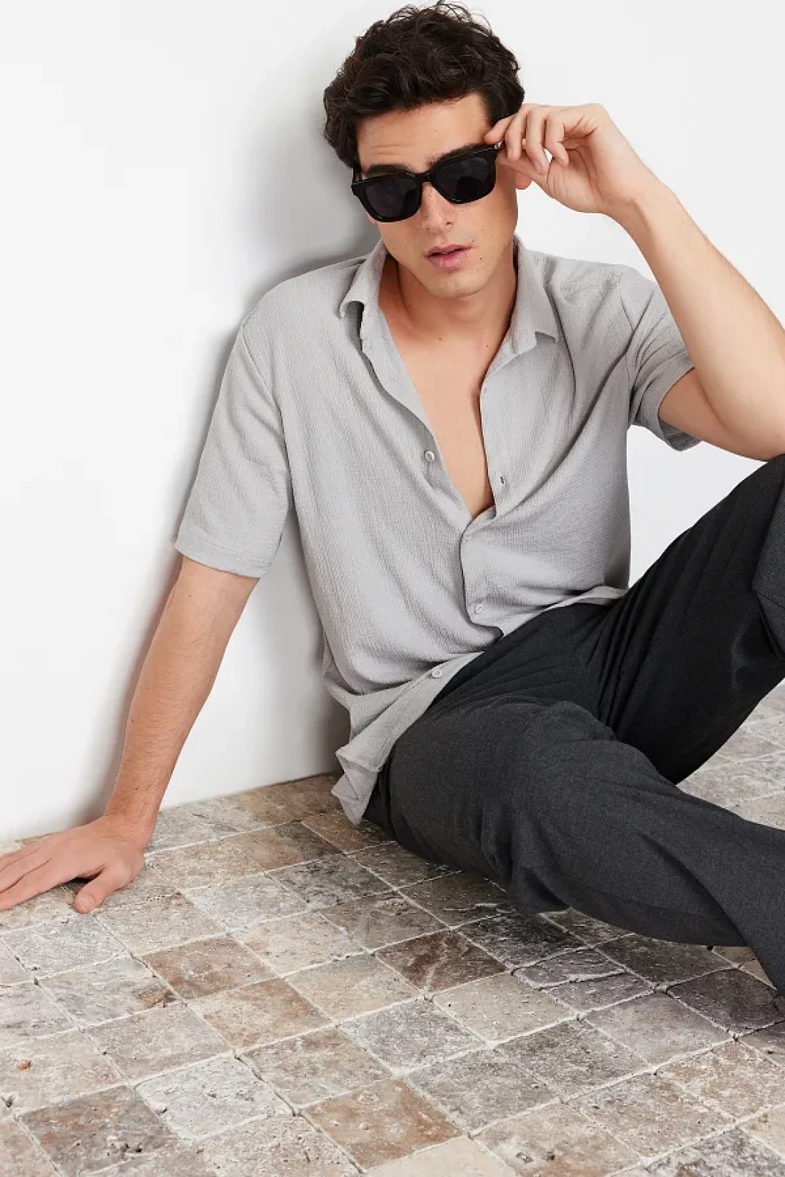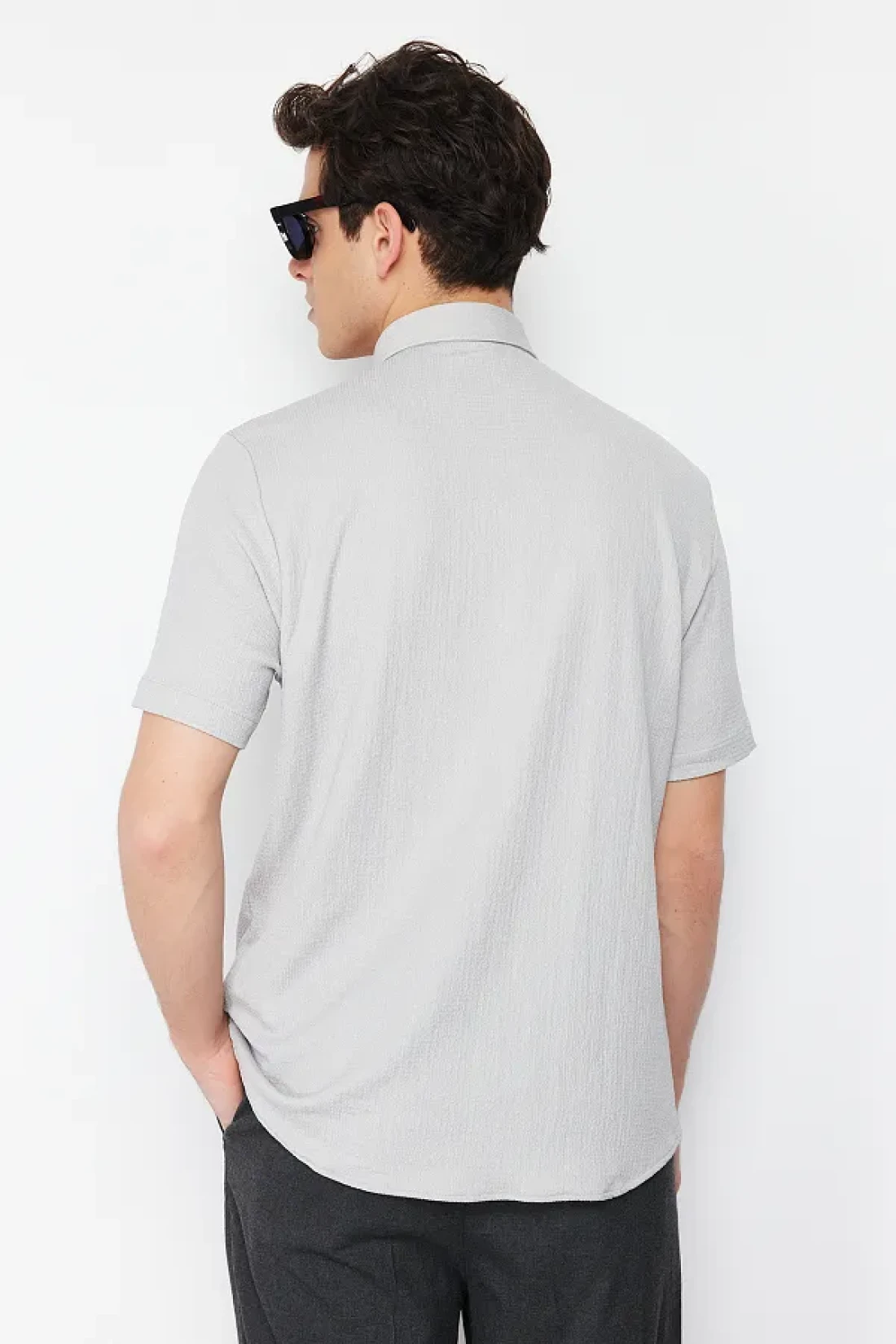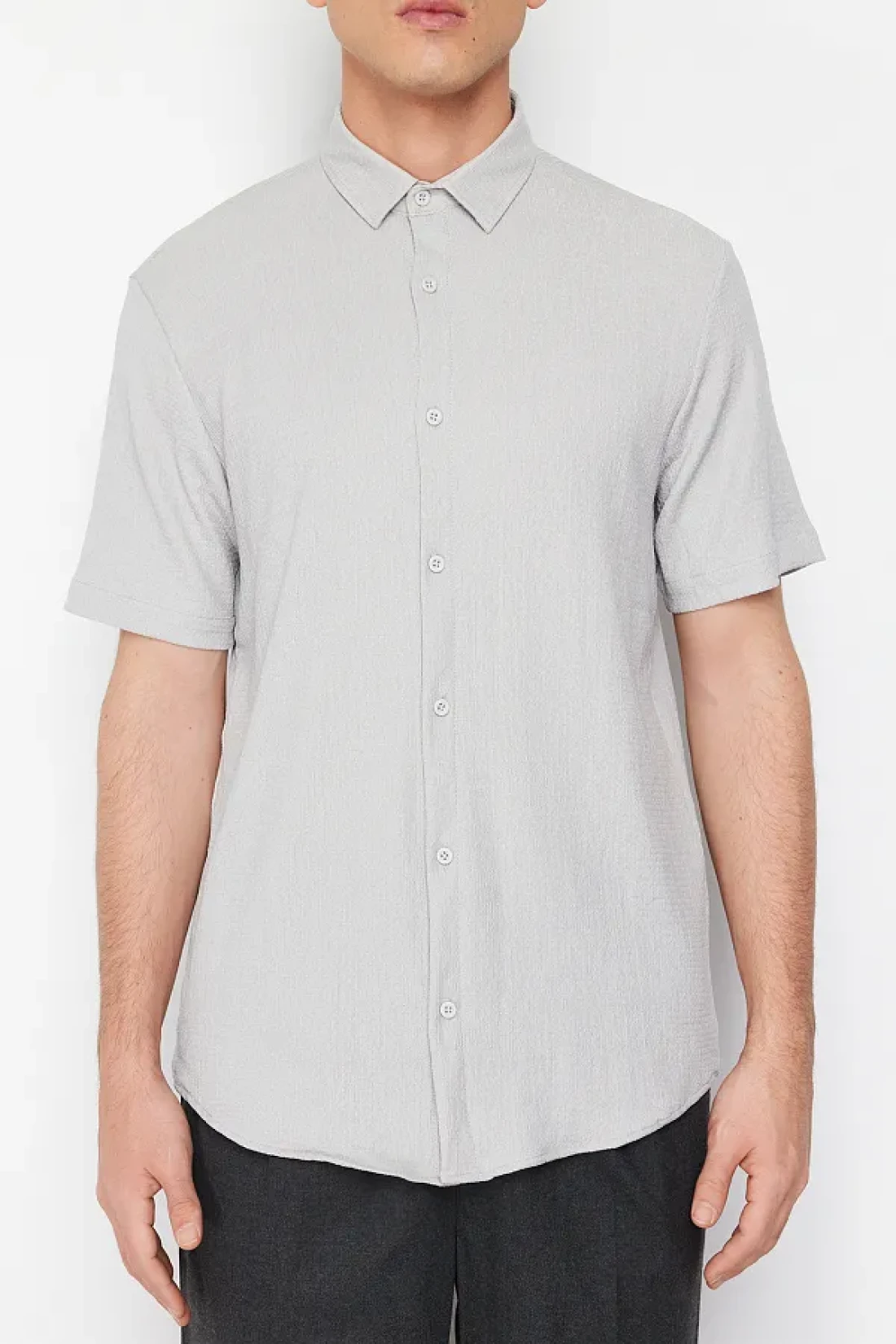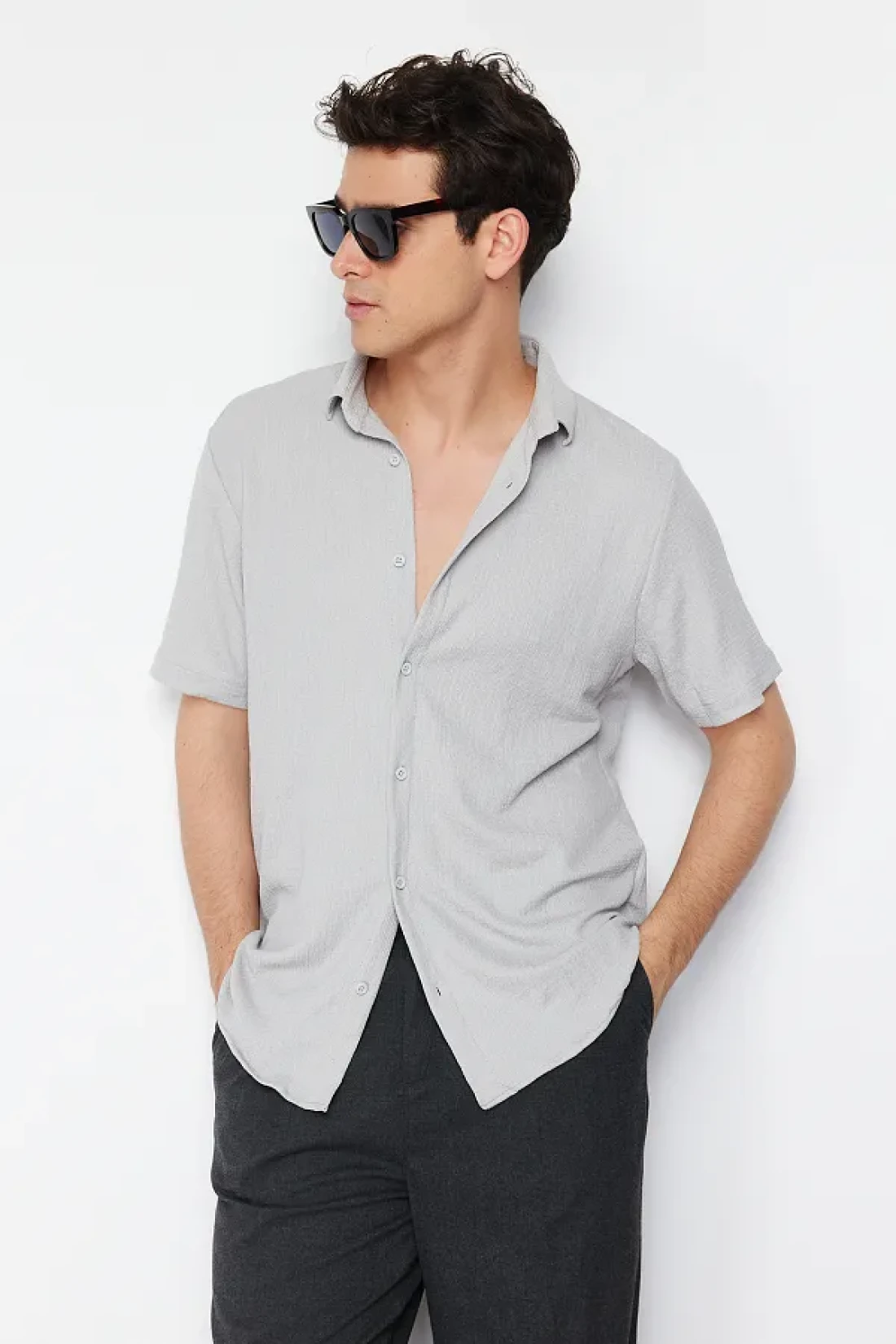 Collection Gray Textured Wrap Summer Shirt - Regular Fit, Short Sleeve Tmnss23Go00055
