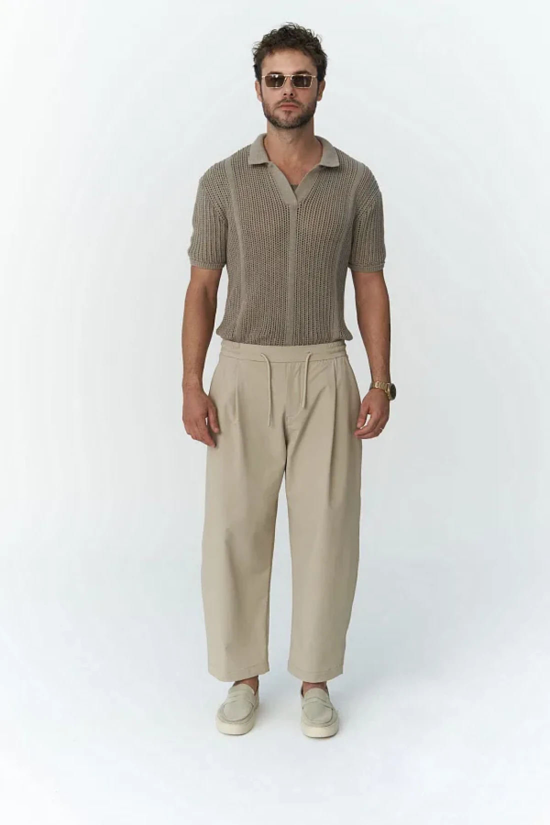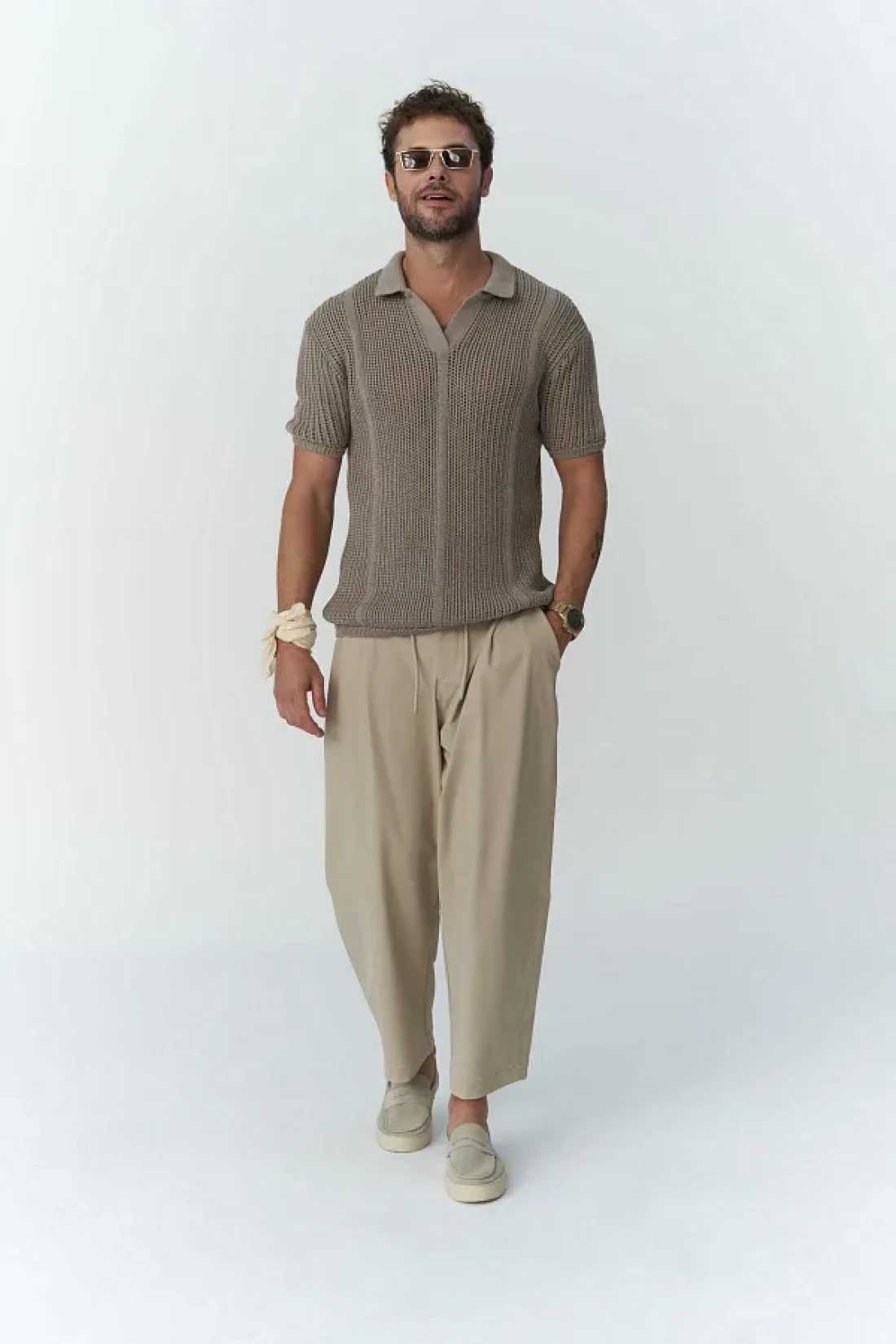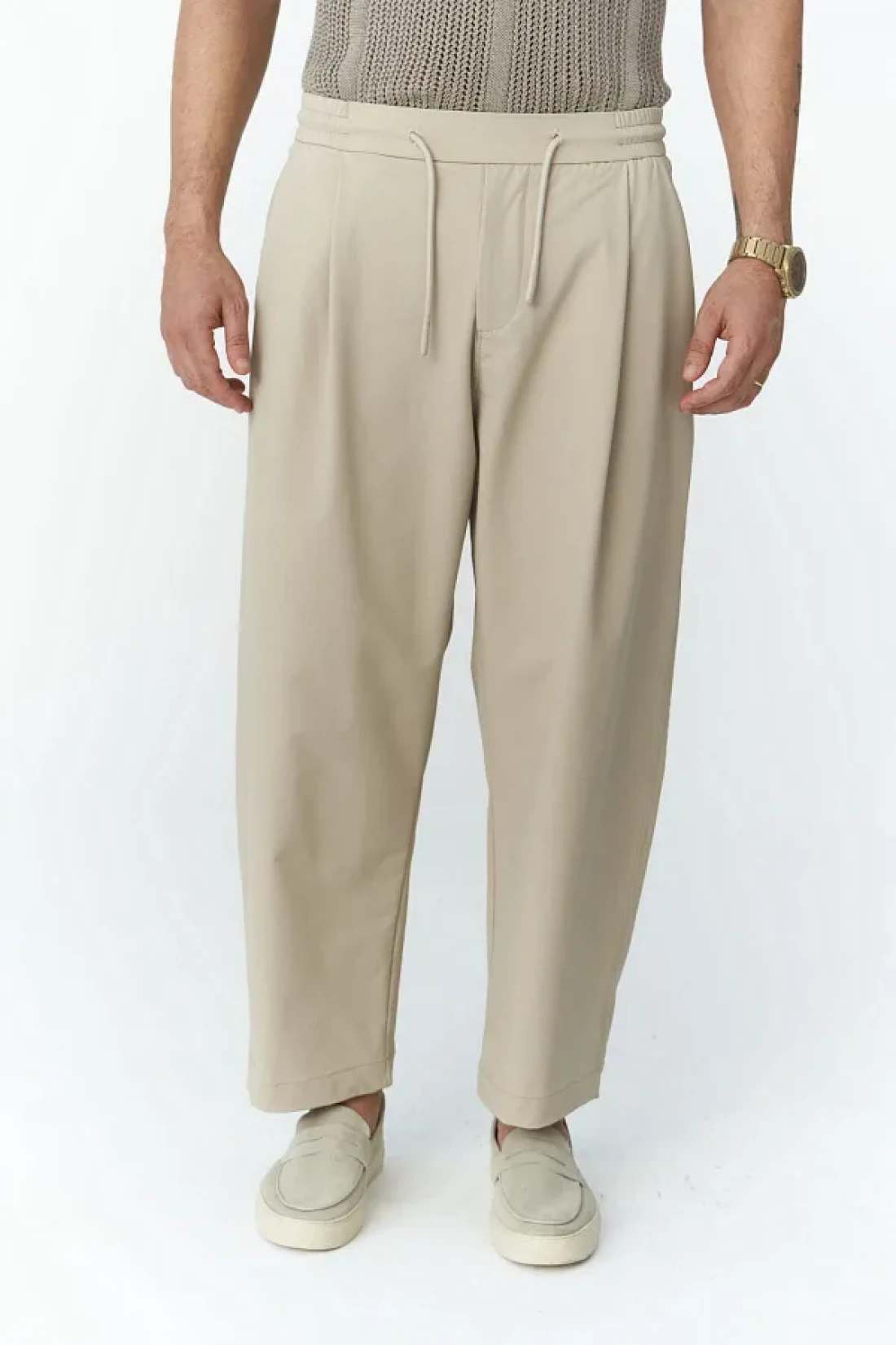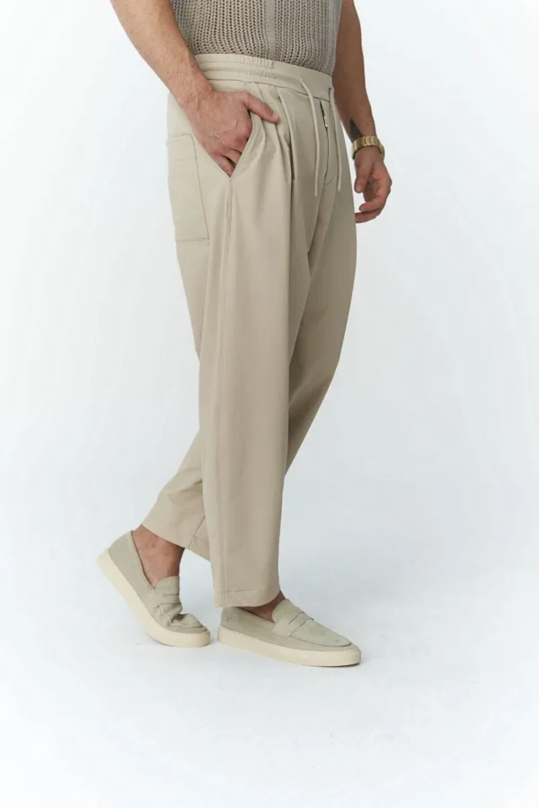 MAİ COLLECTİON Kenway Men's Beige Trousers with Lace Detail